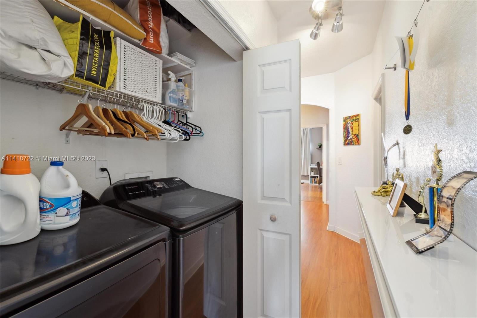 Spacious 3 bedroom, 3 bath, 1 car garage townhome in the very desirable gated community of Windward at The Islands at Doral. Open kitchen, featuring spacious countertops & SS appliances. Porcelain tile throughout the freshly painted 1st floor w/ a formal living room & formal dining room. Open solid wood staircase w/ wood floors throughout 2nd floor including laundry. Large Master bedroom w/ spacious closets & master bath. Recently remodeled bathroom w/modern vanity & frameless glass shower doors. Very well maintained backyard w/ Art. turf + landscaping is perfect for entertaining family & friends. Safe & gated community w/ beautiful clubhouse, tennis, pool, gym, & children’s play area. A+ Schools, State of the Art Legacy Park, Shopping/Entertainment & easy access to FL Turnpike