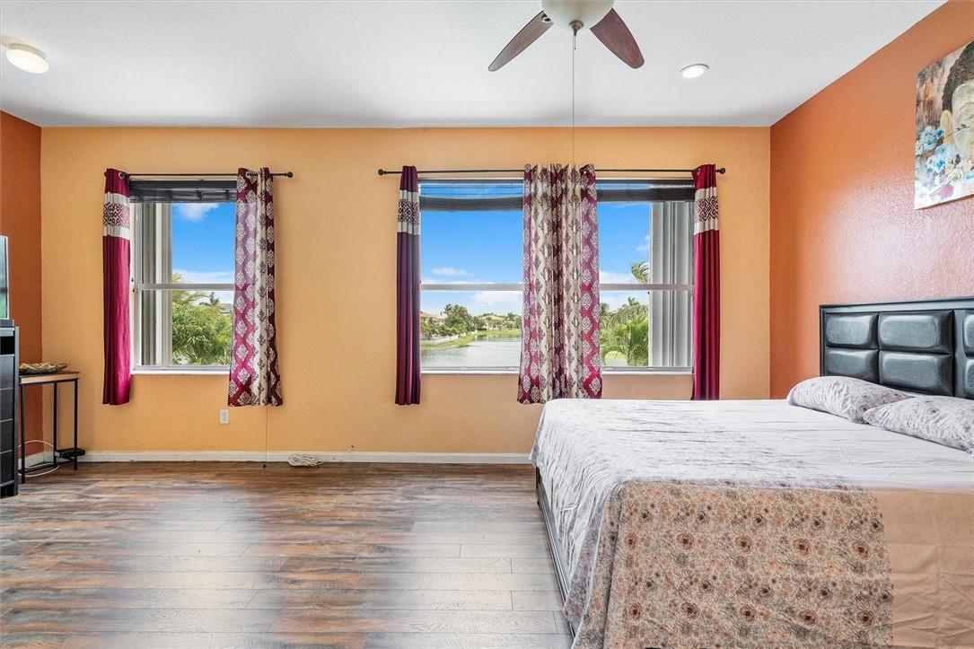 **PRICE IMPROVEMENT!** Spacious 4 Bedroom 3 Bathroom Waterfront home with pool in the highly sought after San Marco community in Riviera Isles. This home features an open floor plan with a bedroom and bath on the main level. There is brand new wood grain laminate on the stairs & upper level as well. The primary suite has plenty of room with an ensuite bath and walk-in closet. You'll love the pool with brick surround overlooking the lake. This well-maintained community is close to great schools and has tennis courts, basketball courts, pools, a clubhouse and much more. Square footage reported to be more than what's in tax records.
