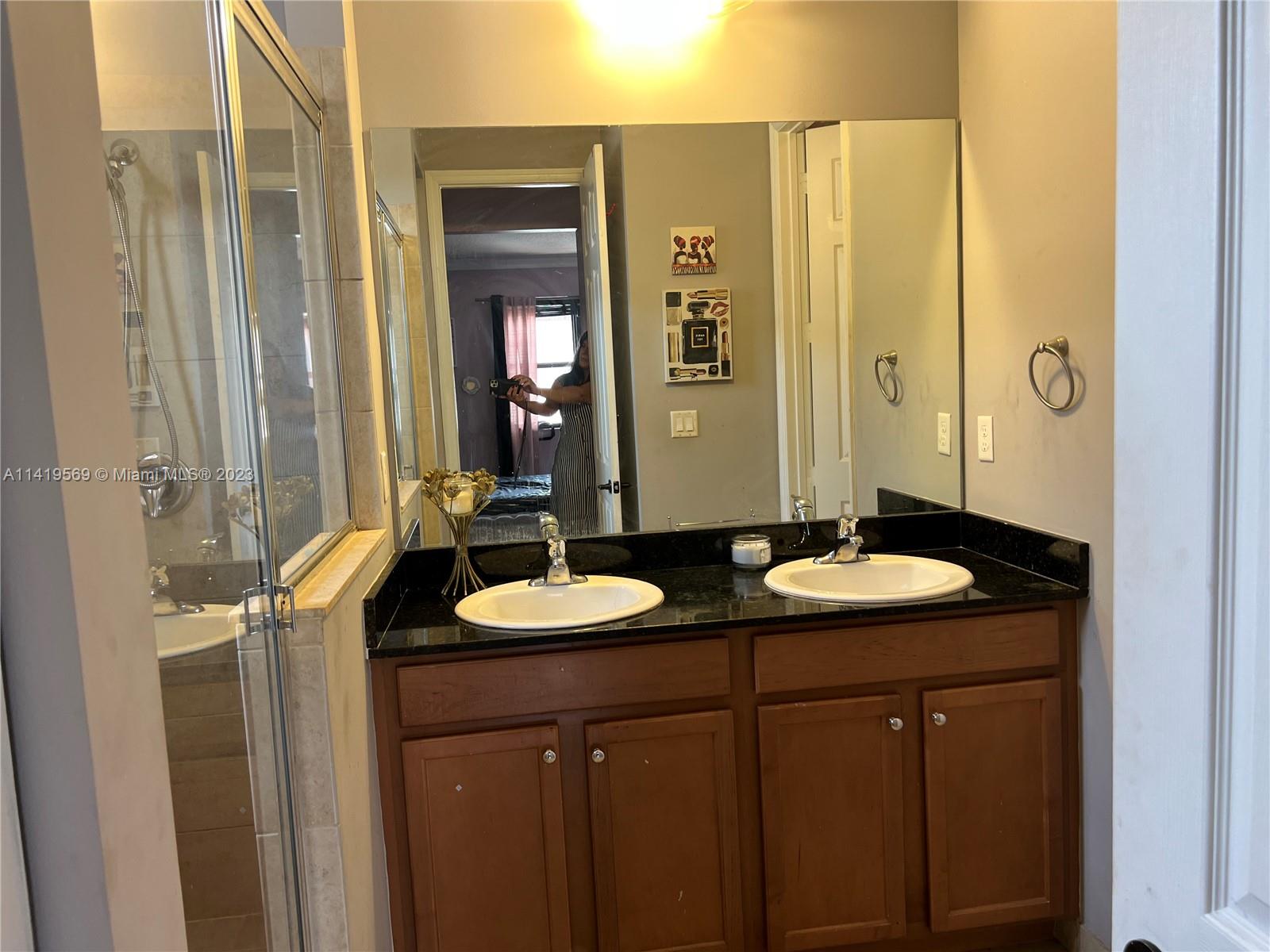 Corner home, 2 story open concept with a 1 car garage. This property features 3 bedrooms, 2 bathrooms, laminate wood flooring on the 2nd floor and 1/2 bathroom on the 1st floor. The first floor is totally open so you can entertain, gather with your family and enjoy there company. It has stainless steel appliances, tile throughout plus 5" crown moldings. The backyard is fenced and paved throughout so you can enjoy your BBQ's. Community features pool, cabana house, children play area, gated community, 24 hr. security patrol... EXTRA room (Garage converted to a bedroom) Come and call this your home!