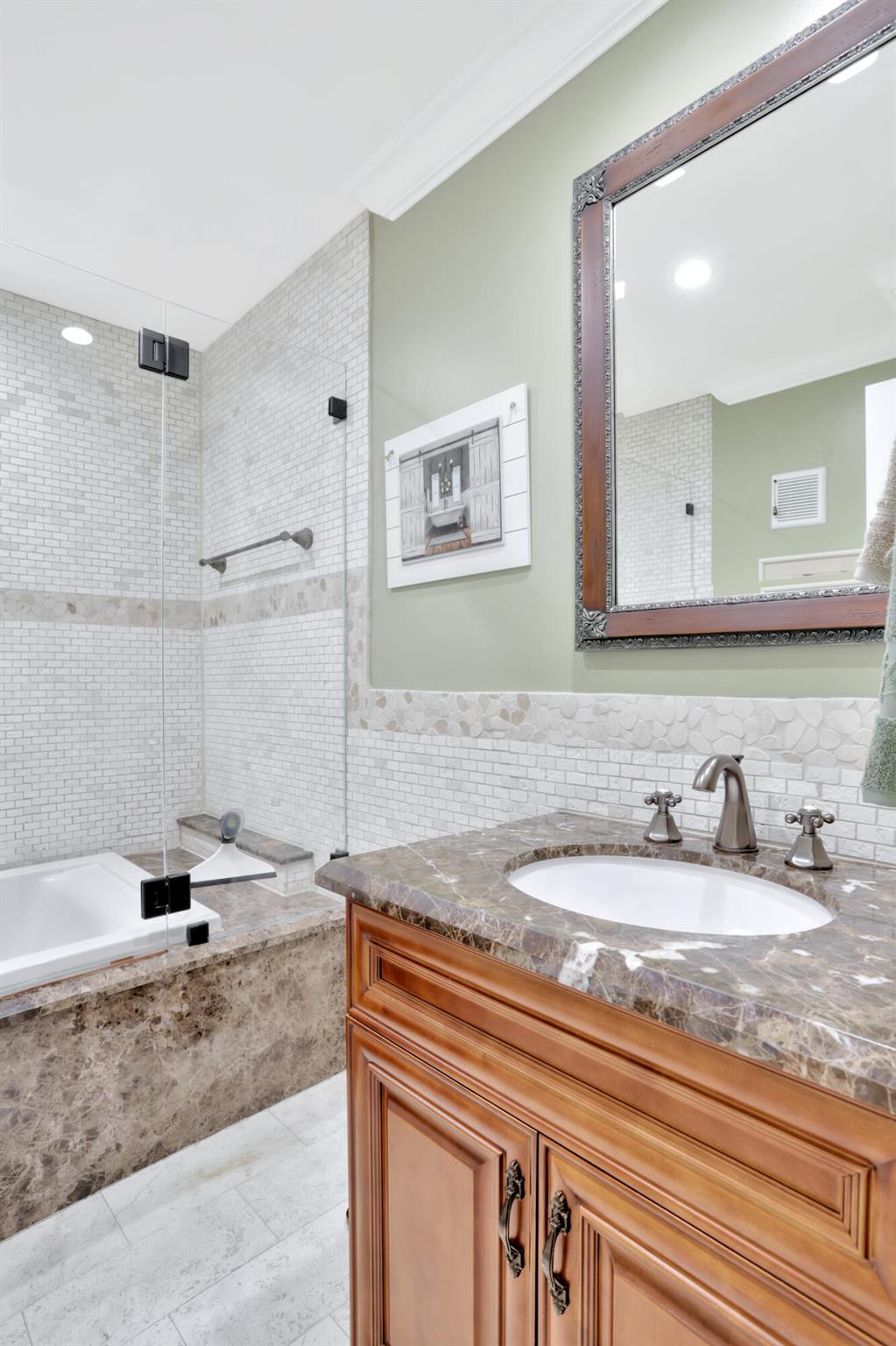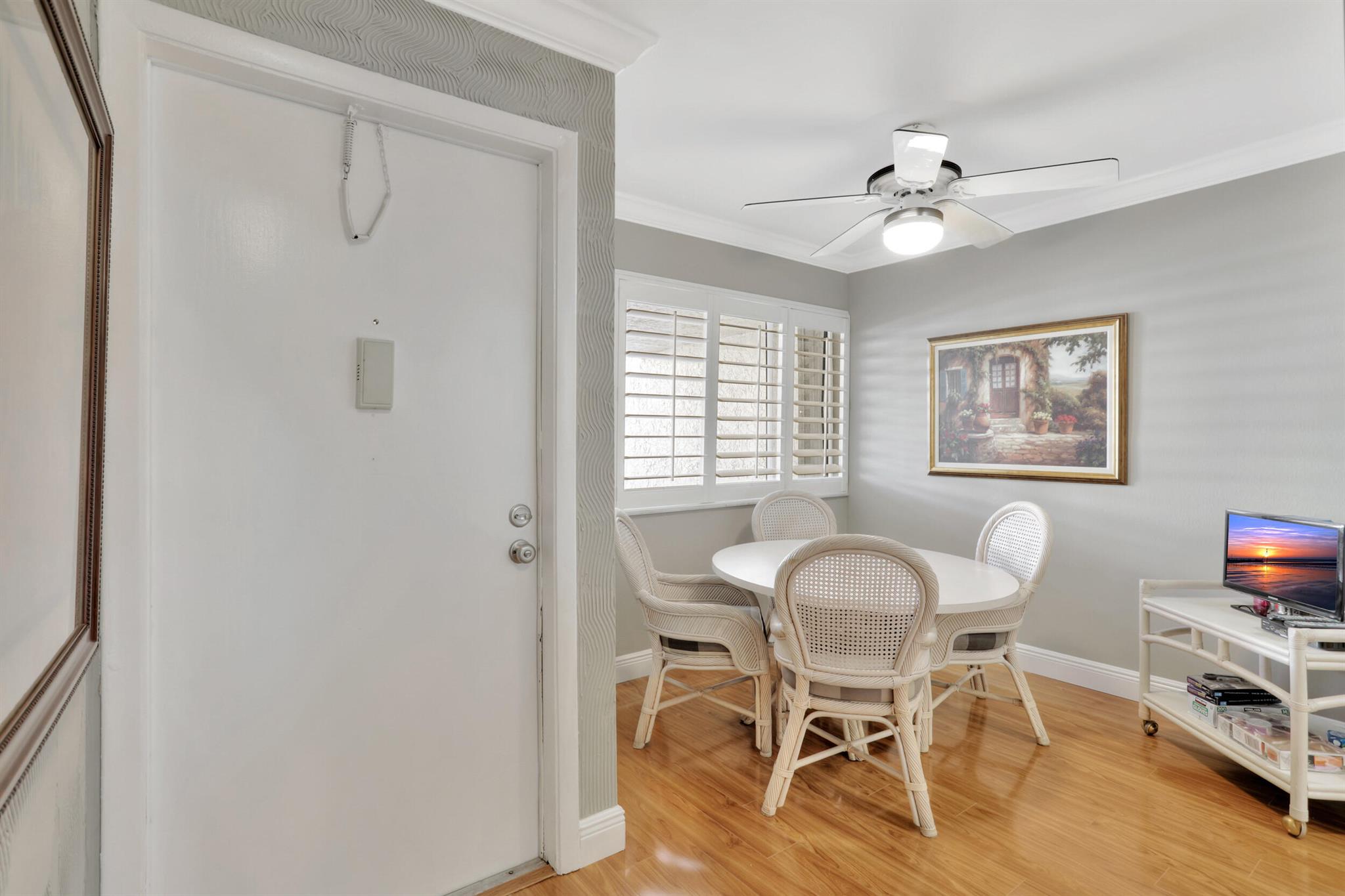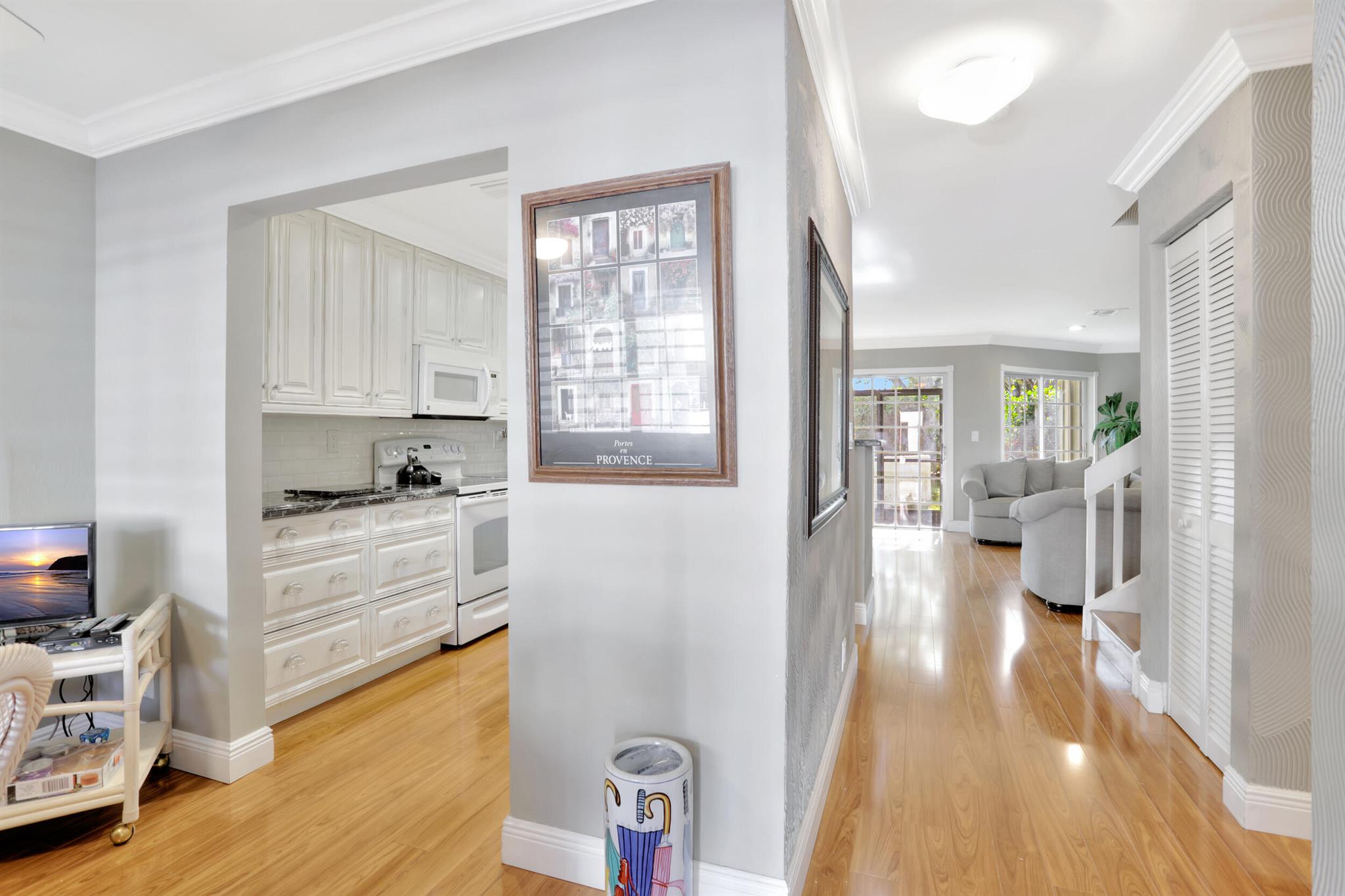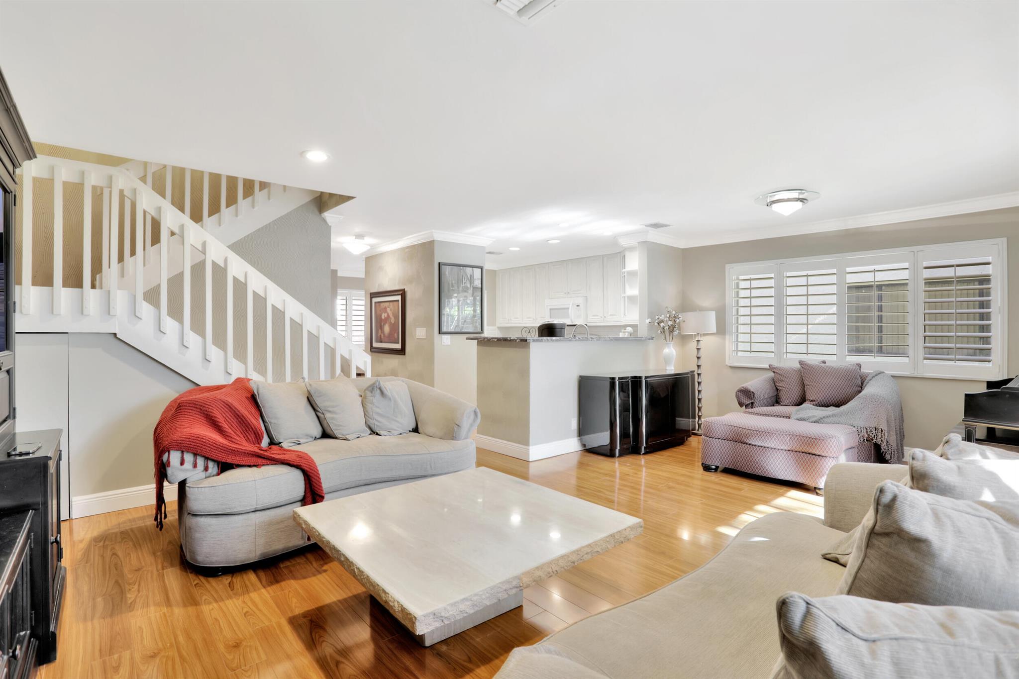 Tastefully Updated 2 Story Town House/Condo . Spacious 3 Bedroom 2.5 Baths. All baths have been renovated. Kitchen was updated as well. High Quality Wood Look Laminate Floors throughout. Plantation shutters downstairs. Crown Molding and textured walls adds to the beauty of this home. All windows have Hurricane Shutters. Two Covered Parking places for added convenience.