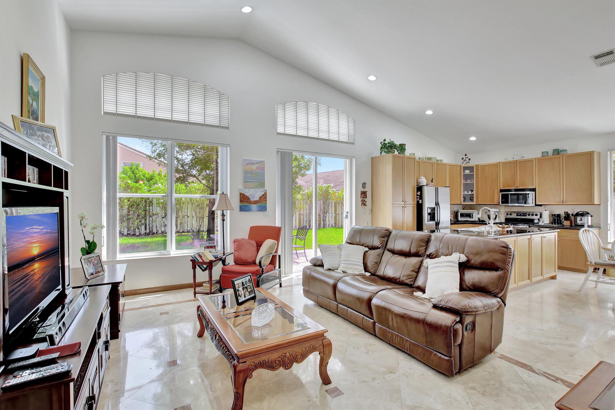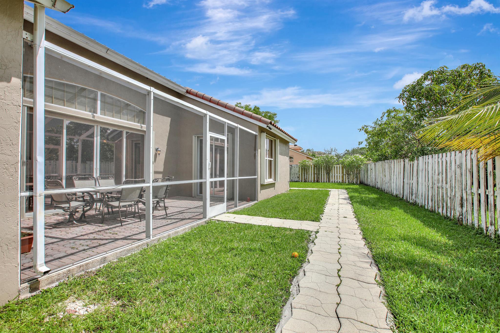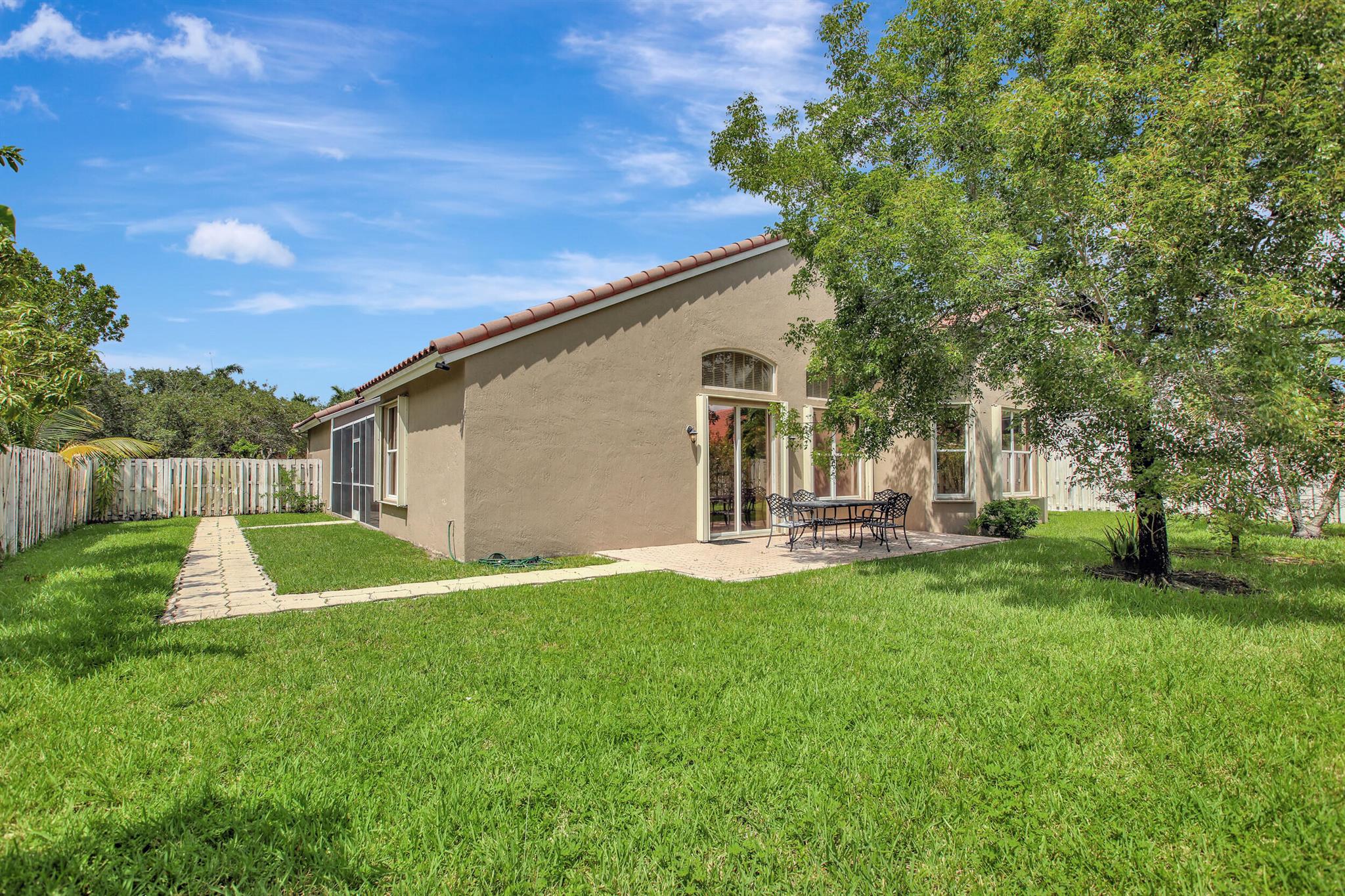 BEAUTIFUL AND WELL-KEPT HOME WITH MARBLE FLOORS AND HIGH CEILINGS. LOCATED IN A GATED COMMUNITY IN SUNSET LAKES. NICE AND VERY COMFORTABLE KITCHEN WITH GRANITE COUNTERS AND BREAKFAST AREA. SCREENED PATIO ON THE EAST SIDE GREAT FOR OUTDOORS ENTERTAINING. STAINLESS STEEL APPLIANCES. MASTER SUITE WITH A HUGE BATHROOM, ROMAN TUB AND WOODEN MADE CUSTOM VANITIES WITH QUARTZ COUNTERTOP. BIG BACKYARD WITH ROOM FOR A POOL. GRADE ''A'' SCHOOLS, SHOPPING, HOSPITAL & PARKS WITHIN SHORT DISTANCE. RESORT STYLE COMM. WITH FITNESS CENTER, KIDS PLAYROOM, POOL, PLAYGROUND, TENNIS, VOLLEYBALL & BASKETBALL COURTS. MAINENANCE FEE INCLUDES ADT ALARM & BASIC CABLE.ALL MEASURMENTS ARE APPROXIMATE AND NOT GUARANTEED.