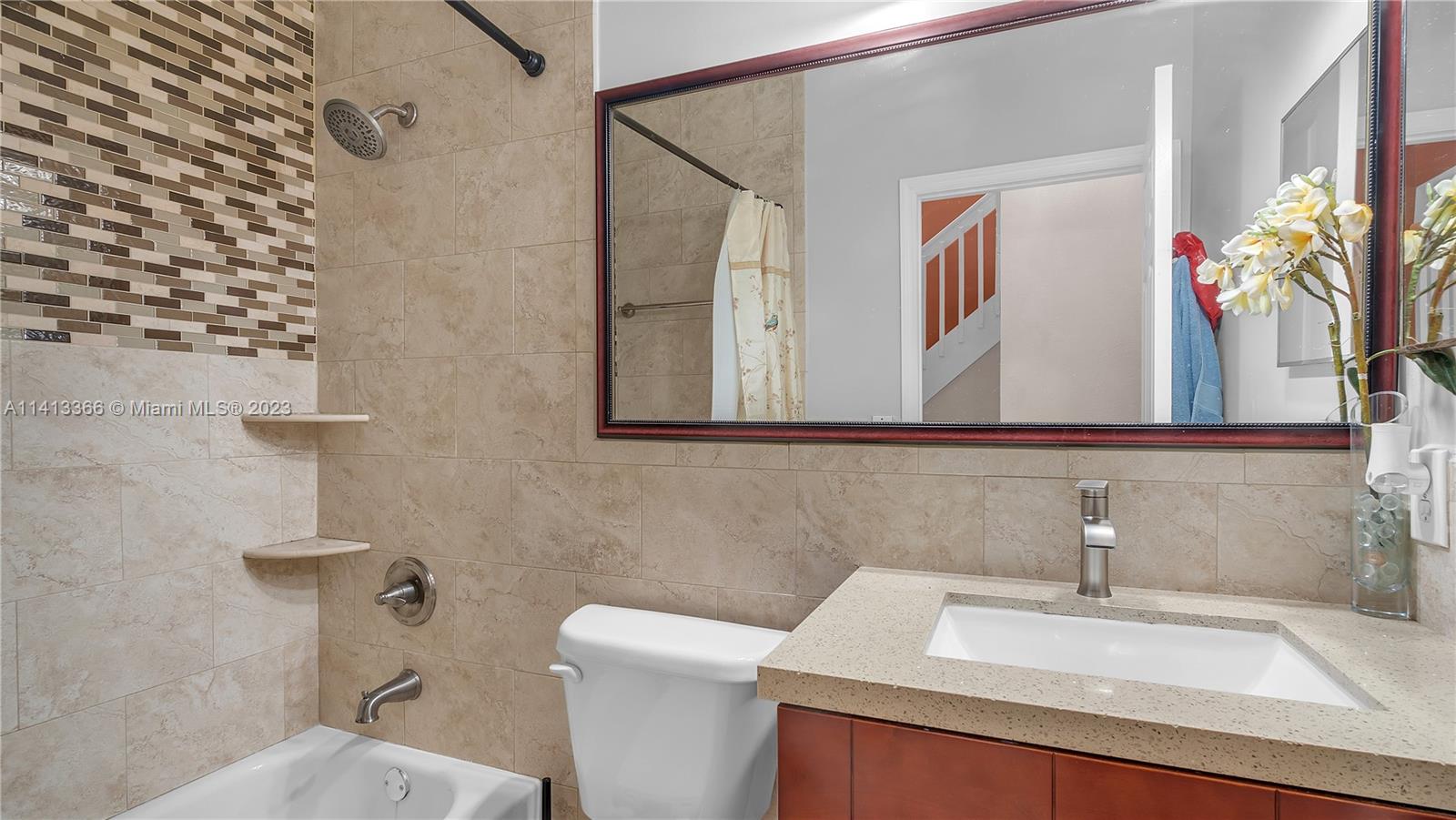 Beautiful 5BD/3BTH home located in Genesis at The Landings in Pembroke Pines. This hidden gem boasts of soaring high ceilings, tile and wood flooring, open kitchen and stainless steal appliances. Four bedrooms and 2 bathrooms are located on the second floor with a guest suite and full bathroom located on the primary level. The owner's suite is fully renovated with a large walk-in closet. Backyard with wooden deck for hosting gatherings. Full size washer and dryer located in the single-car garage. Conveniently located minutes away from I-75, Turnpike, CB Smith Park, and local shopping plazas. This is a perfect starter home for a growing family. A/C 2013/ Water Heater 2021 OWNER REQUIRES 1 HR NOTICE FOR SHOWINGS.