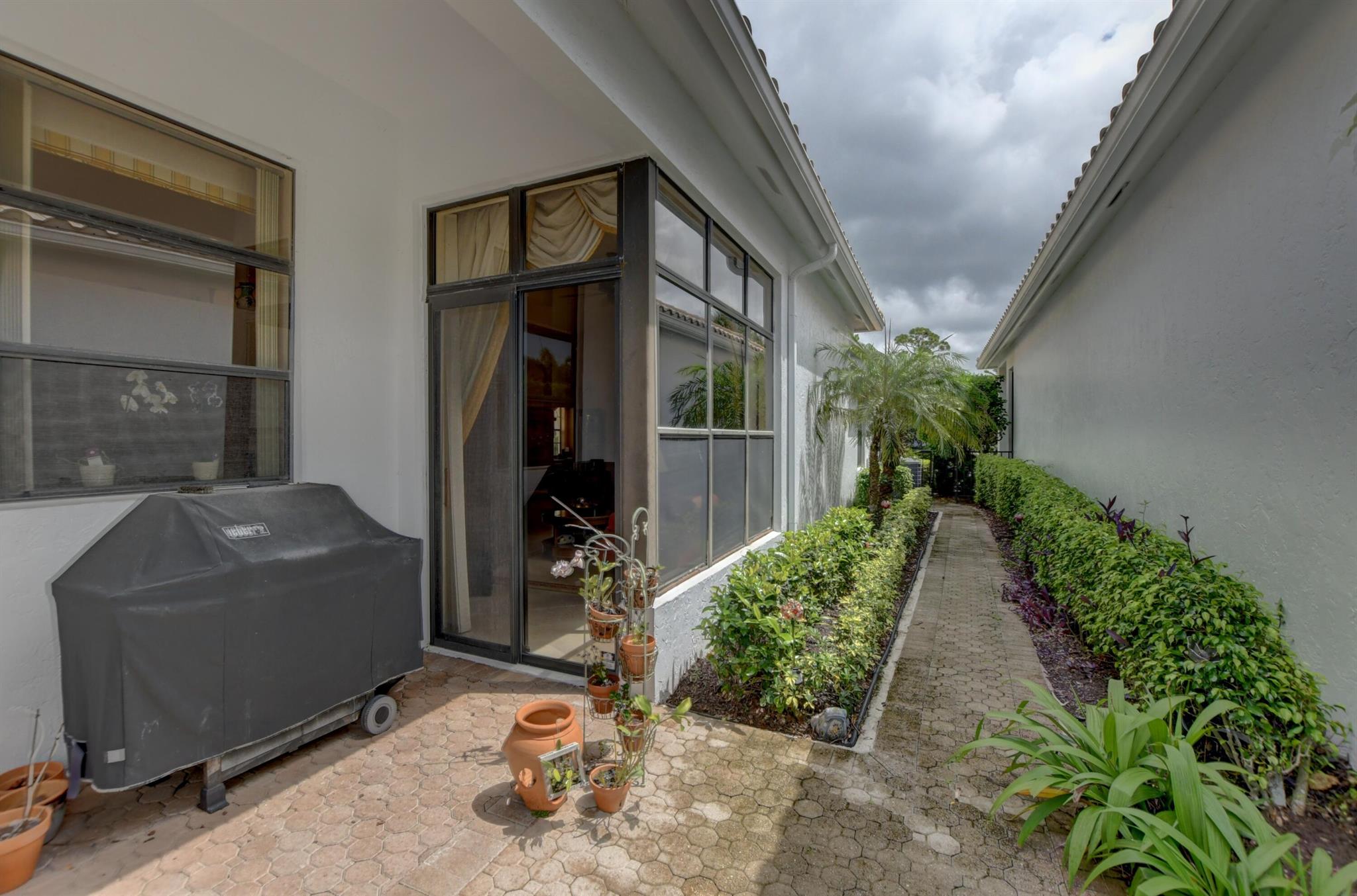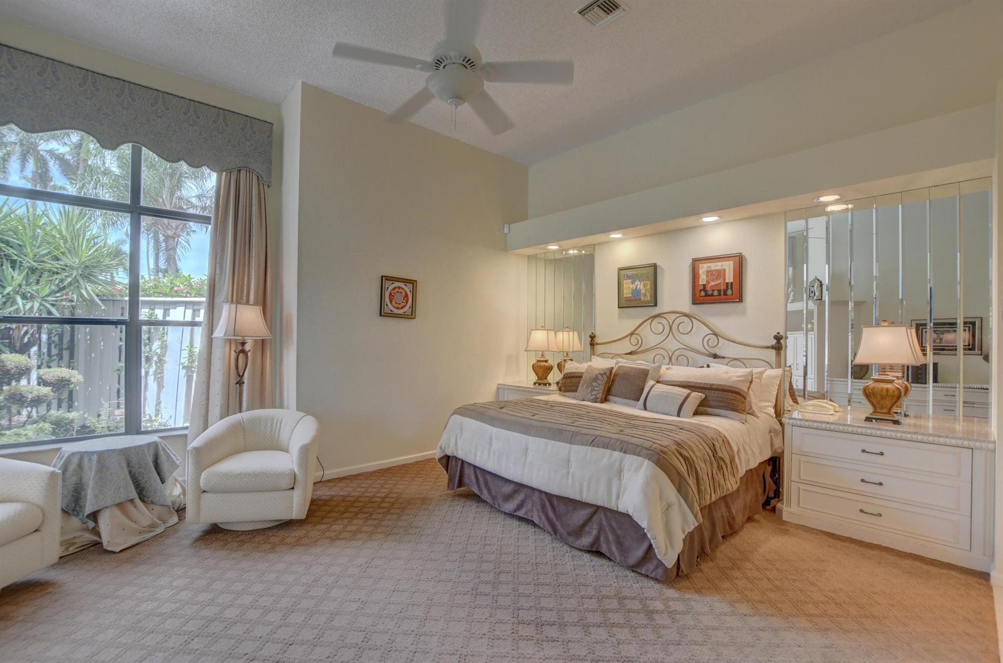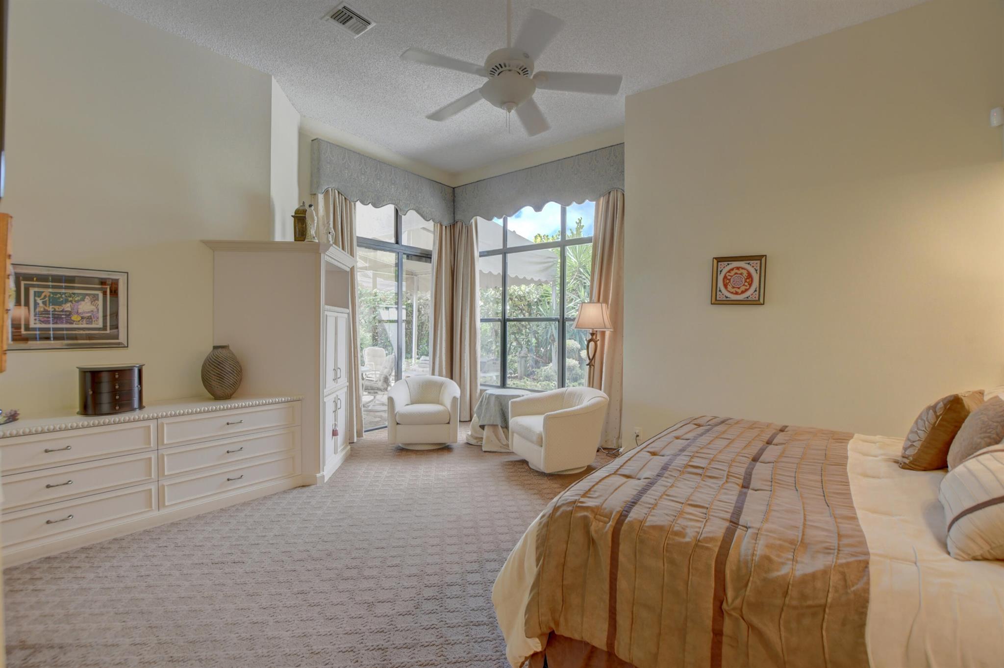 Best single-story, 3 bedroom, 2.5 bathroom layout in Oak Run of Broken Sound Country Club. Walk into a gracious living room flowing into a separate dining area - perfect for entertaining and family gatherings. Great windows and sliders bring in tremendous light. Kitchen offers beautiful traditional cabinetry and great storage with a large eat-in area surrounded by floor to ceiling sliders overlooking a private, serene back patio with a large fixed awning - wonderful for outdoor dining.Primary suite is oversized with built-ins for extra storage and features abundant light with outdoor access. Primary bath is large with an updated vanity and shower, and a spacious walk-in closet. The additional 2 bedrooms are located across the home - perfect for guest privacy.