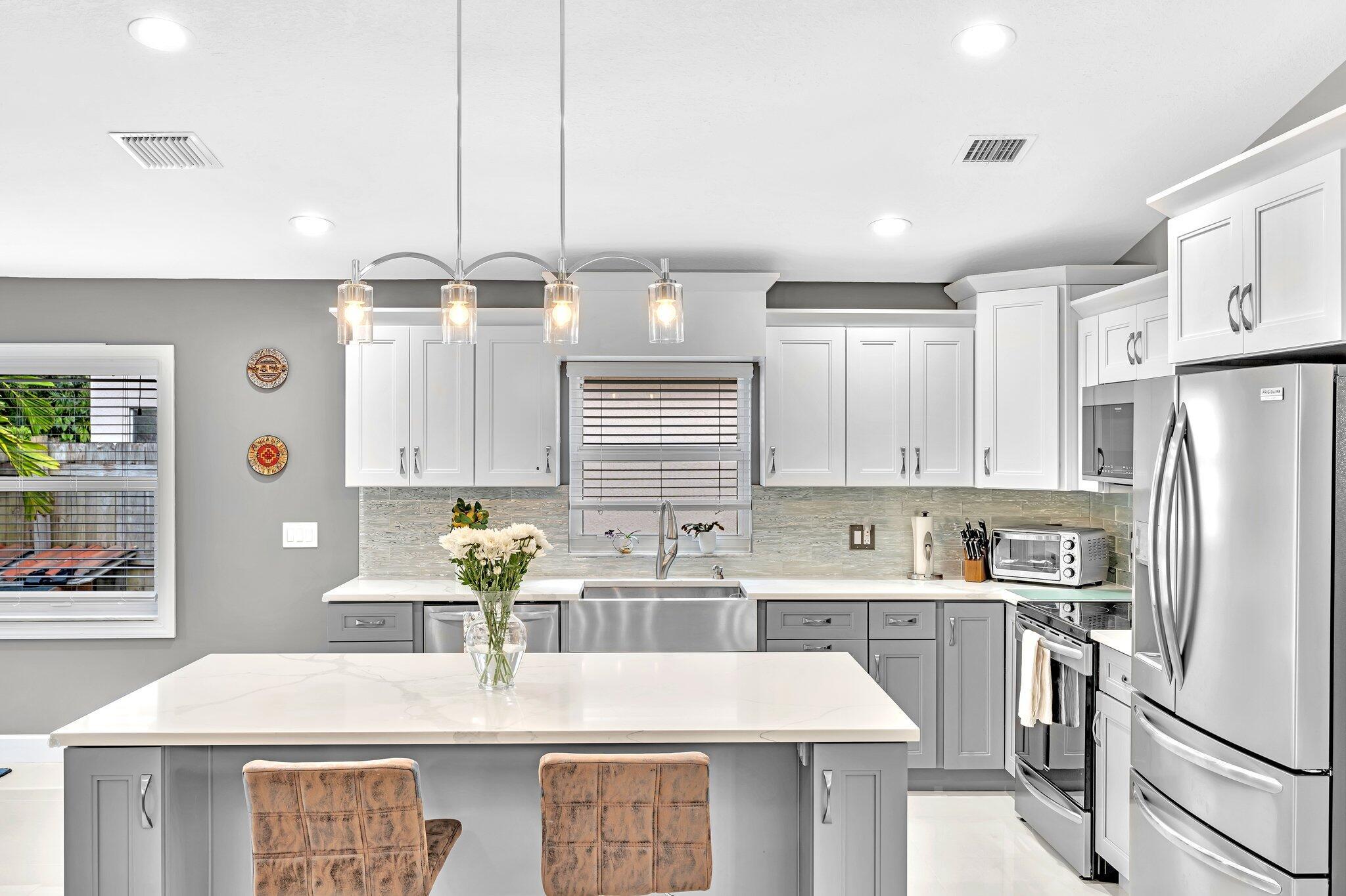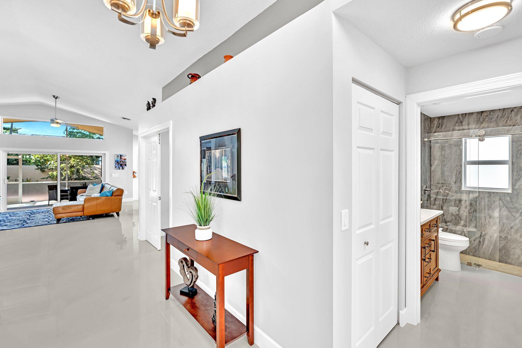 Stunning, Completely Remodeled 3/2 in a quiet Boca Raton Gated Community. The LONG list of Upgrades include- New Roof 2023, Impact Windows & Doors 2022, AC 2022, all Appliances 2021. This home is truly special, from the Open Kitchen with new Wood Cabinetry, Quartz Counters & Huge Island, to the Porcelain Floors continuing right out to the Newly Screened Patio. The Primary Suite features 2 Walk in Closets, a gorgeous light & bright bath with Freestanding Tub, large step in Shower & Double Sinks. Private Backyard & a 2 Car Garage! Located directly across the street from a Neighborhood Preserve. Crescent Lakes is a meticulously maintained community with a Clubhouse, Pool, Tennis, Fitness Center & Low HOA dues. Close to Shops, Restaurants & the Best Schools! Nothing left to do but move in!