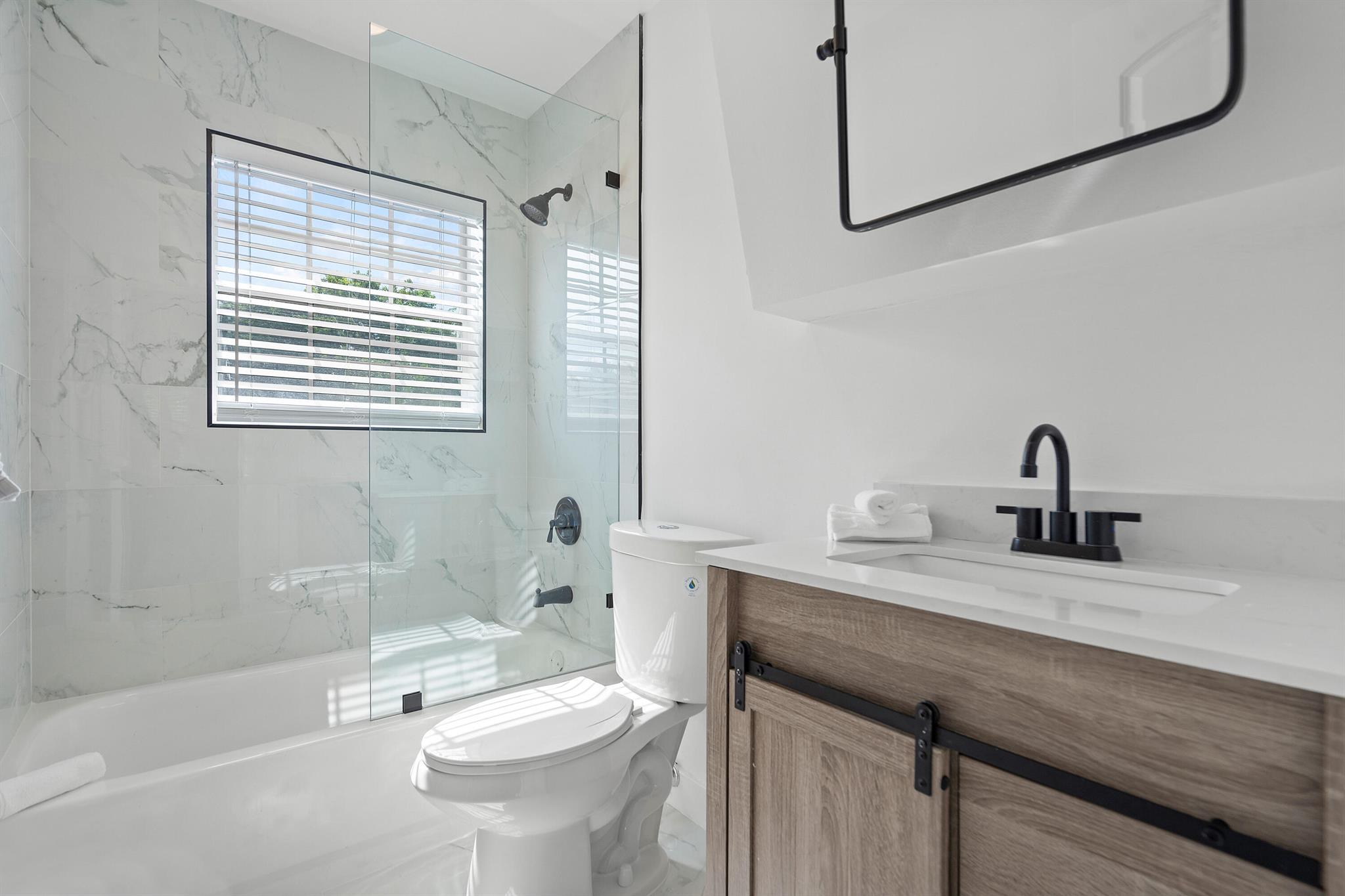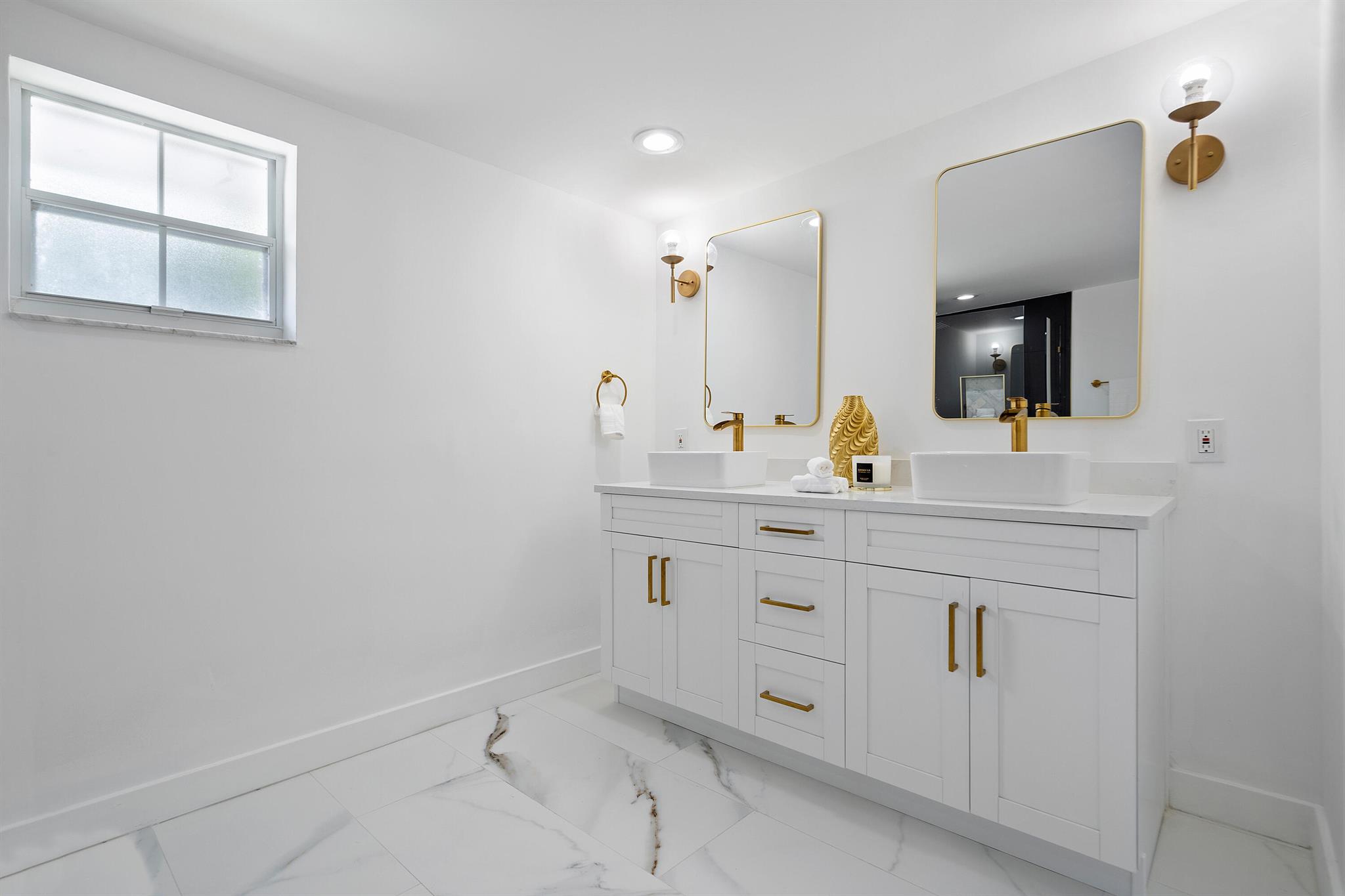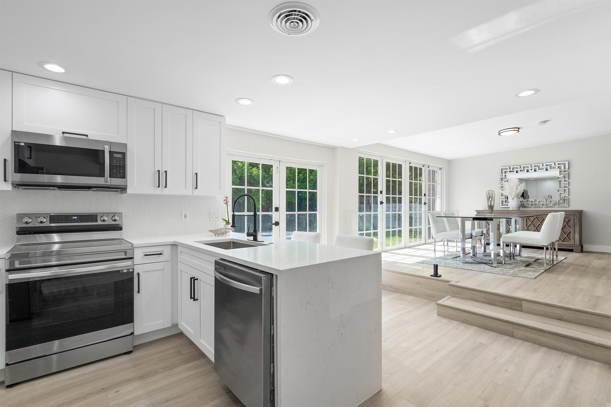 Seller Financing Available! Completely renovated, modern design in Boca Raton's coveted ''Golden Triangle,'' the non-HOA neighborhood of Boca Villas. This 4bed/3bath tri-level single family is walking distance to Downtown Boca's Mizner Park. Stunning, new kitchen with quartz countertops and white shaker cabinets. Freshly painted, LED Lighting and all new stylish and remodeled bathrooms. In-law suite with private entry equipped with its own full bath & kitchenette with a two-burner range. Spacious backyard with your private pool. Indoor/outdoor Florida living with this 9,399 SF Lot (75ft by 125 ft).