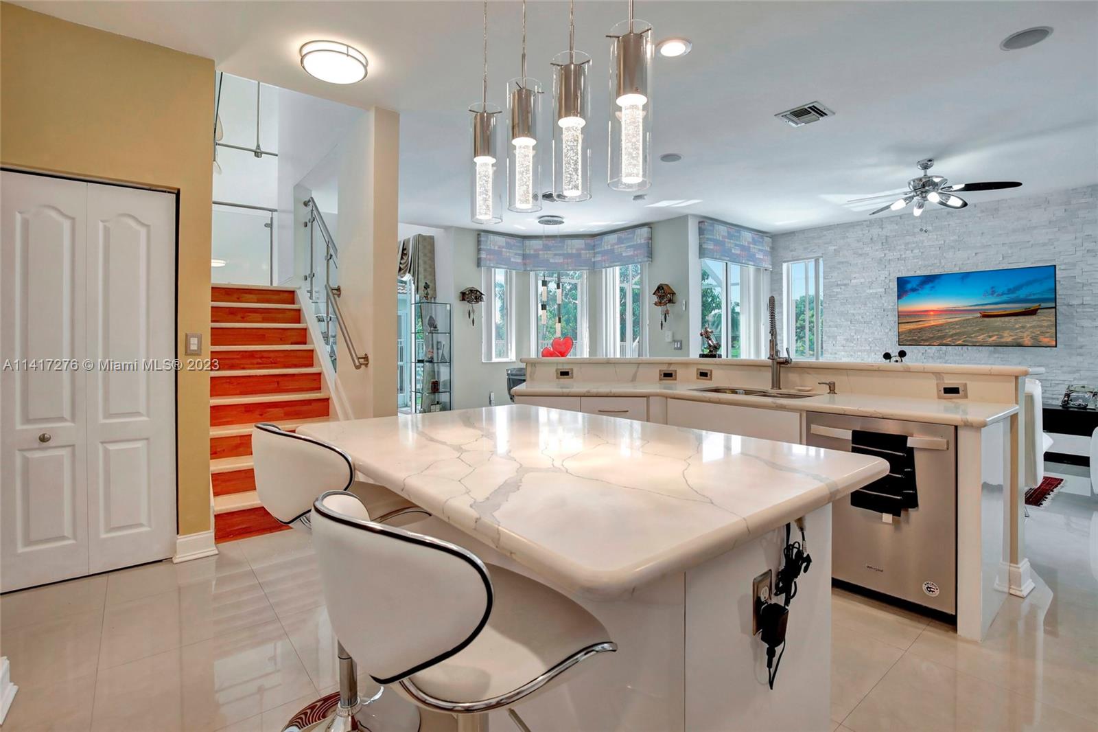 The FRESNO-Welcome to this STUNNING 5 Bed 3 Bath Lake/Pool Home in Prestigious Laguna Isles - Updated and Upgraded beyond belief! INTERIOR FEATURES: 24X24 Marble Tile Throughout•European Kitchen w/Granite Tops•Extended Island w/Wine Cooler•Stainless Appliances & Hood•Laquer Front Cabinetry•Custom Lighting•Custom Under Stairs Wine Celler•Recessed Lighting Throughout•SS & Glass Stair Railings•Upgraded Lower Level Guest Bedroom & FULL Bath•HUGE Master Suite w/Expanded Walk-In Closet•Updated Upstairs Bathrooms w/Custom Tile Work•Stacked Rock Accent Walls•Recessed TV's•6" Baseboards••EXTERIOR FEATURES: Impact Sliders•Accordion Shutters•Heated/Salt System/Screened Pool w/Fully Tiled Overflow Spa & Travertine Decking•Landscape Borders•Cul-De-Sac•Man Cave Tiled Garage•Gated Community w/Pool&Tennis