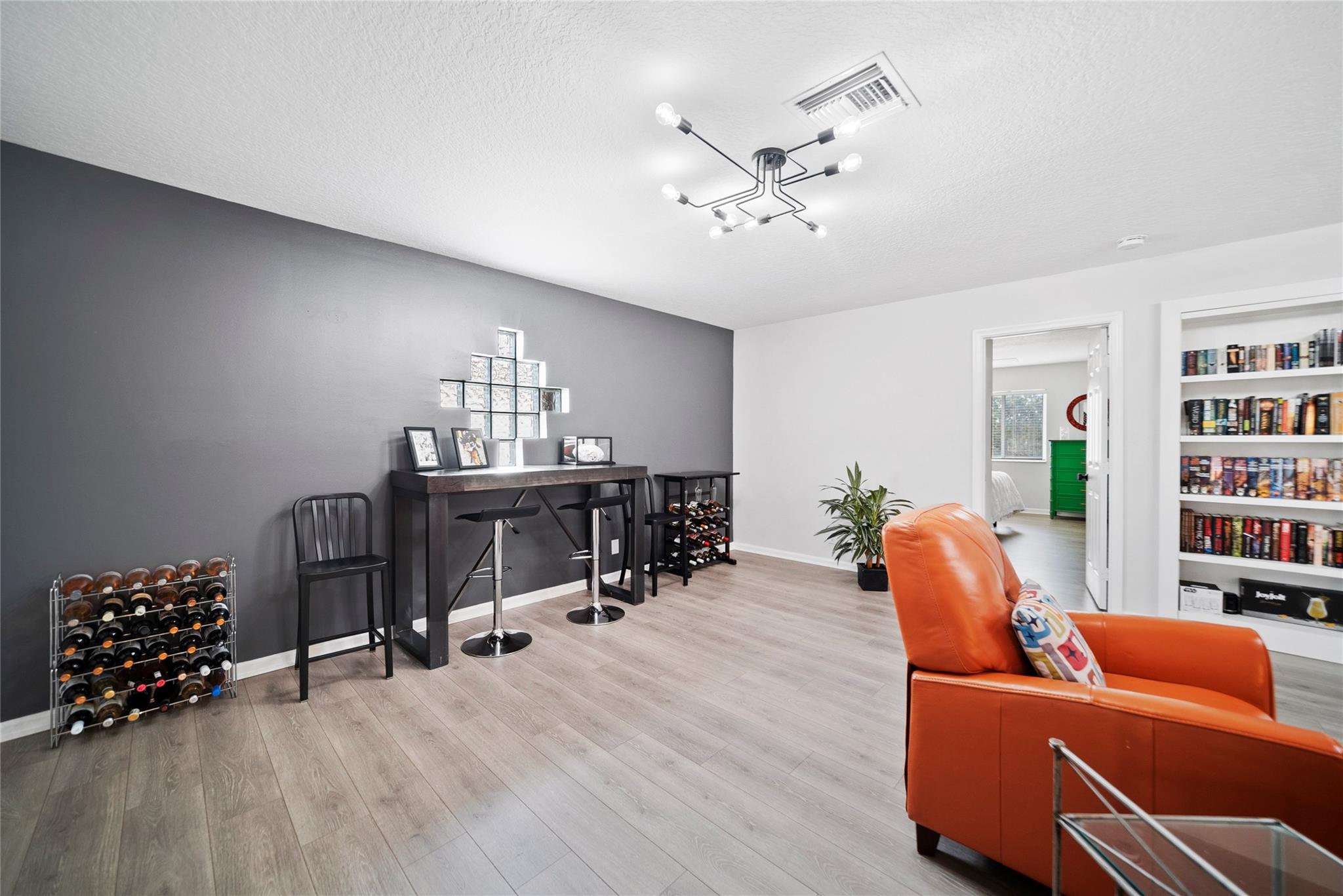 How Does A 5 Beds + 3.5 Bath Home W/ A Huge Loft & Pool On Waterfront View W/ Private Speakeasy Secret Bar Upstairs Sound! This Home Is A Entertainers Dream! Sporting 3-Car-Garage, Expansive Covered Patio W/ French Impact Doors W/ Accordion Hurricane Shutters, Upgraded Home W/ Oversized Eat-In Kitchen & Island. Primary Bedroom Is Downstairs Overlooking Your Gorgeous Lake View & Pool. Spacious Patio W/ Shower. Your Loft Upstairs Is Perfect For Kids To Be Entertained. Your Private Speakeasy Room Brings You Back To The Prohibiton Era W/ Your Secret Bookcase Entrance Straight Out Of A Hollywood Movie. 4 Bedrooms Upstairs W/ Modern Luxury Baths. Upstairs Huge Bed & On-Suite Bath. Centrally Located Close To A-Rated Schools, Shopping and Major Highways For Convenient Travel. Gated Community!