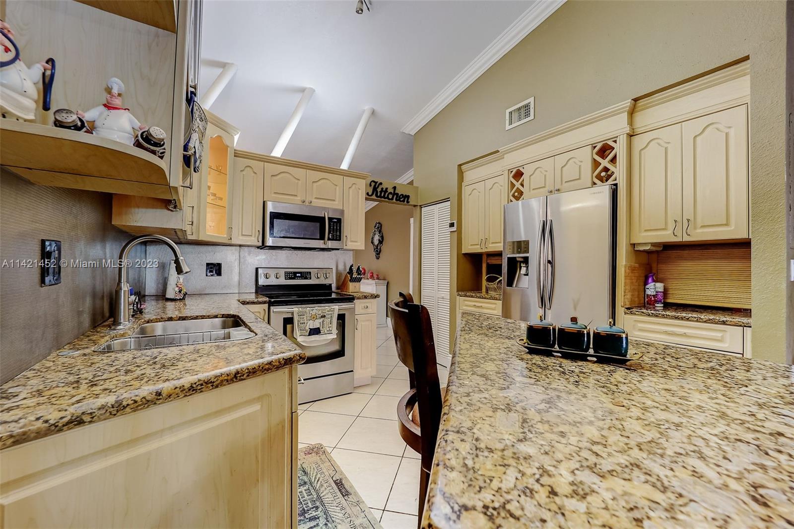 Don’t look further! This one-story single-family house in west Hialeah offers 3 beds, 2 baths. Nestled in the desirable Alameda by the Lake community. Prepare to be enchanted by the breathtaking lake views, offering a sense of tranquility that will soothe your soul. Relax on the 12 ft deck with concrete pilings, all tiled patio under the aluminum patio roof perfect for entertainment and gatherings. The vaulted ceilings inside create an open feel, updated kitchen with stainless steel appliances. Enjoy the split layout and all tile floors. A Tile roof add elegance and character. Full-size washer/dryer included. Close to great schools, and all you can need. Don't miss this opportunity for lakefront living in the City of Progress! THIS IS A MUST SEE!