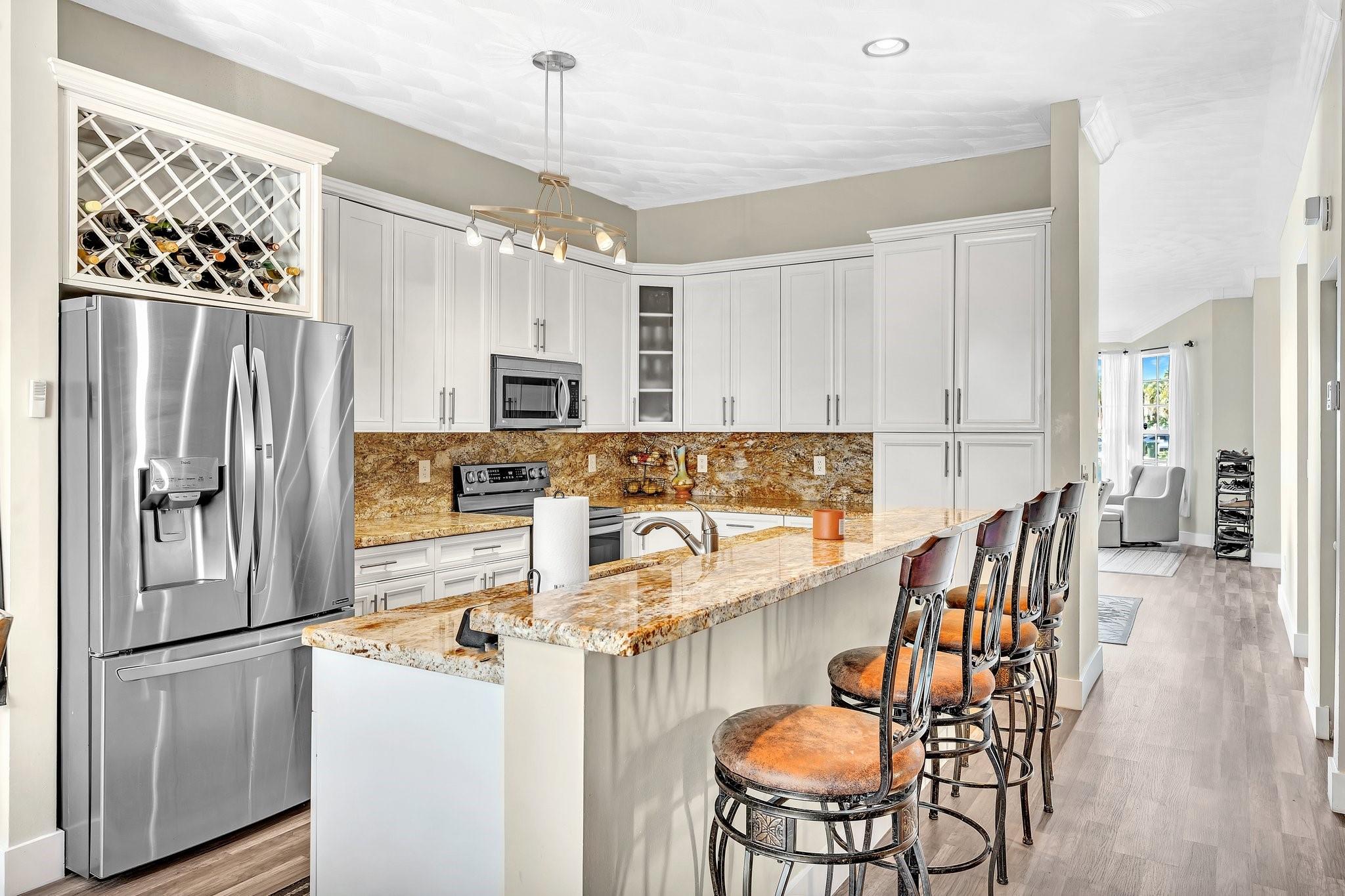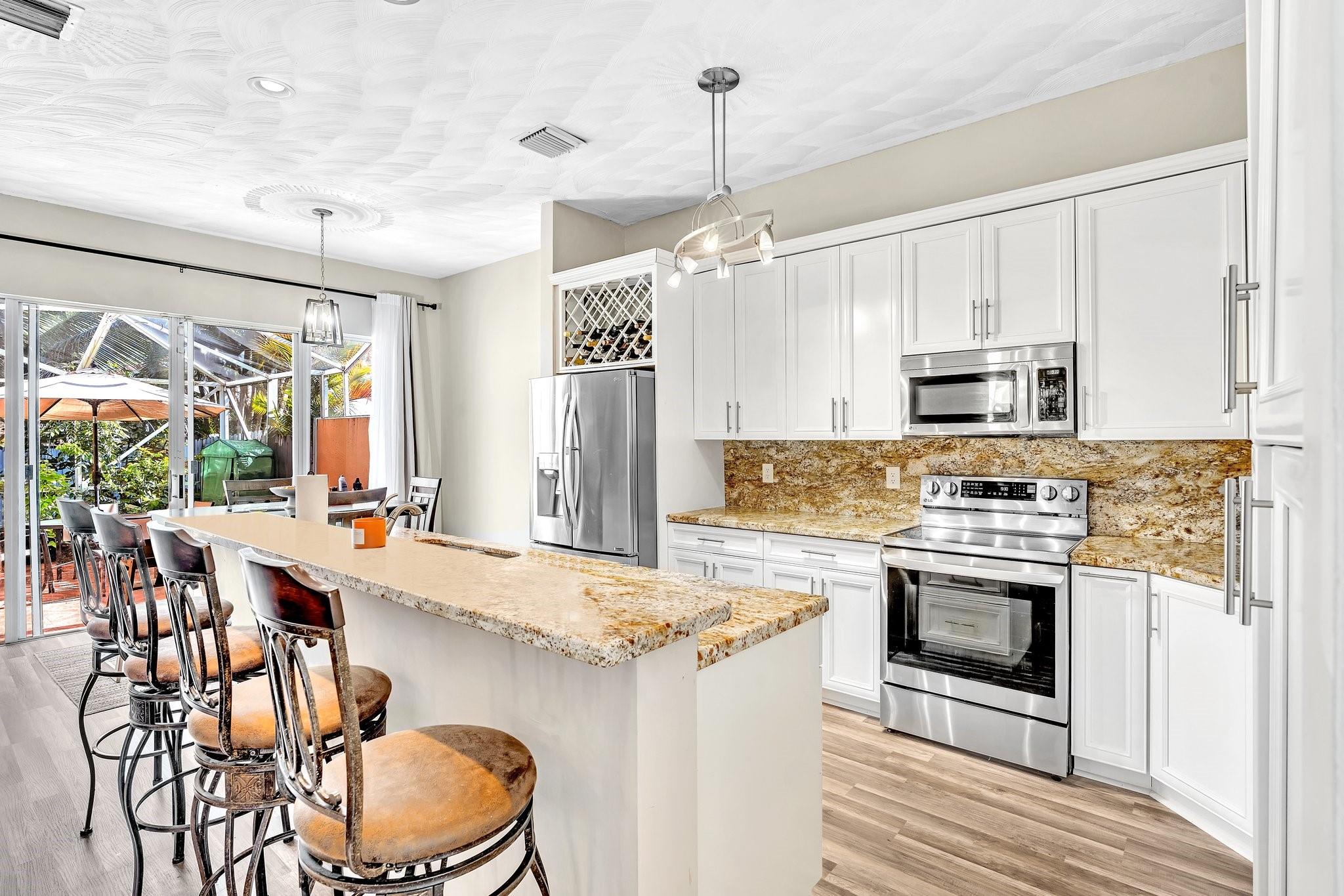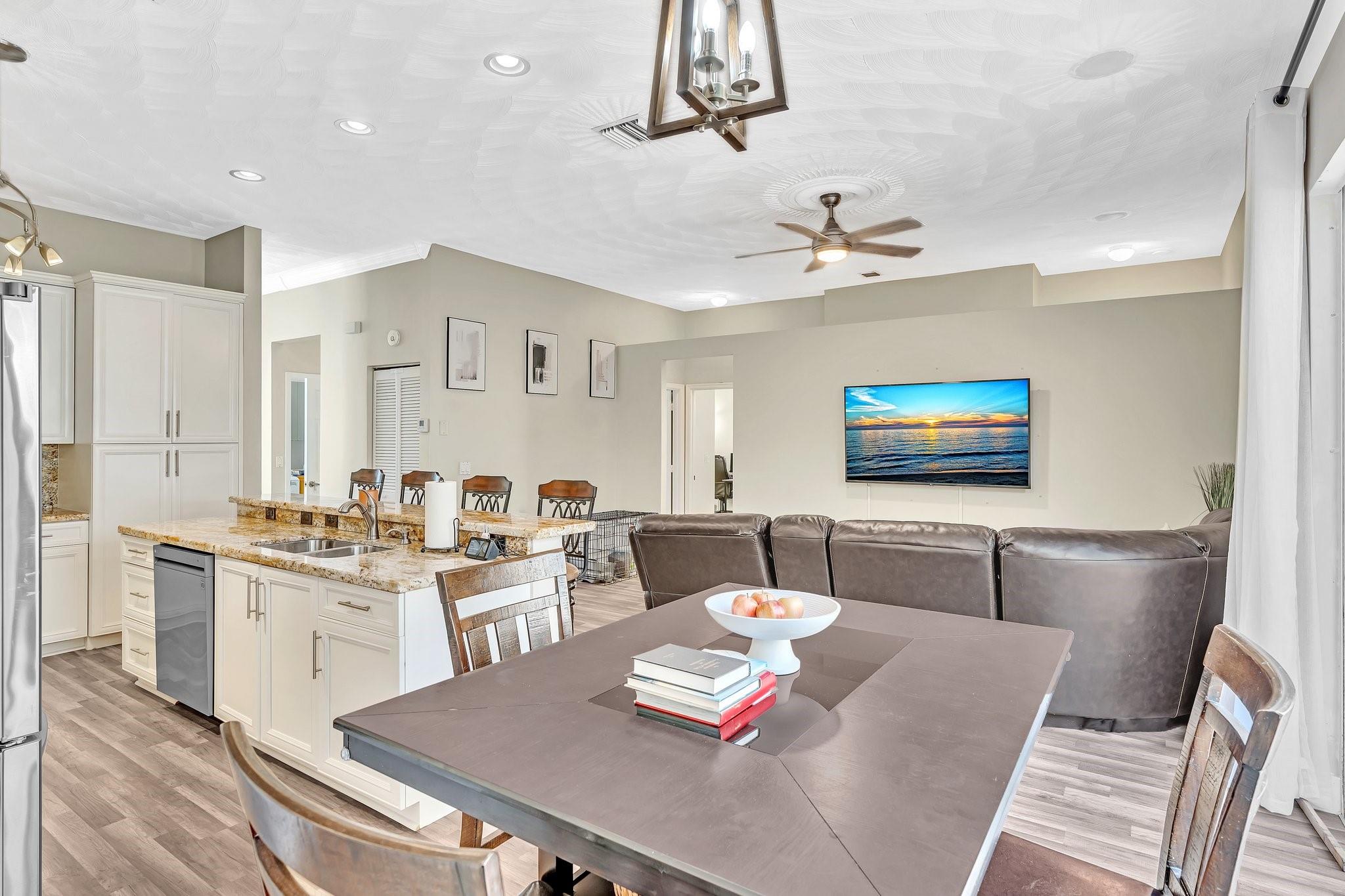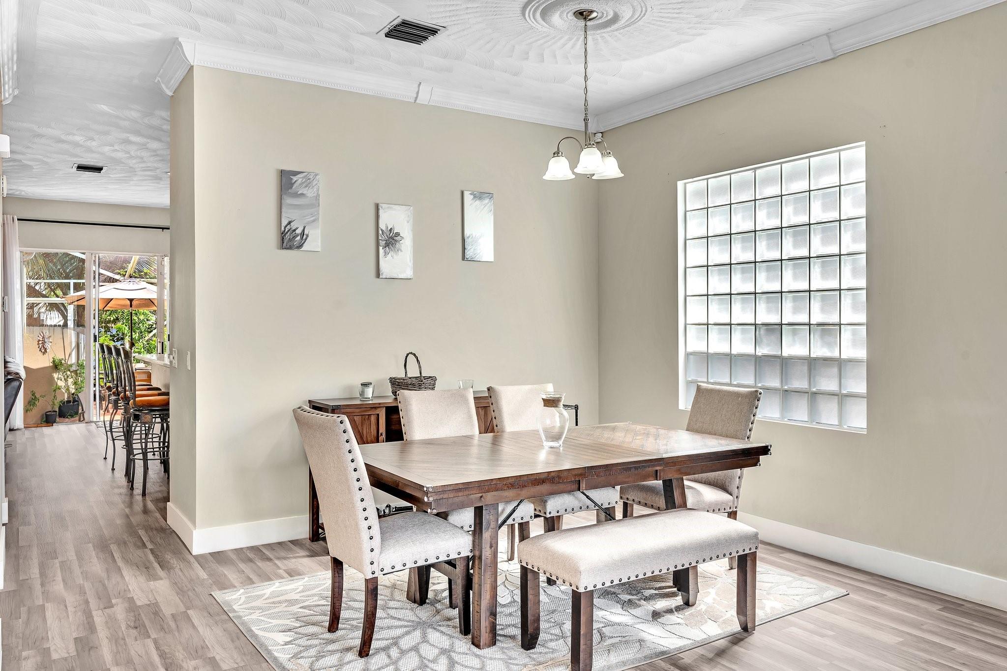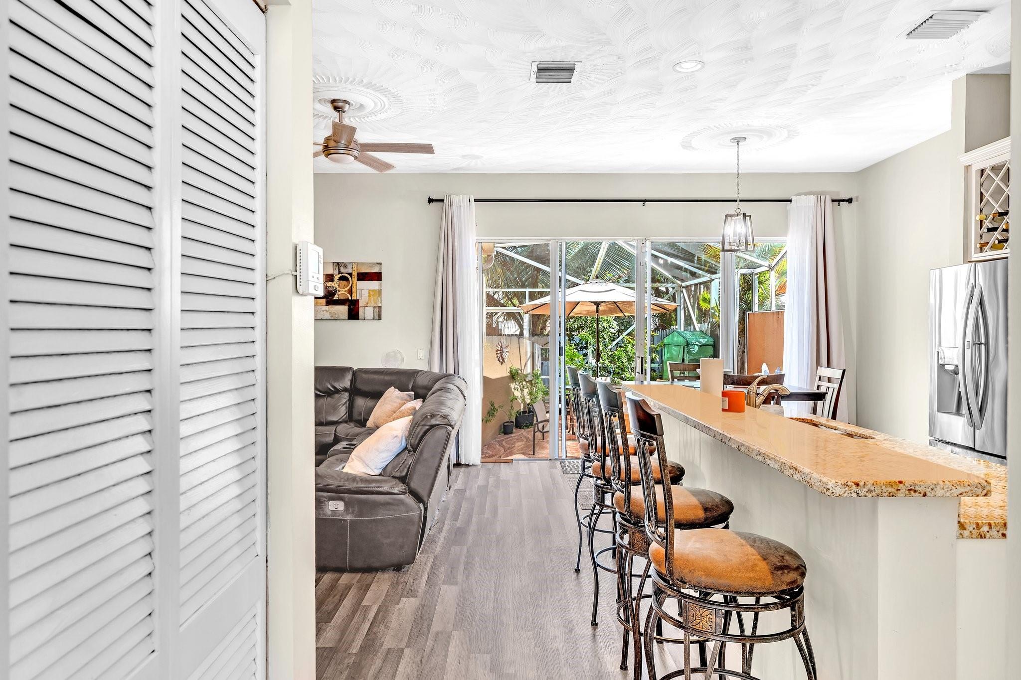 Welcome home! This exquisite 4-bedroom, 2-bathroom residence boasts an array of upgrades and a lush backyard filled with fruit and vegetable trees such as bananas, mangoes, strawberries, peppers, eggplants, spinach, and much more! Nestled in the sought-after Canary Bay community, this home offers a serene and family-friendly environment. With modern features, including a beautifully upgraded kitchen with granite countertops and all-new appliances, this home is truly a gem! The interior features 11-foot ceilings, new floors throughout the living and dining areas, two modern bathrooms with updated fixtures, a new water heater and electrical panel, a newer A/C unit for optimal comfort, and accordion storm shutters. Don't miss the opportunity to make this your home!