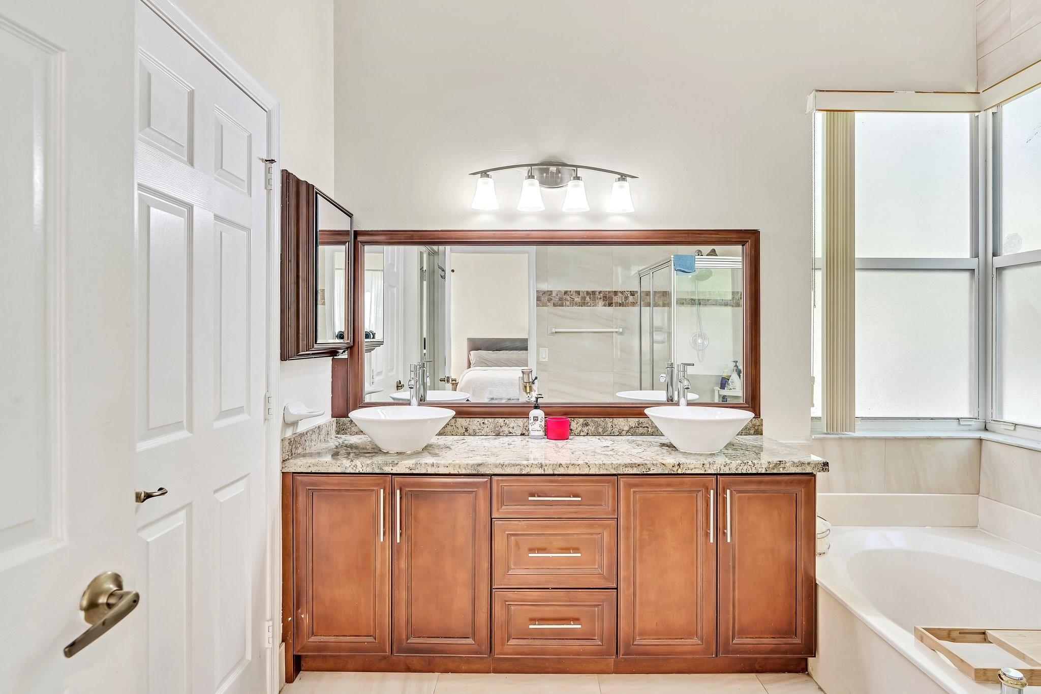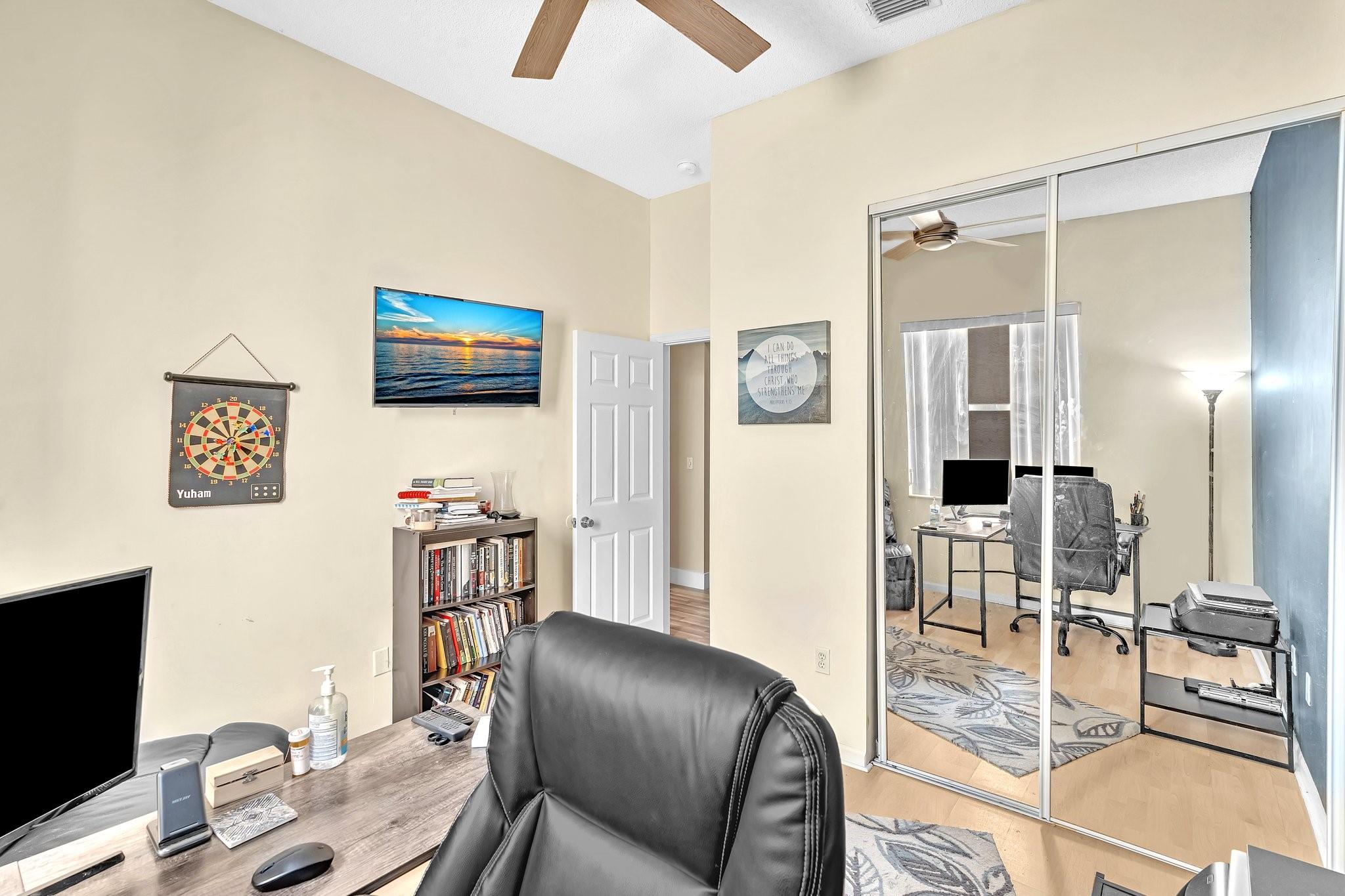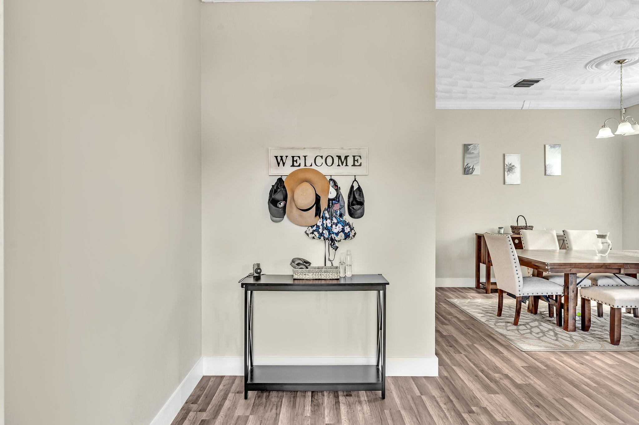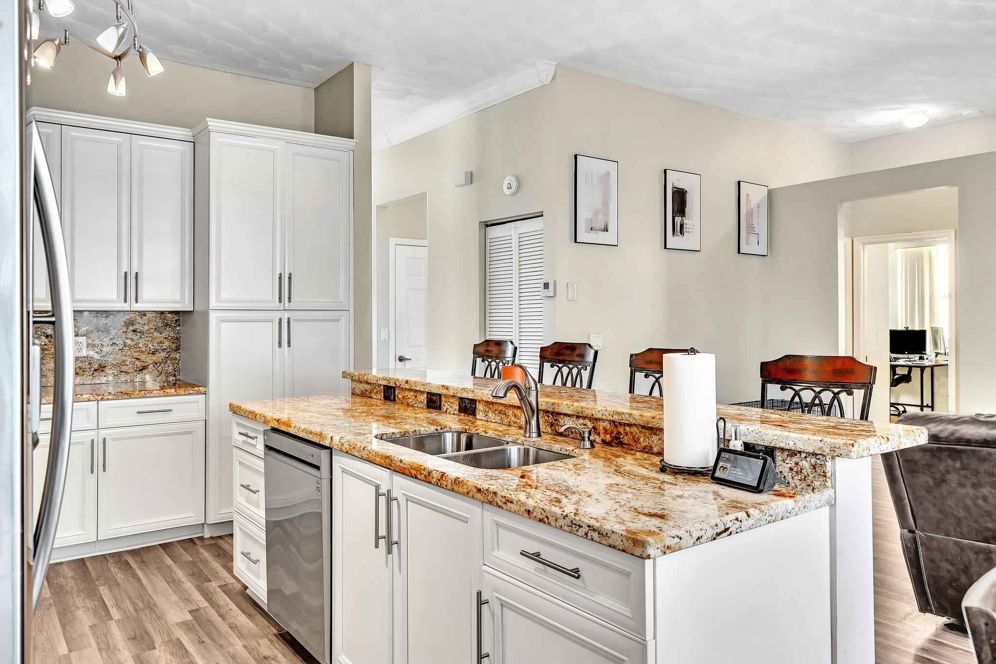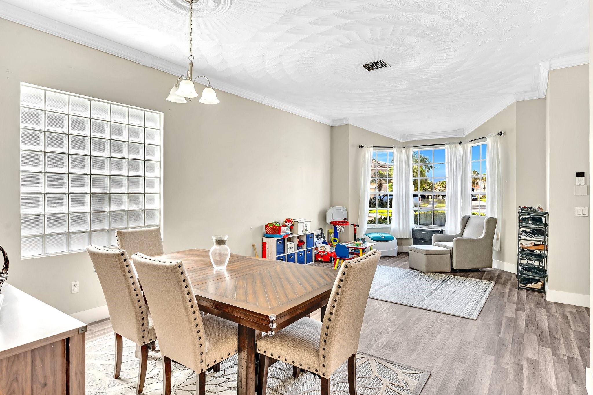 Welcome home! This exquisite 4-bedroom, 2-bathroom residence boasts an array of upgrades and a lush backyard filled with fruit and vegetable trees such as bananas, mangoes, strawberries, peppers, eggplants, spinach, and much more! Nestled in the sought-after Canary Bay community, this home offers a serene and family-friendly environment. With modern features, including a beautifully upgraded kitchen with granite countertops and all-new appliances, this home is truly a gem! The interior features 11-foot ceilings, new floors throughout the living and dining areas, two modern bathrooms with updated fixtures, a new water heater and electrical panel, a newer A/C unit for optimal comfort, and accordion storm shutters. Don't miss the opportunity to make this your home!