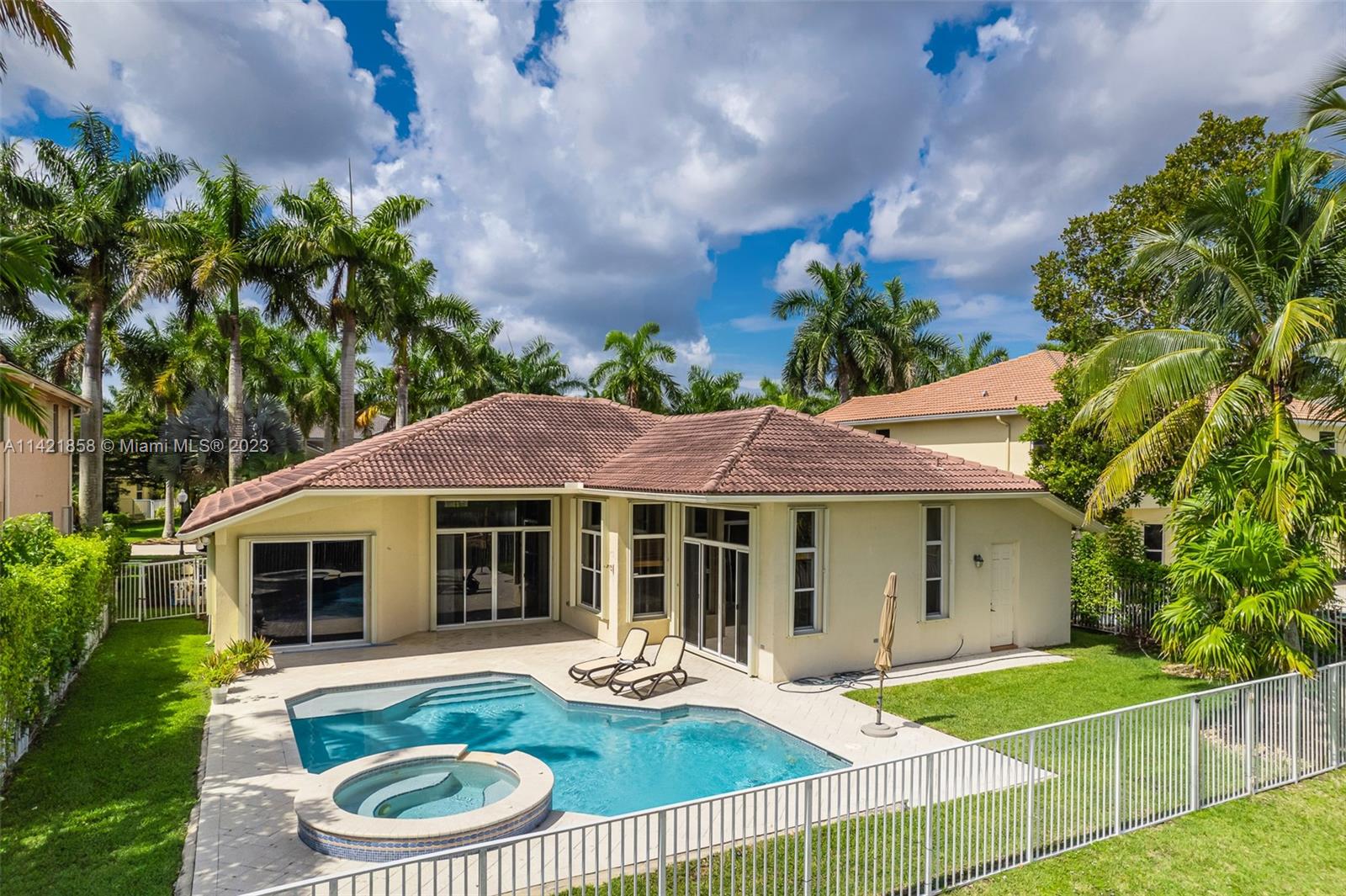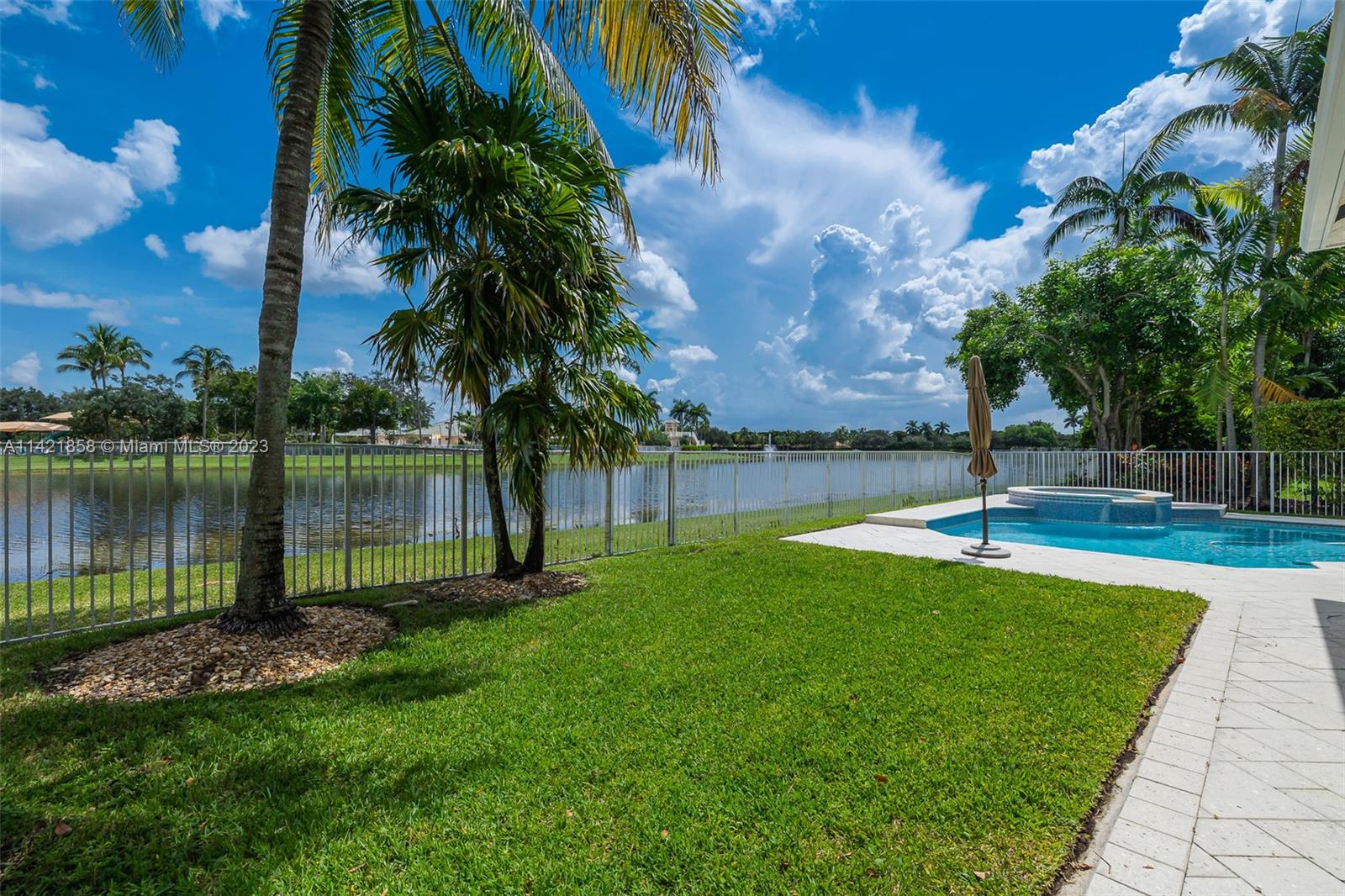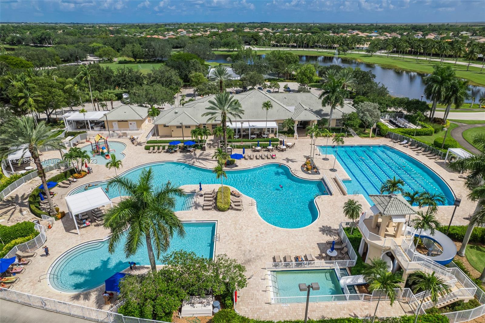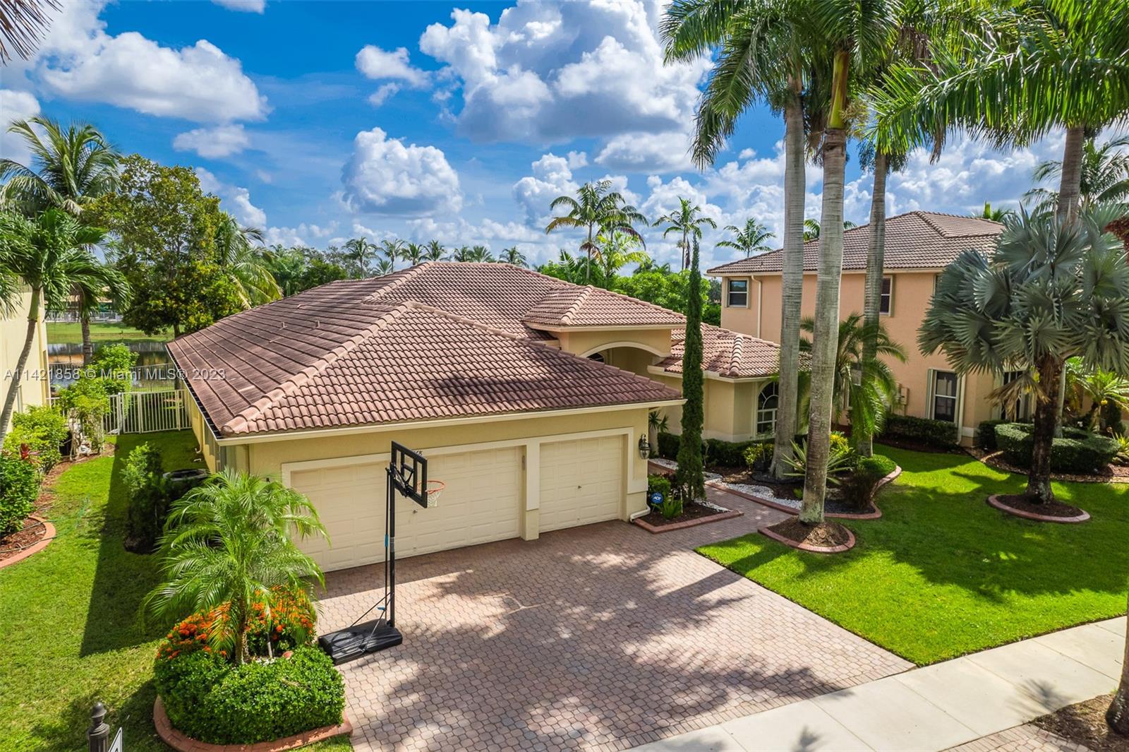 Spectacular premium location in Savanna, The Cove. Quiet royal palm tree street. Location, location, location. This water view home, has lots of natural lighting and an open, bright floor plan. Located in Gated Community of Savanna, 4 bedrooms, 3 bathrooms, 3 car garage, vaulted ceilings, laundry room, accordion shutters and an amazing lake view. Primary bedroom has 2 walk-in closets. Pool area is private. Stunning backyard with covered patio. Fabulous resort-style amenities for the entire family; clubhouse with heated lap pool, resort pool, kids pool, water slide, playground, soccer field, basketball court, hockey rink, BBQ area, miniature golf, and much more. 24 hour guarded gated community near to Weston Regional Park, Publix, restaurants and stores. Excellent A+ schools.
