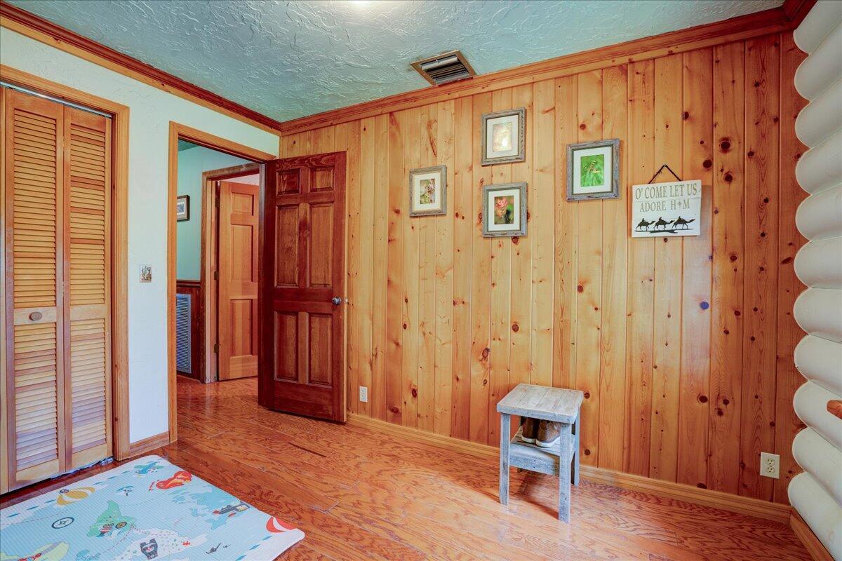 Welcome to this one-of-a-kind 3-bedroom log home, nestled on a sprawling 1.25 lot. This distinctive property exudes rustic charm. Its unique character and the idyllic surroundings make it a perfect opportunity for those seeking a personalized retreat.As you approach the property, you'll be immediately captivated by the classic log construction that exudes warmth and character. The home's exterior features sturdy logs, creating a timeless aesthetic that seamlessly blends with the surrounding landscape. A spacious front porch beckons you to sit back, relax, and take in the peaceful ambiance of the wooded surroundings.Step inside, and you'll be greeted by an inviting interior that showcases the beauty of natural wood. The living area features a wood floor, and pine panel ceiling.