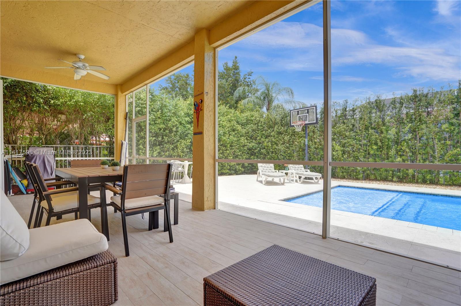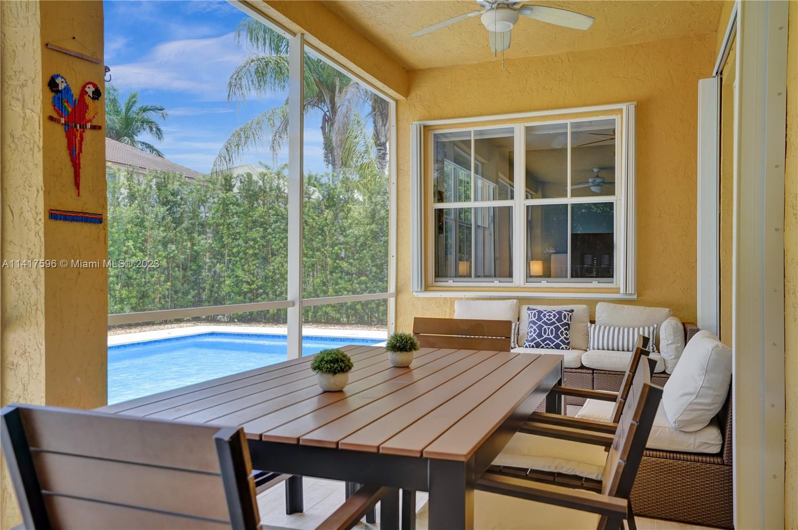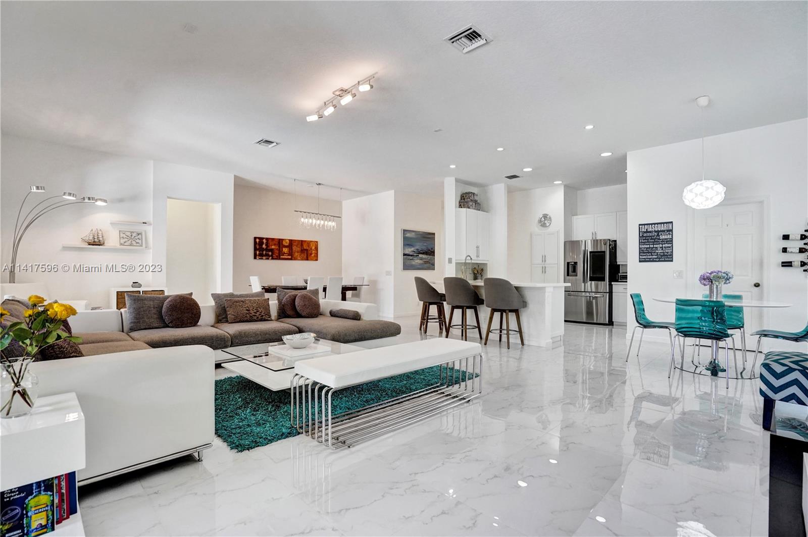 Welcome to your dream home in the exclusive resort style, guard-gated community of Savanna. Enter this beautiful home to find stunning porcelain flooring, open concept, renovated bathrooms, and a modern chef's kitchen that’s a culinary enthusiast's delight featuring induction stove top, quartz countertops, high-end stainless steel appliances and abundant space for meal prep. An enclosed patio overlooks a modern salt-water pool with a gorgeous new pool deck. Beautiful window treatments highlight the entire home. Amazing community amenities include community pool and a water slide, a playground, miniature golf, a soccer field and so much more. All 'A" rated schools, HOA Paid quarterly, this is an amazing property.