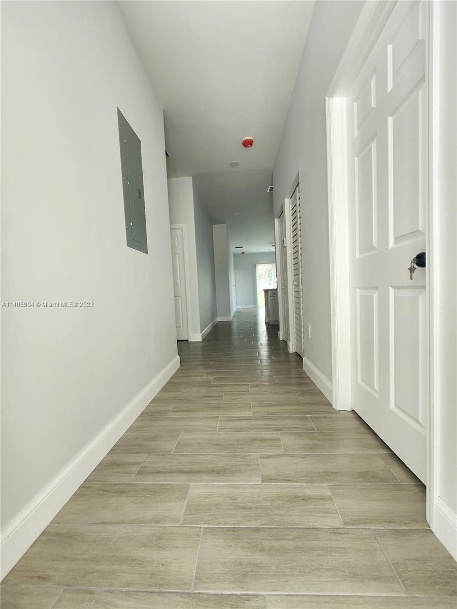 This stunning 2023 New construction residence boasts 4 bedrooms, 3 Bathrooms including a private guest bedroom with a bathroom, ideal for guests or as a mother-in-law suite. The modern design and open layout create a warm and inviting atmosphere throughout. The kitchen features quartz countertops and stainless steel appliances. With 10 ft high ceilings, three parking spots, and impact windows ensuring added security, Experience convenience, tranquility, and peace of mind in the serene backyard of this exceptional home. Strategically located you'll enjoy easy access to Oakwood Plaza and Dania Pointe, recognized as major economic driver in the area, where a variety of dining, shopping, and entertainment options await. The I95 Highway, Airport, Us1, and beaches are all just a short drive away