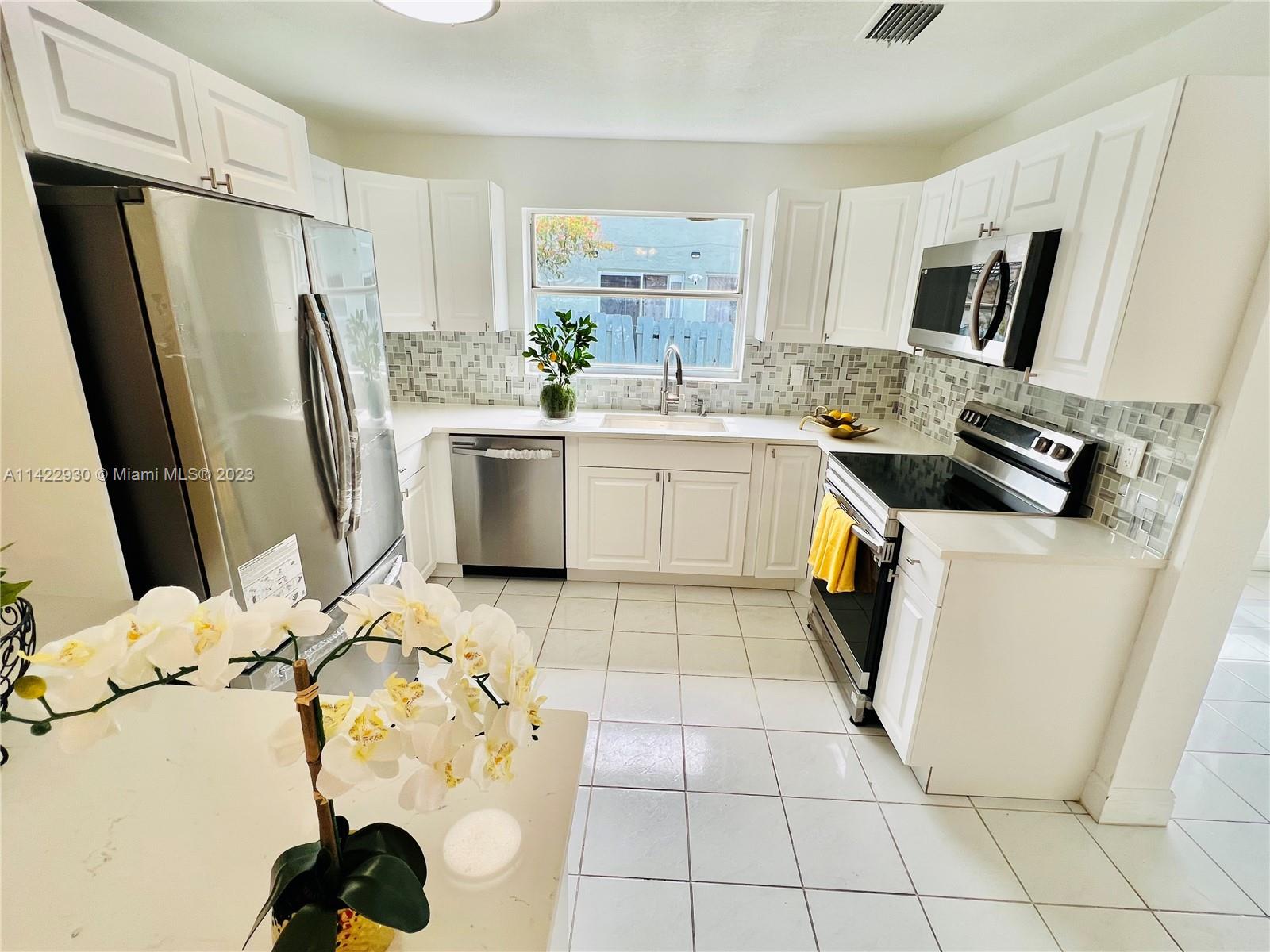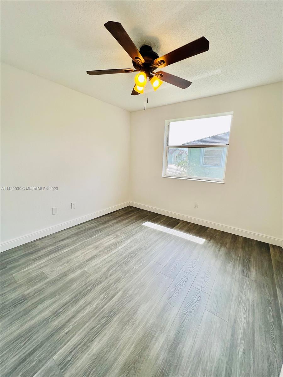 Beautiful 2 Story home, 3/2.5 bathrooms has been updated. BRAND NEW ROOF. It features an open concept main level with living room vaulted ceilings, tile and laminate new floorings in the bedrooms, dining area with a beautiful contemporary "ice-cube" design lighting feature. The kitchen boasts quartz counters with backsplash, stainless steel appliances, white kitchen cabinets and ample storage. Full size washer and dryer. The backyard oasis is ideal for entertaining or just relaxing out on the porch or fenced green space. There is a single car garage, 2 parking pads and guest parking (car garage has been converted into a living area, this area can easily be converted back). Community has a great pool and play areas.