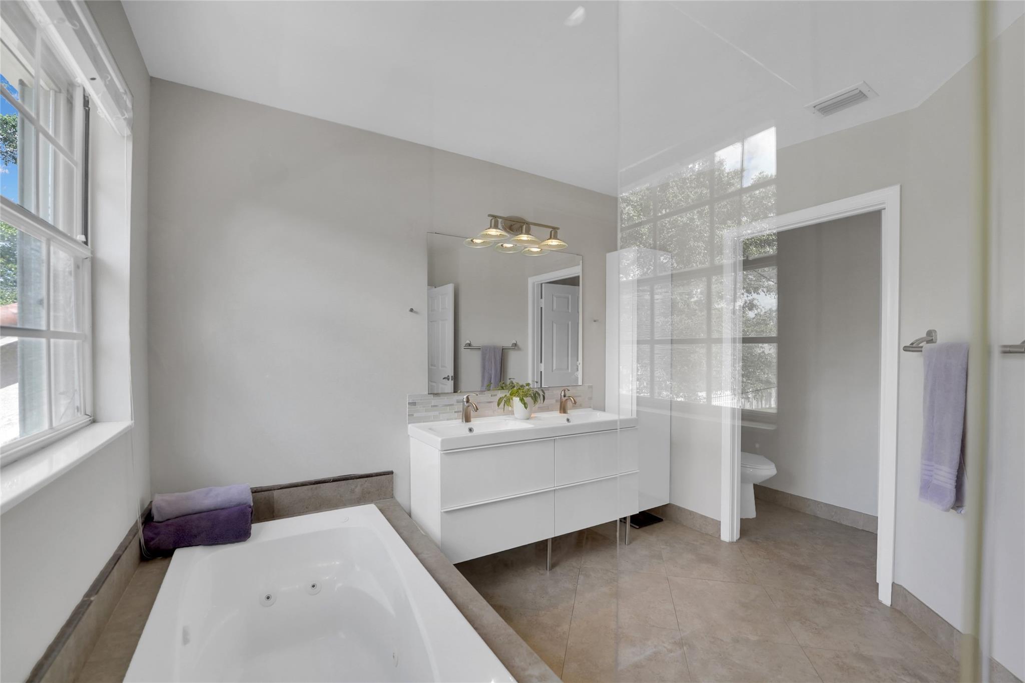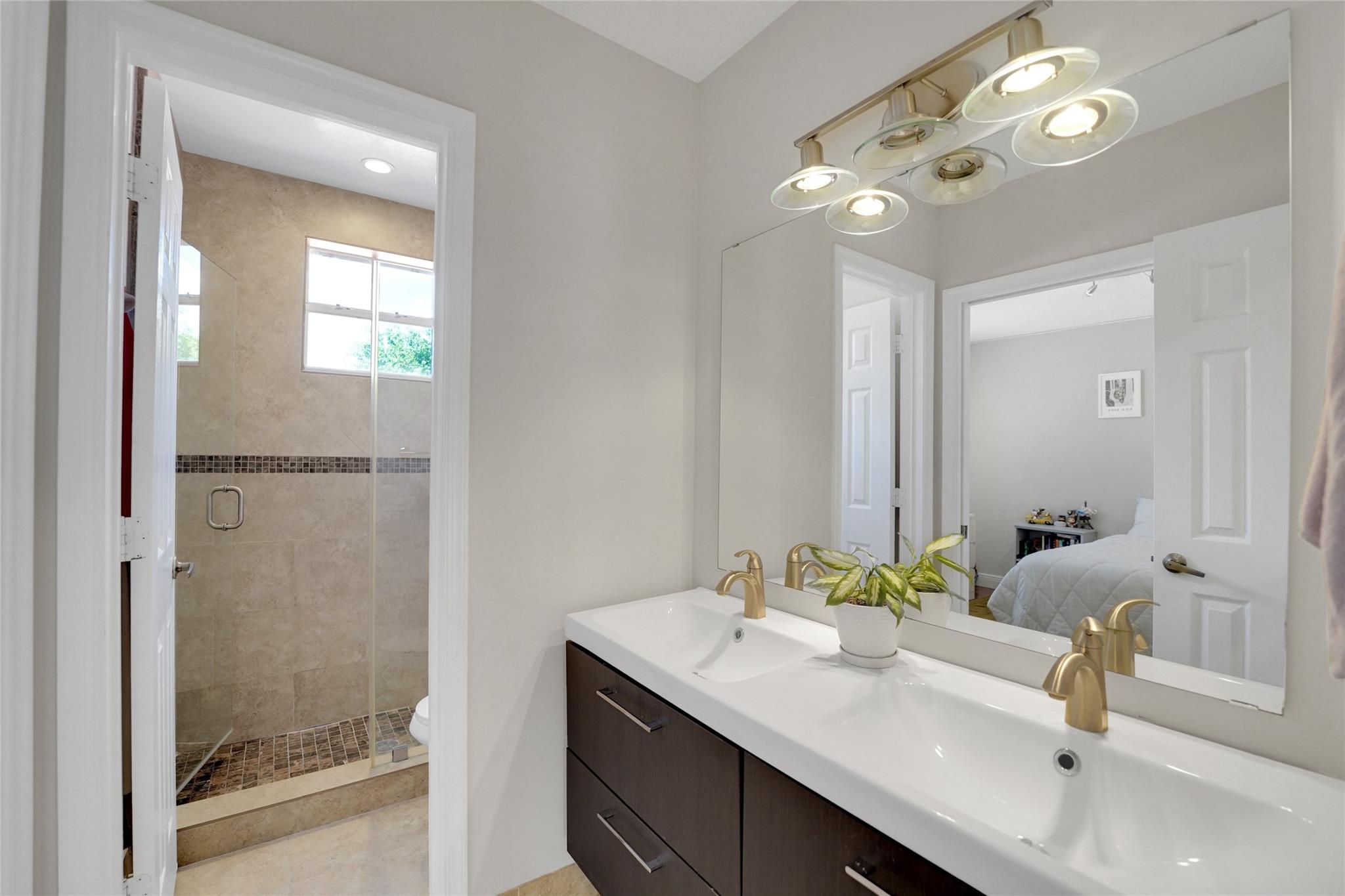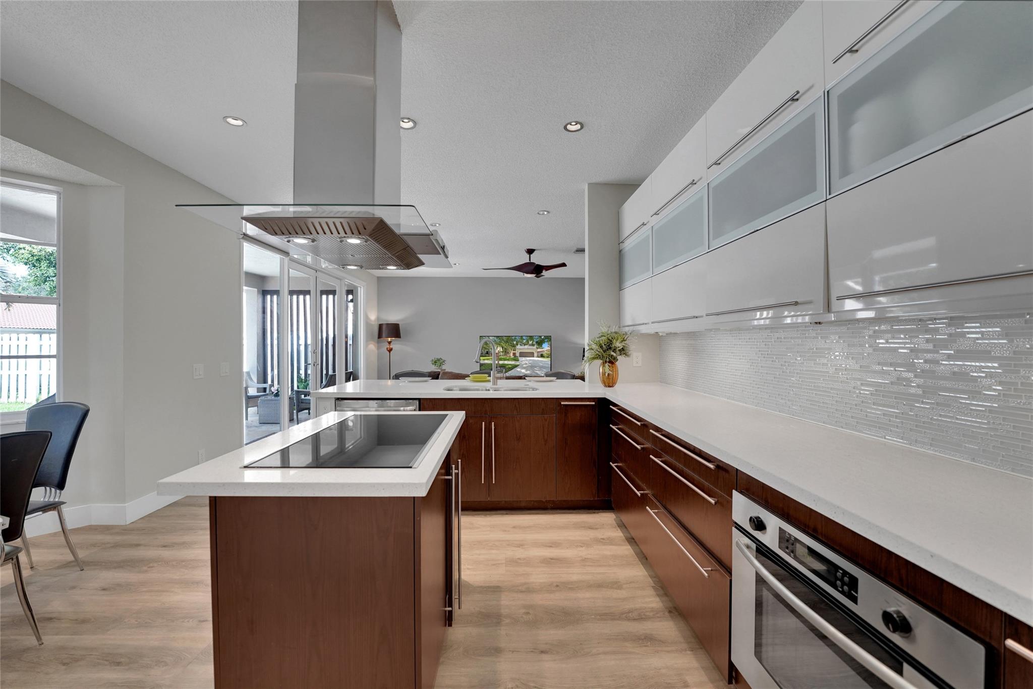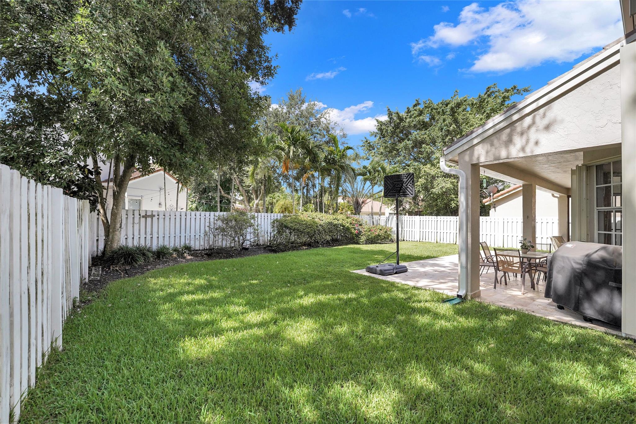 Welcome to a designed residence featuring a custom-designed kitchen with quartz countertops, a stove top island, a vented hood, and a refrigerated wine cellar. While a wood stairway with metal railings adds a touch of sophistication. Each bedroom has custom closets. Primary bedroom has a den, walk-in closets, and a beautifully remodeled bathroom. Recent updates include new vinyl wood flooring throughout the first floor, accordion shutters on accessible windows, and hurricane-proof glass on upper windows, ensuring both brightness and security. BRAND NEW ROOF installed in May 2023 provides peace of mind. This remarkable residence is located in a 24/7 guard-gated community with a pool and numerous amenities. Plus, it is surrounded by A+ rated schools. Don't miss out on this opportunity!