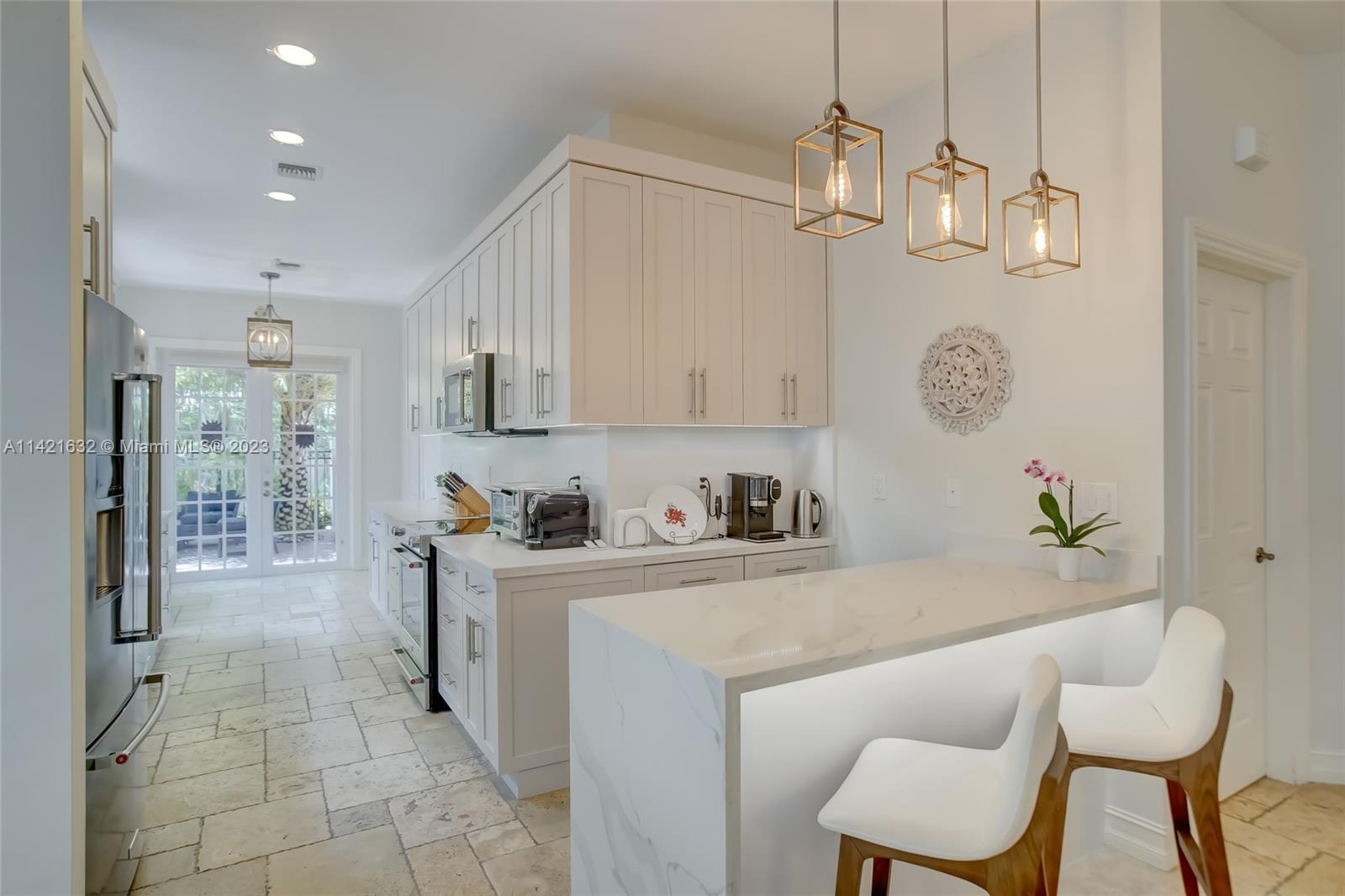 Welcome to your Modern Mediterranean 3/3.5 plus Loft, 2 Car End-Unit Townhome in the Heart of Coral Ridge! The 8' double glass doors invite you into the remodeled chefs kitchen w/quartz countertops, extra wide 35” refrigerator, 5 element convection range, wine cooler & ice maker. Freshly painted interior, remodeled half bath, new light fixtures, travertine flooring & crown moulding provide that luxury, turn-key ambience you’ve been looking for! Owner’s suite w/ dual walk-ins, french doors to private balcony, remodeled spa bath w/jacuzzi, & dual vanities. 2nd flr loft/office & utility room. 3rd flr rooftop showcases SE views for viewing the fireworks, airshow & ocean breezes while dining al fresco. Trex patio with fire table. A rated Bayview School. Minutes to beach, best dining & shopping.