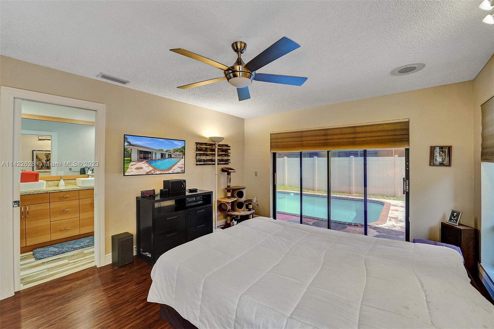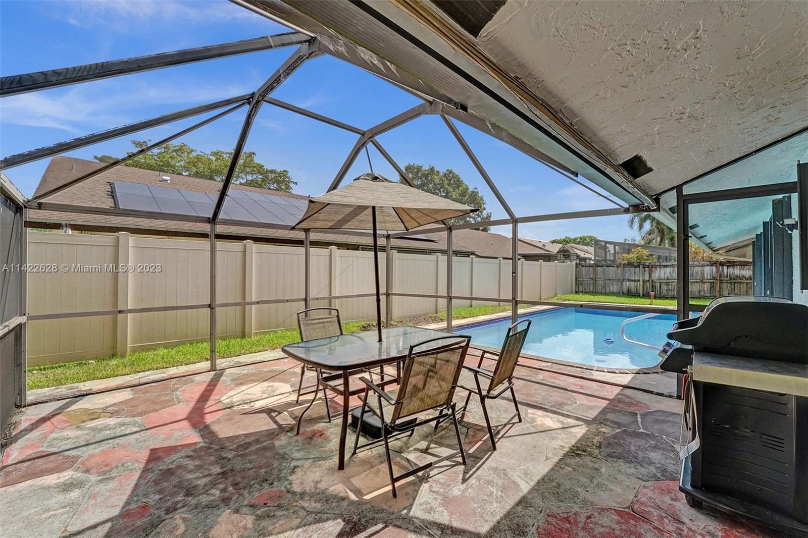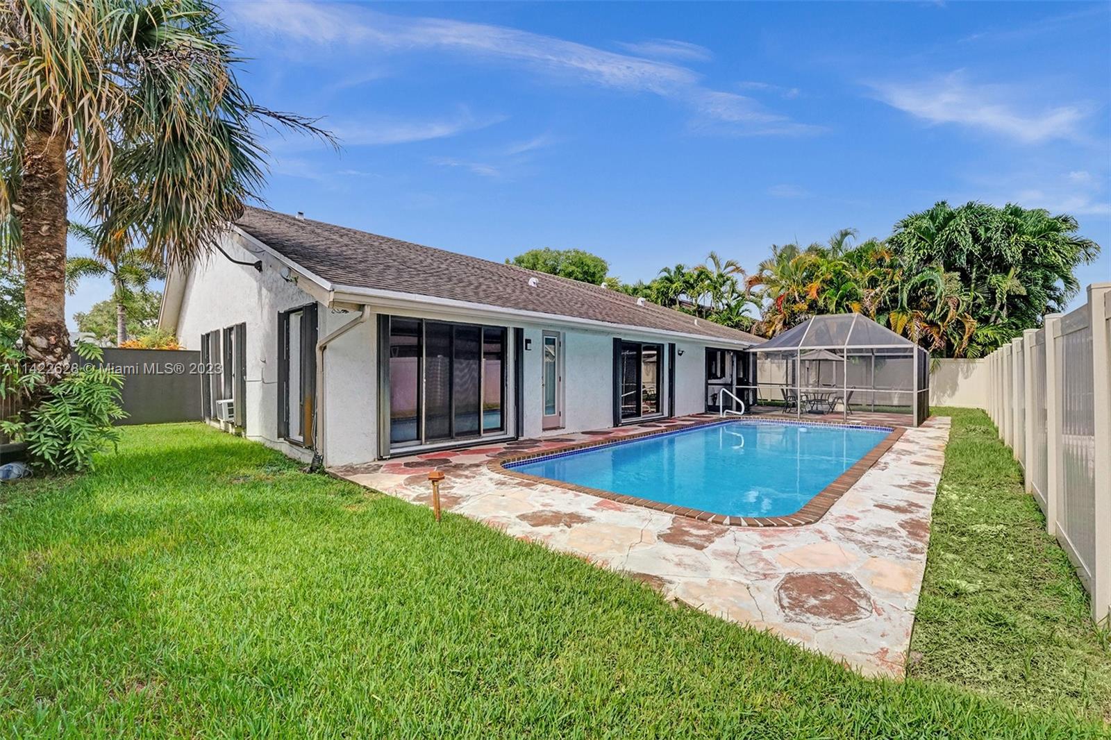 Stunning move-in ready!!!! Recently renovated pool home! This property boasts modern updates throughout, including a beautiful galley kitchen with quartzite countertops less than 1 year old, newer appliances. Pool was resurfaced in 2021. This property has endless features and upgrades such as California closets, modern spa inspired bathrooms, wide paved driveway, fence,My Q garage door opener for all your amazon deliveries, 3 year old air conditioner with a 7 year remaining warranty! This property has so much more to offer. Additionally, interior and exterior paint less than 5 years ago,and most of all no popcorn! This move-in ready gem won't last long! Trust me run don’t walk to this property first time on the market and priced to sell!!!! Easy to show call or text listing agent today!