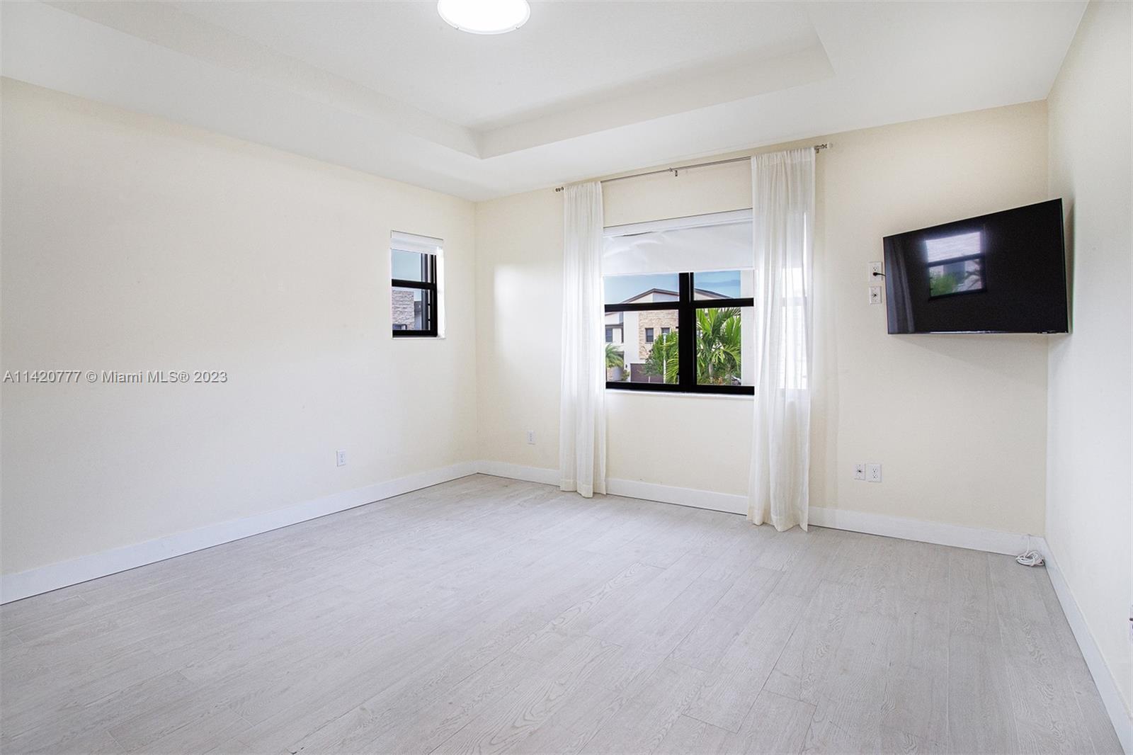 Beautiful corner lot, 3 bedroom , 2.5 bath, 2 story townhouse with ceramic floors in all rooms including stairs, covered outdoor patio with ceramic floors , large laundry room, also includes 3 wall mounted flat screen tv, one the most beautiful area in Doral, with an incredible clubhouse , pool, water park for kids, party room, gym, jacuzzi and more.