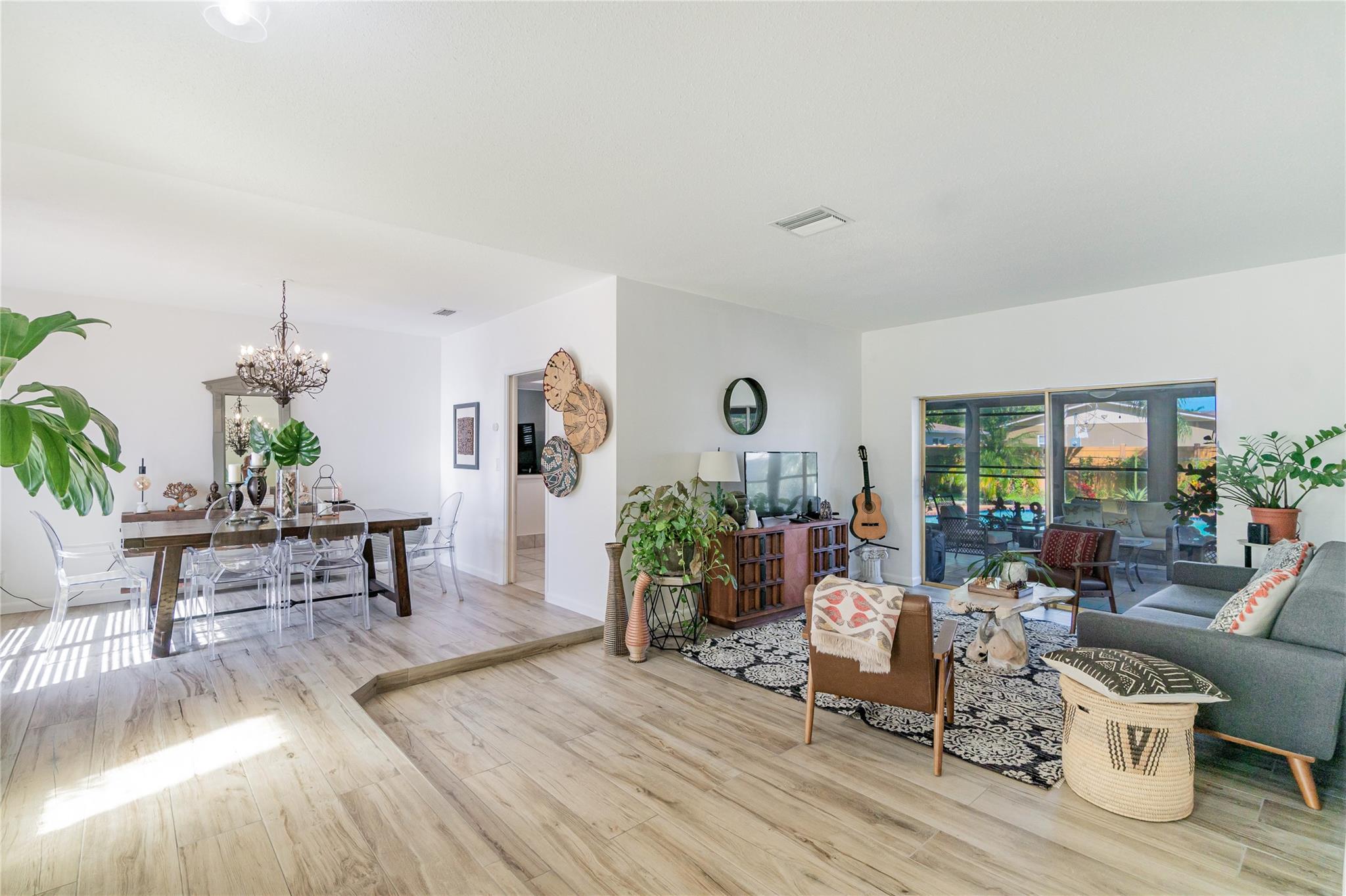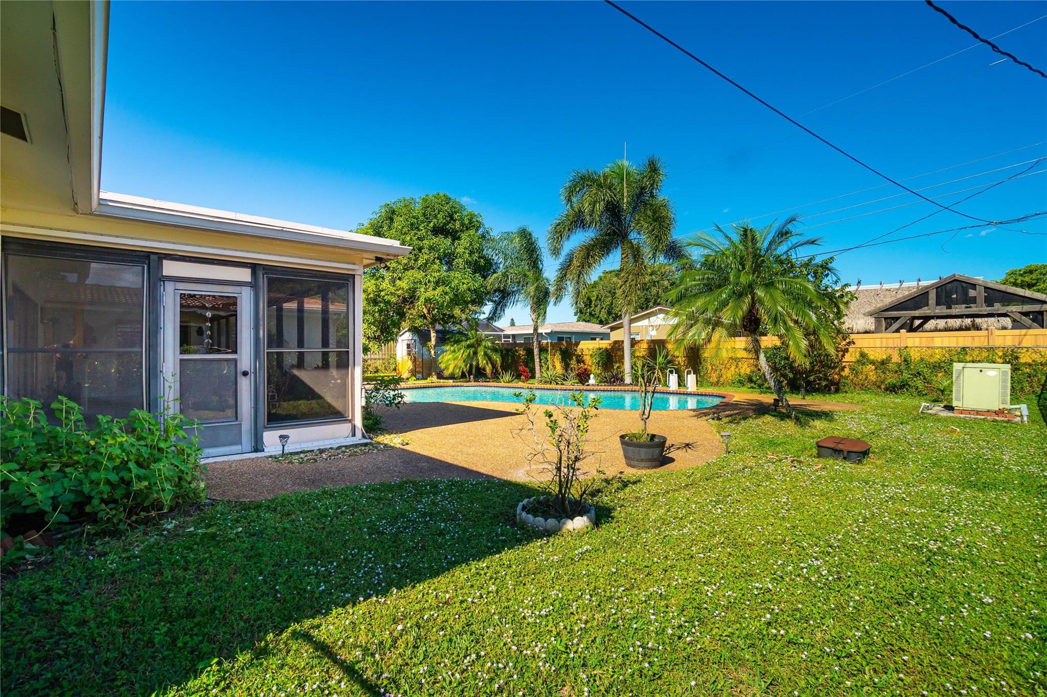 Welcome home to this fabulous 3 bedroom 2 bathroom pool front oasis in Plantation Park - one of the most sought-after neighborhoods in Broward County. This home features updated kitchen with quartz countertops, tile floors throughout, and pocket doors that open to a large patio right next to the pool. Updated bathrooms with large custom closets with lots of storage. Outside, there's a whole house generator (with underground propane tank) and security cameras around the perimeter. HVAC system replaced 2020 and roof 2019. Dining Room chandelier and washer/dryer do not convey with property. Hurry, this home will not last long!