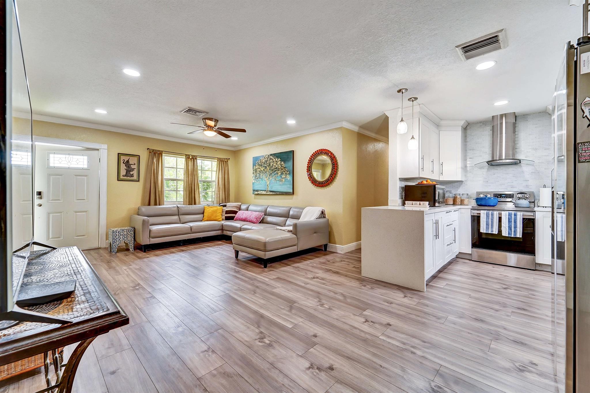 Incredibly affordable, 1-story, 4/2 home East FT Lauderdale NO HOA fees! UPDATED, NEWER ROOF, Awesome split bedroom layout for privacy. Beautifully updated kitchen, rainfall counter tops, stainless steel appliances, upgraded range hood, open concept great room, new flooring throughout the home, multifunctional primary bedroom with ensuite, can be leveraged for extra income$. 3 bedrooms, each w/ private closets on the East wing share 2nd upgraded full bath with window. Say bye-bye to laundromat! Dedicated laundry room with full size washer/ dryer, tankless water heater. Tropical fenced oasis is perfect for grilling & entertaining created by resident arborist w/various kinds of plants & trees. Everything we love about Old-Florida Charm Ready to Move In! Minutes from Beach, Downtown, Las Olas