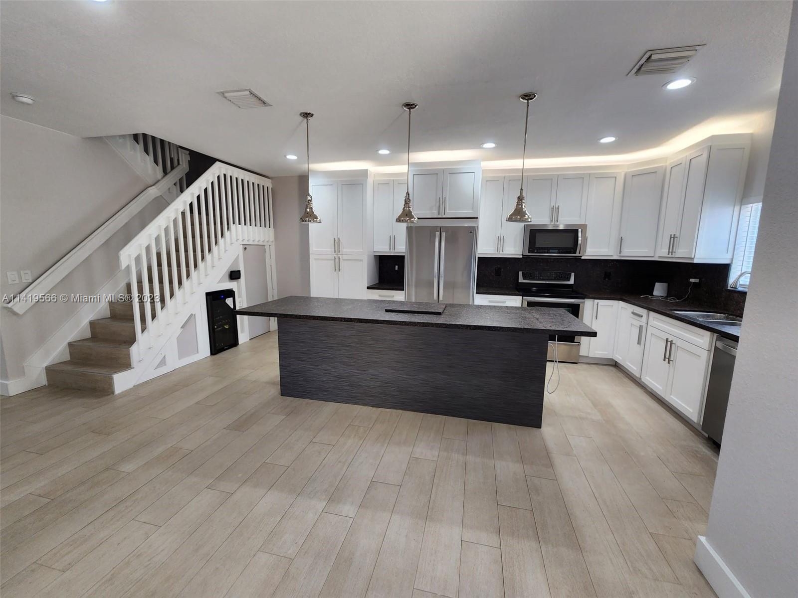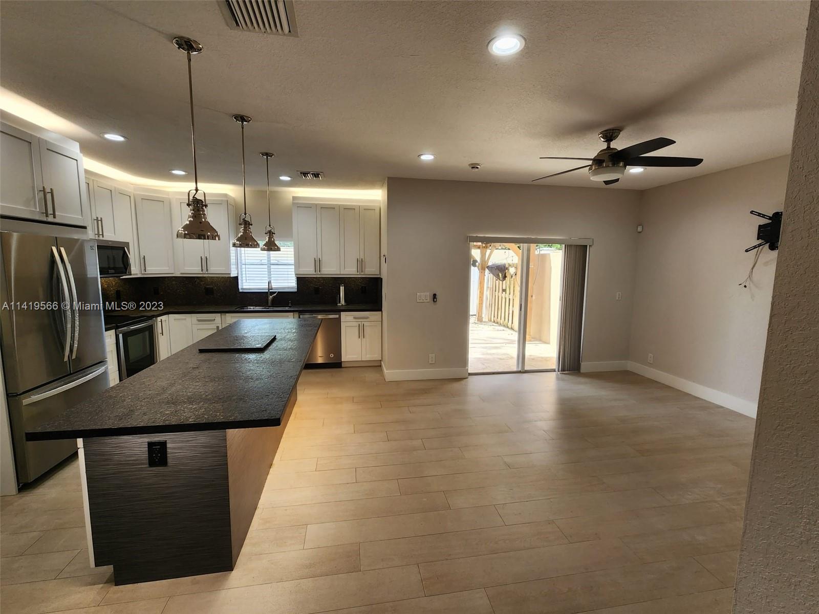Welcome to your dream home in Sunrise! This stunning, completely renovated 3-bed, 2.5-bath offers modern upgrades and an inviting open concept. This home has an open floor layout with lots of cabinet space, remodeled baths, and a 1 car garage along with the most amazing, paved, and fenced backyard. You will find SS appliances, a wine fridge, rain showers, a luxurious towel warmer as well as modern closets and many exquisite finishes. The Italian porcelain floor on the first floor and vinyl flooring in the bedrooms adds a splendid touch. Comes equipped with ADT alarm system. Low HOA Fee. Located in the Entrada at Sunrise community, this home is a must-see! The location is amazing. Less than 2 miles away from major highways, the famous Sawgrass Mills Mall, and the well-known Welleby Park.