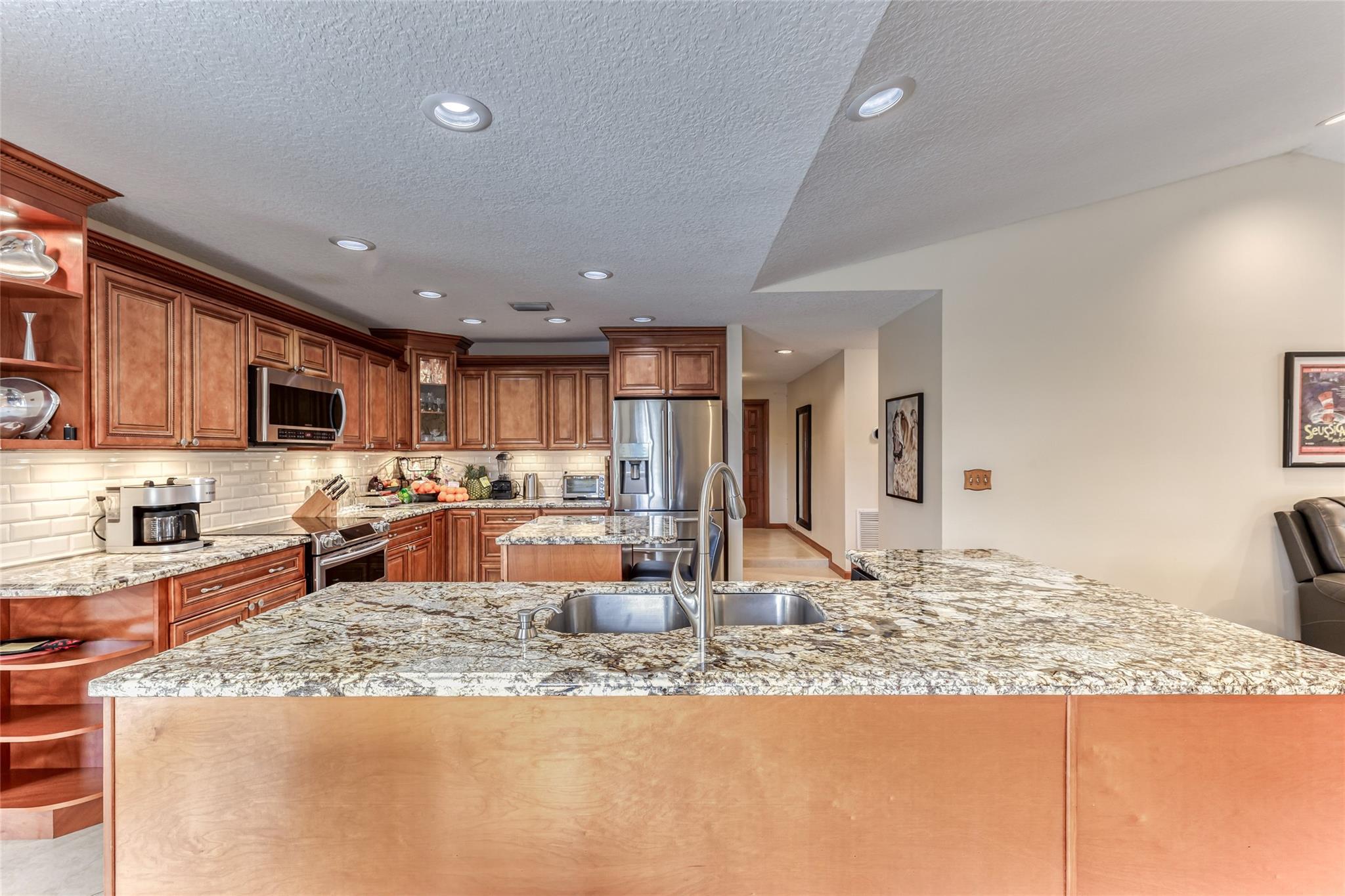 • Característica Interior:BedroomonMainLevel, BreakfastArea, DiningArea, SeparateFormalDiningRoom, DualSinks, Fireplace, JettedTub, KitchenIsland, MainLevelMaster, SplitBedrooms, Skylights, SeparateShower, VaultedCeilings