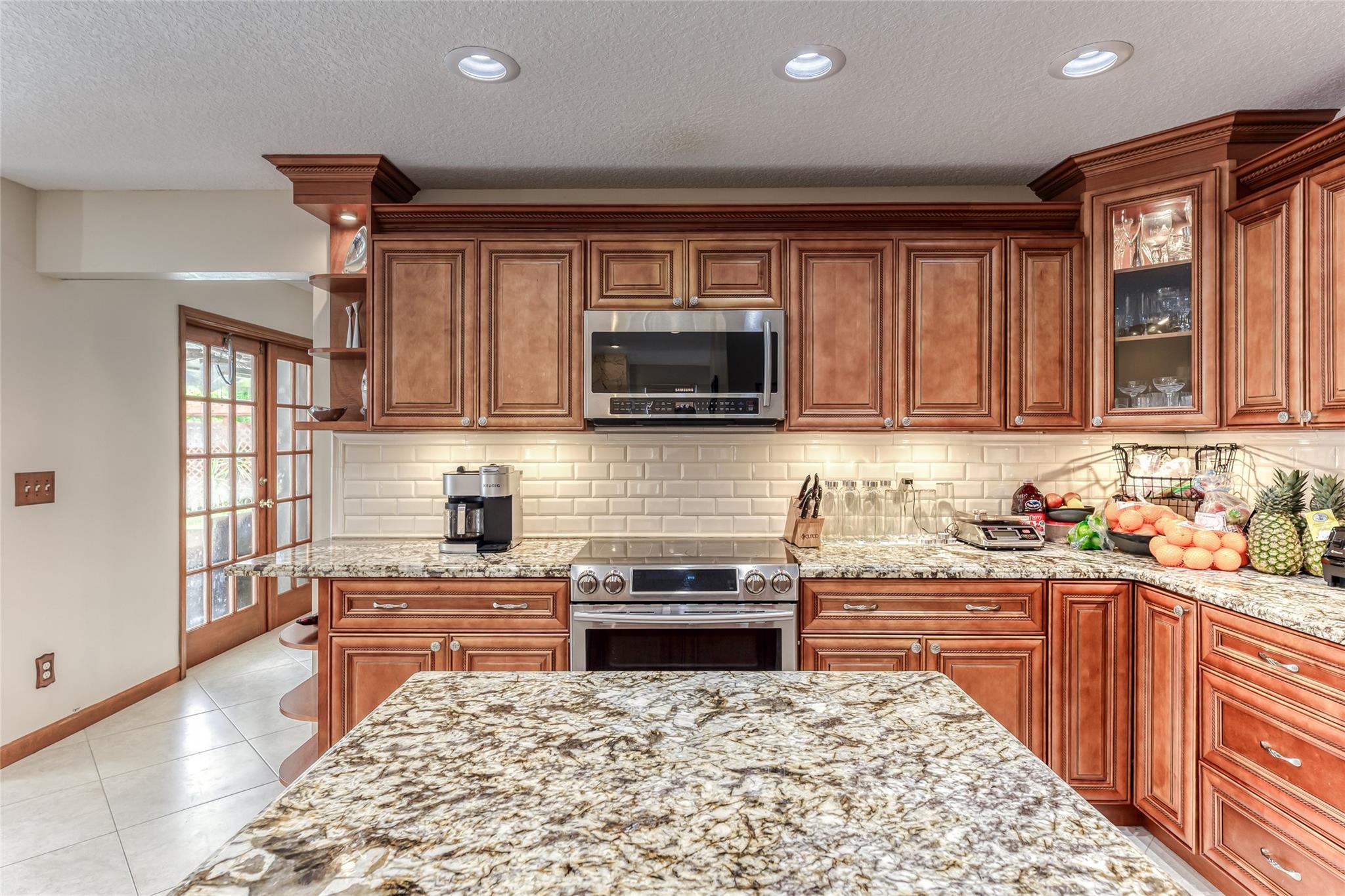 Enjoy Incredible Sunsets and Serene Lake Views from your new home in Plantation! Located in a desirable neighborhood, this Spacious home boasts 4 Bedrooms, 2.5 Baths, and a 2 Car Garage. Wood Laminate in Bedrooms, Ceramic Tile in main areas, w/Carpet in formal living room. Beautiful, Updated Kitchen w/ Wood Cabinets, Granite Countertops & SS Appliances. Breakfast Area off the Kitchen, Formal Dining Room & Living Room, Family Room w/ Fireplace and Vaulted Ceilings complete the package. Outdoor Covered Patio, with wet bar & cooktop, Pool & Spill in Spa w/ Relaxing Water Views make this home perfect for entertaining Friends & Family. Roof is Original and Leak Free, however, quotes for replacement at Buyer’s responsibility have been obtained.