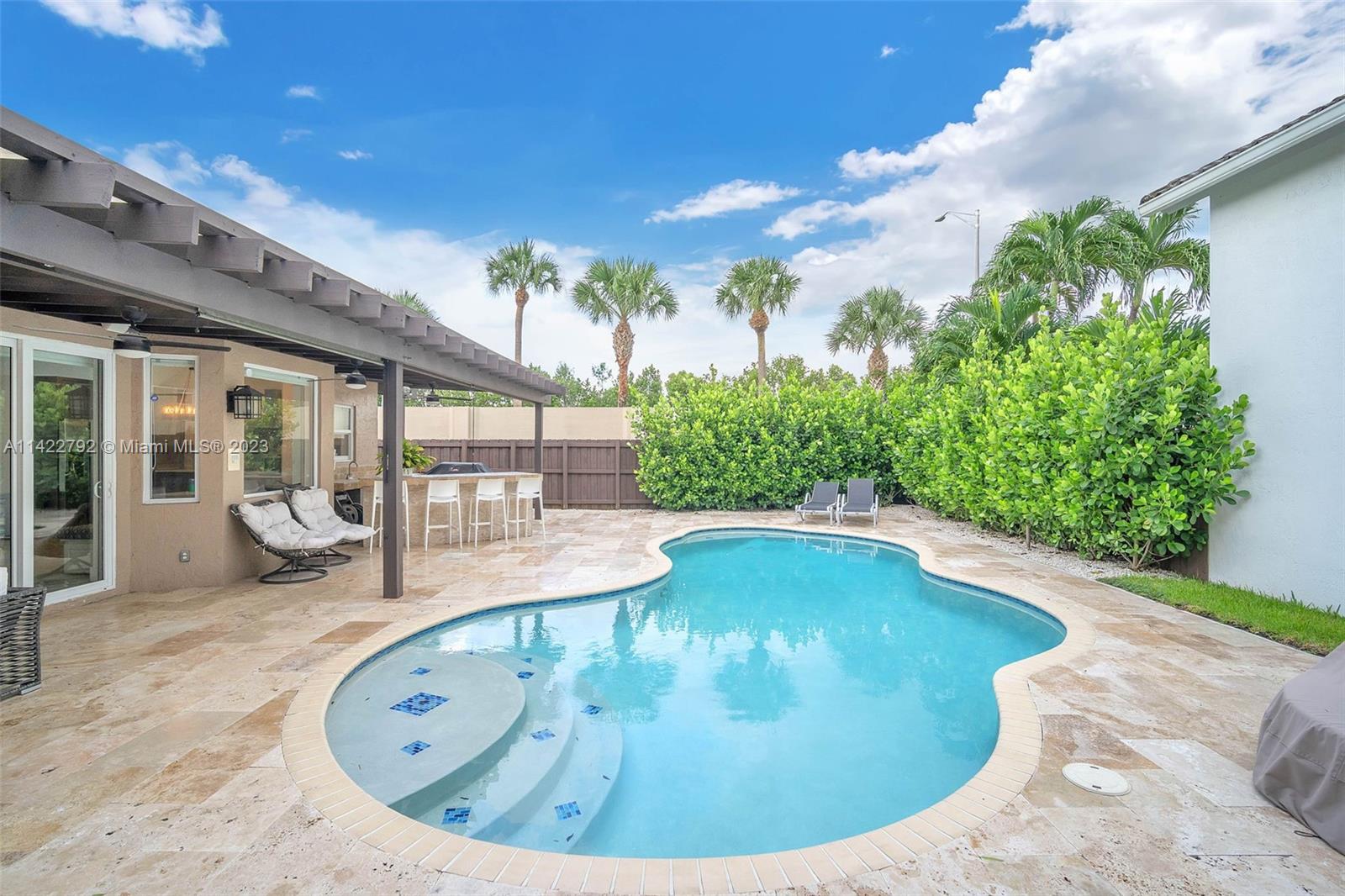 **Priced below appraised value** This tastefully updated, one story pool home in the desirable Doral Isles is a must see! Perfectly nestled at the end of the street with no front facing neighbors, it is also conveniently situated between 2 sets of additional parking and boasts an extra-long driveway. No expenses were spared as flooring, kitchen, bathrooms, light fixtures and more have been upgraded along with all impact windows throughout. The backyard is fully fenced, and your own private oasis awaits with pool and outdoor kitchen/bar area. This resort style community offers a long list of amenities including a clubhouse with onsite restaurant, 2 pools, gym, tennis, basketball courts, baseball field, soccer, volleyball, sandy beach like sunbathing area, so much more!