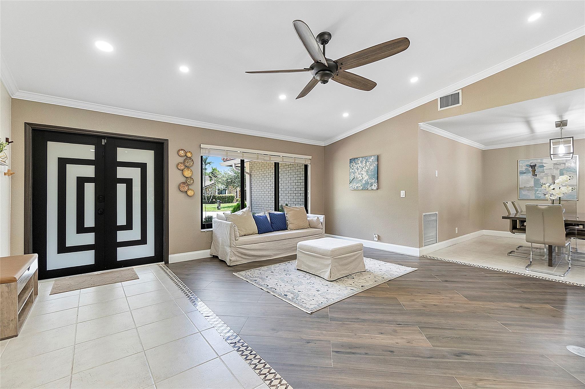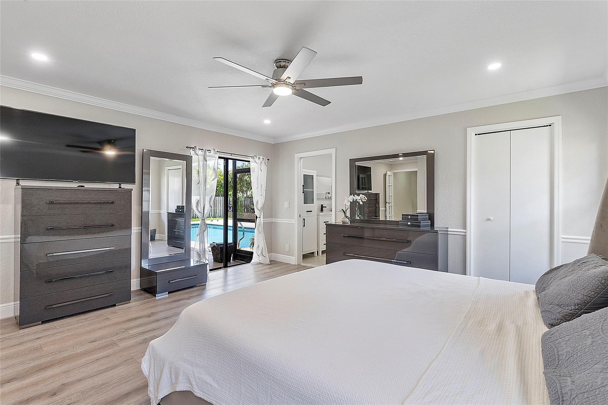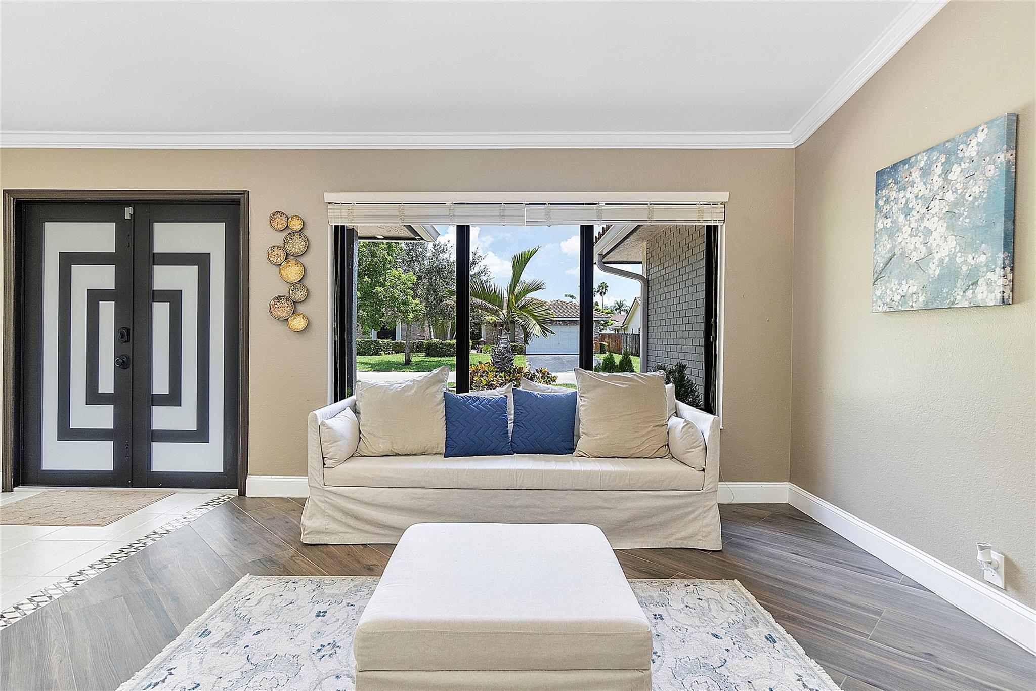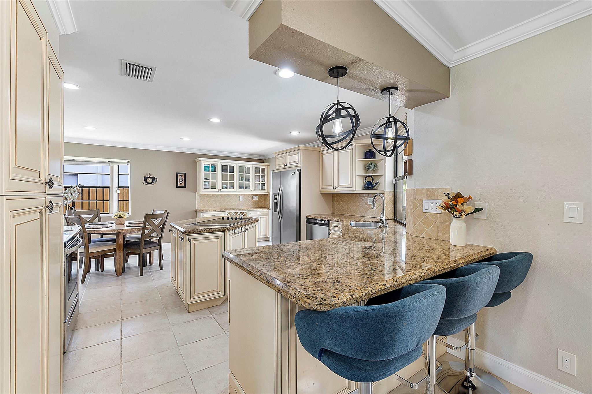 This remarkable 4 bedroom, 3 full bathroom oasis is in the Cypress Glen neighborhood of Coral Springs. No HOA! Enjoy outdoor lighting, resort style pool for entertaining any guests. Along with custom impact French doors, impact windows in the front and panel coverings for the back. Vaulted ceilings and recessing lighting for any mood desired. Custom cabinetry, center island with granite countertops, stainless steel appliances with oven and a built in wine cellar to inspire your inner chef. Crown molding all around, luxurious primary bedroom leading to the resort style bathroom. Secondary bathrooms are updated! Laundry room with a full size washer and dryer with deep sink, tankless water heater, impact garage door and cutting edge inverter AC. Come make this exceptional home yours!