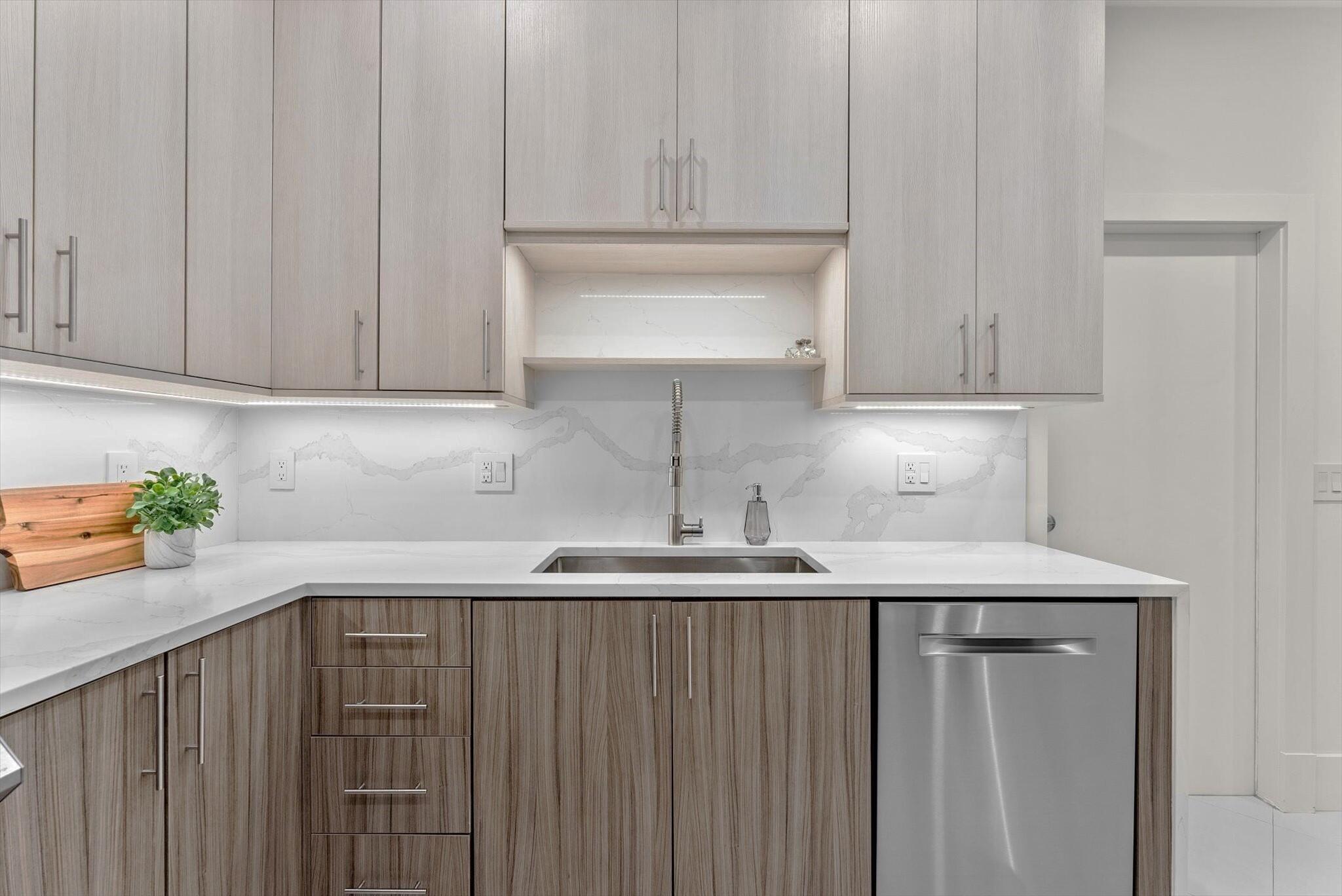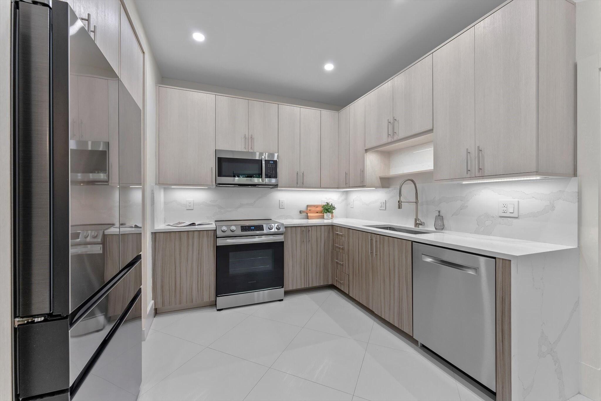 Located in East Boca, tucked away on a private cul-de-sac, this beautifully remodeled end unit townhome is a must see. Step inside to this bright, open floorplan with vaulted ceilings, flush LED lighting and top of the line finishes throughout. Offering 3 bedrooms, 2.5 bathrooms, 2 car garage and an oversized, private enclosed patio overlooking lush landscaping. All impact windows and doors, hurricane proof garage door. The kitchen includes new SS appliances, quartz countertops, waterfall, backsplash and under cabinet lighting. Enter the spacious primary suite (first floor) and primary bathroom which includes a custom walk-in closet, walk-in shower and double vanity with quartz top.