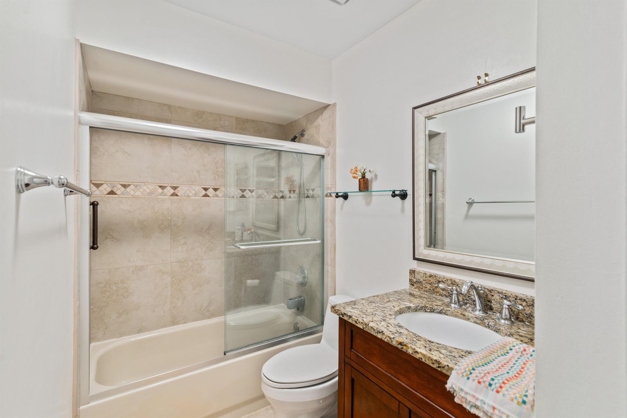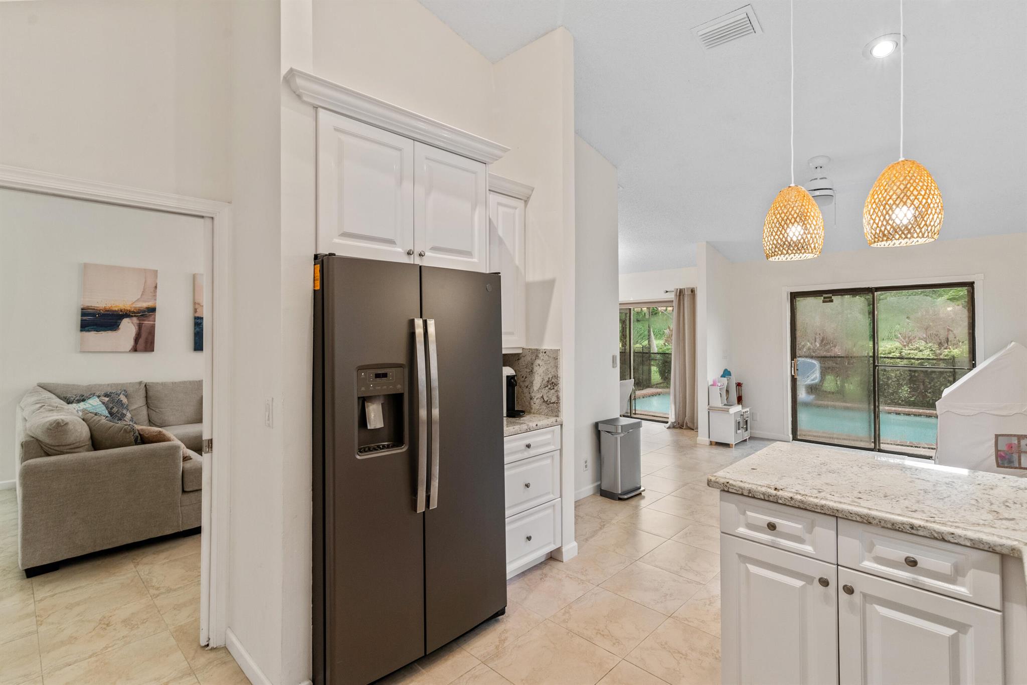Beautiful updated 3 bed, 2 bath, 1,750 living sqft home, gorgeous granite countertops. pristine white kitchen cabinets w/ pullouts. high-end stainless-steel appliances, large porcelain tile floors, washer/dryer inside, 2009 roof, 2021 AC & water heater, full impact/hurricane protection, large master with plenty of closet space, custom window treatments, 2 car garage, screened-in pool & covered patio, walking path onto Del Prado Cir. The friendly neighborhood of Villa Nova has very low HOA fees & a tennis court. This home is conveniently located near everything making it a highly desirable location. 3 grocery stores (Winn-Dixie/The Grove Kosher Market/Publix), places of worship, the Boca Raton Town Center Mall, the Little Free Library of Del Prado Circle, parks, schools, highways, & the