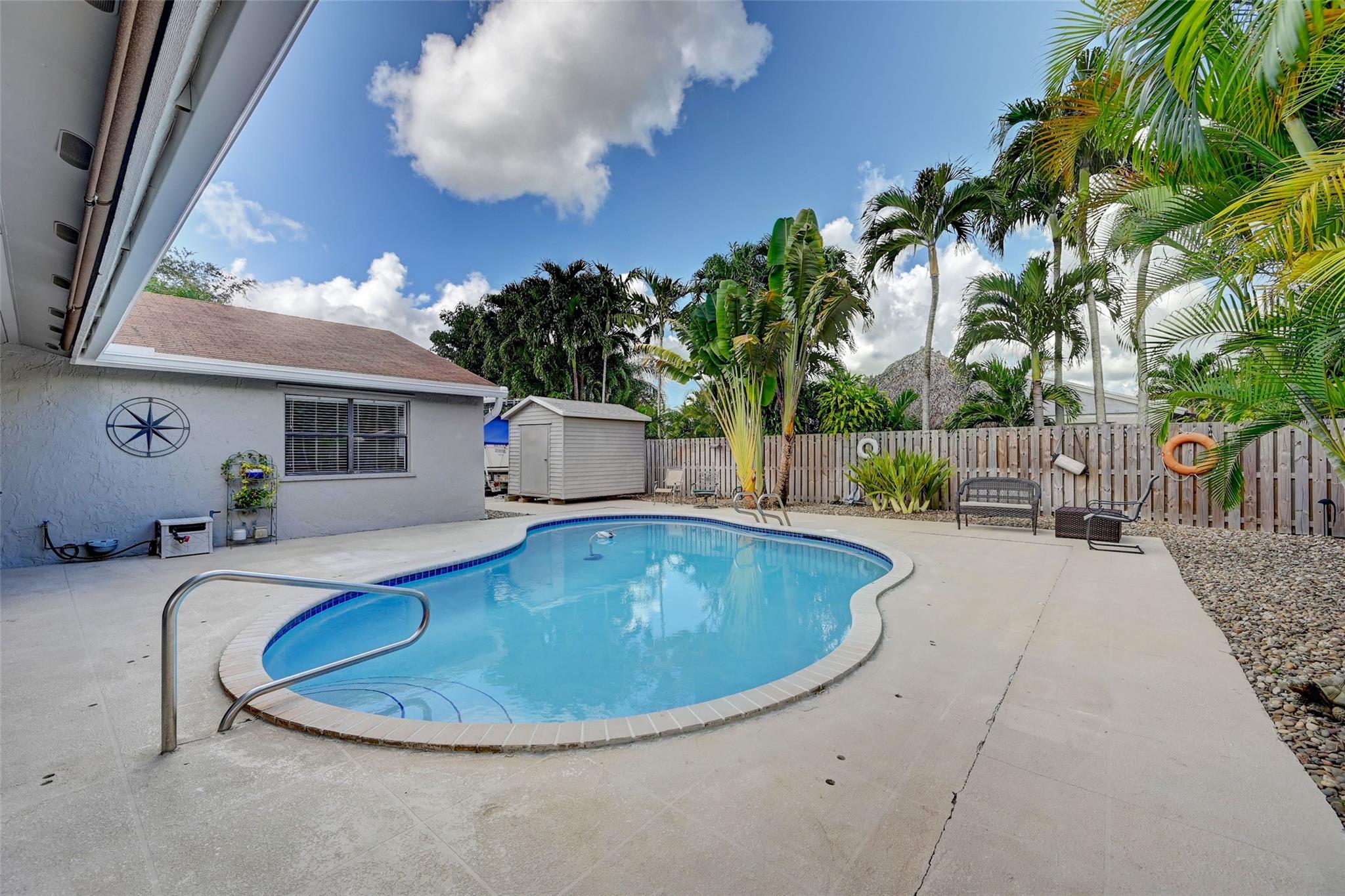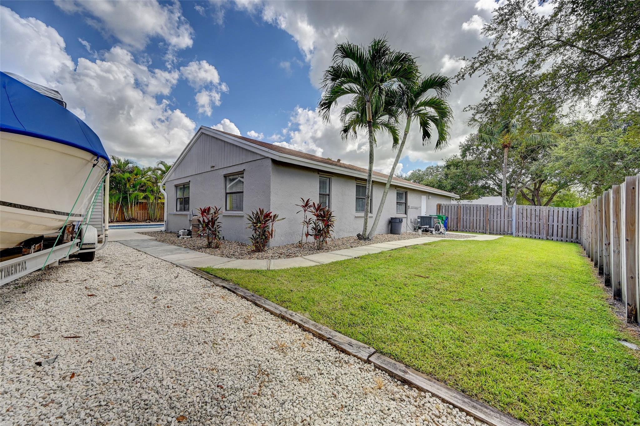 Spacious 4-bedroom 2 bath, 2 car garage pool home on large corner lot in desirable Cooper City. The kitchen boasts Quartz counter tops, white shaker cabinets, and stainless-steel appliances. Larger master bedroom with a custom closet and bath. Laminate wood flooring throughout the house. Resurfaced pool, multicolor LED light, new pump, newer privacy fence. Backyard has two separate and secured areas for boat/trailer/camper parking with gates. Shed included. New irrigation pump. Backyard is tropical & secluded, perfect for entertaining. Move-in condition.