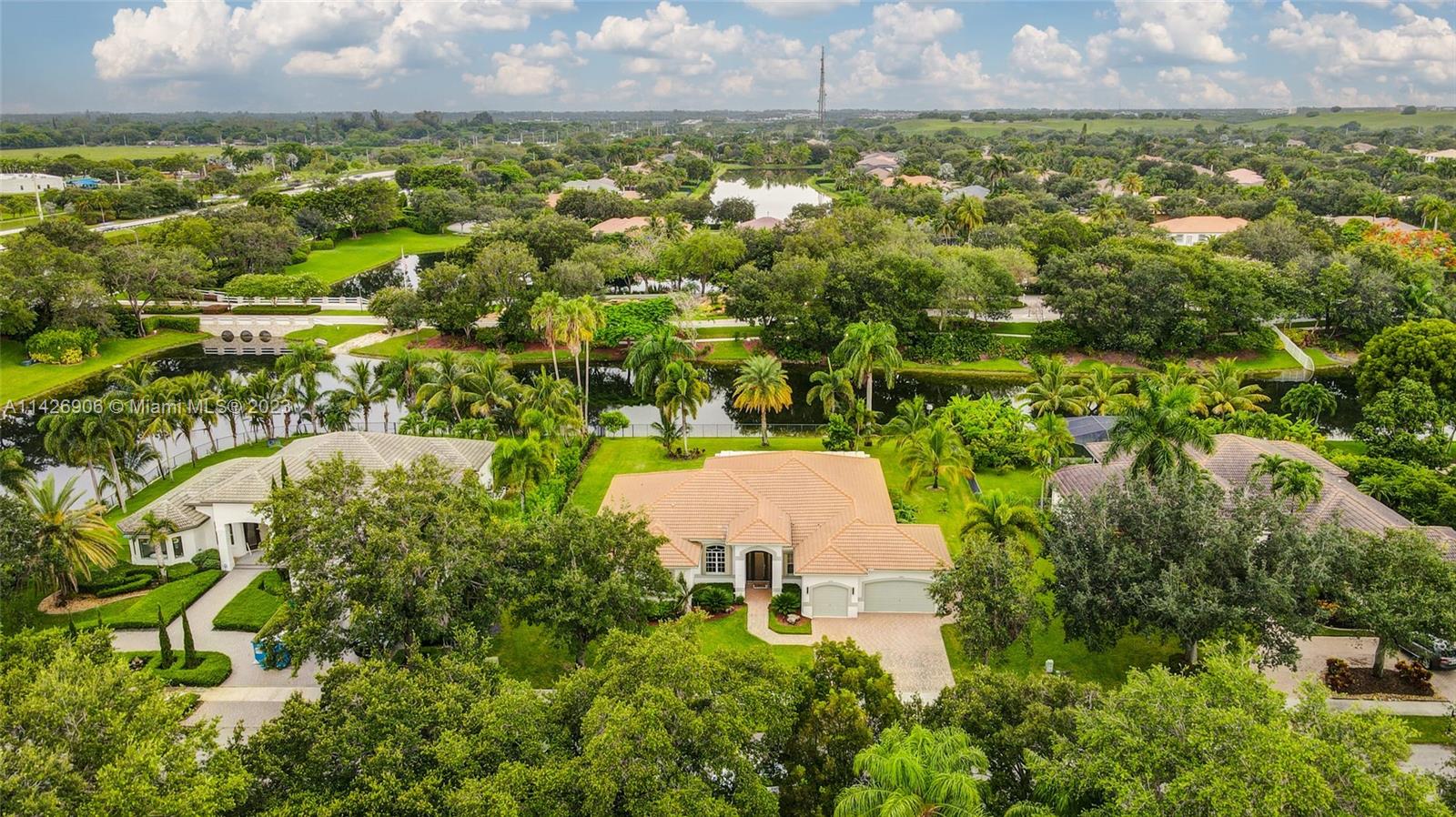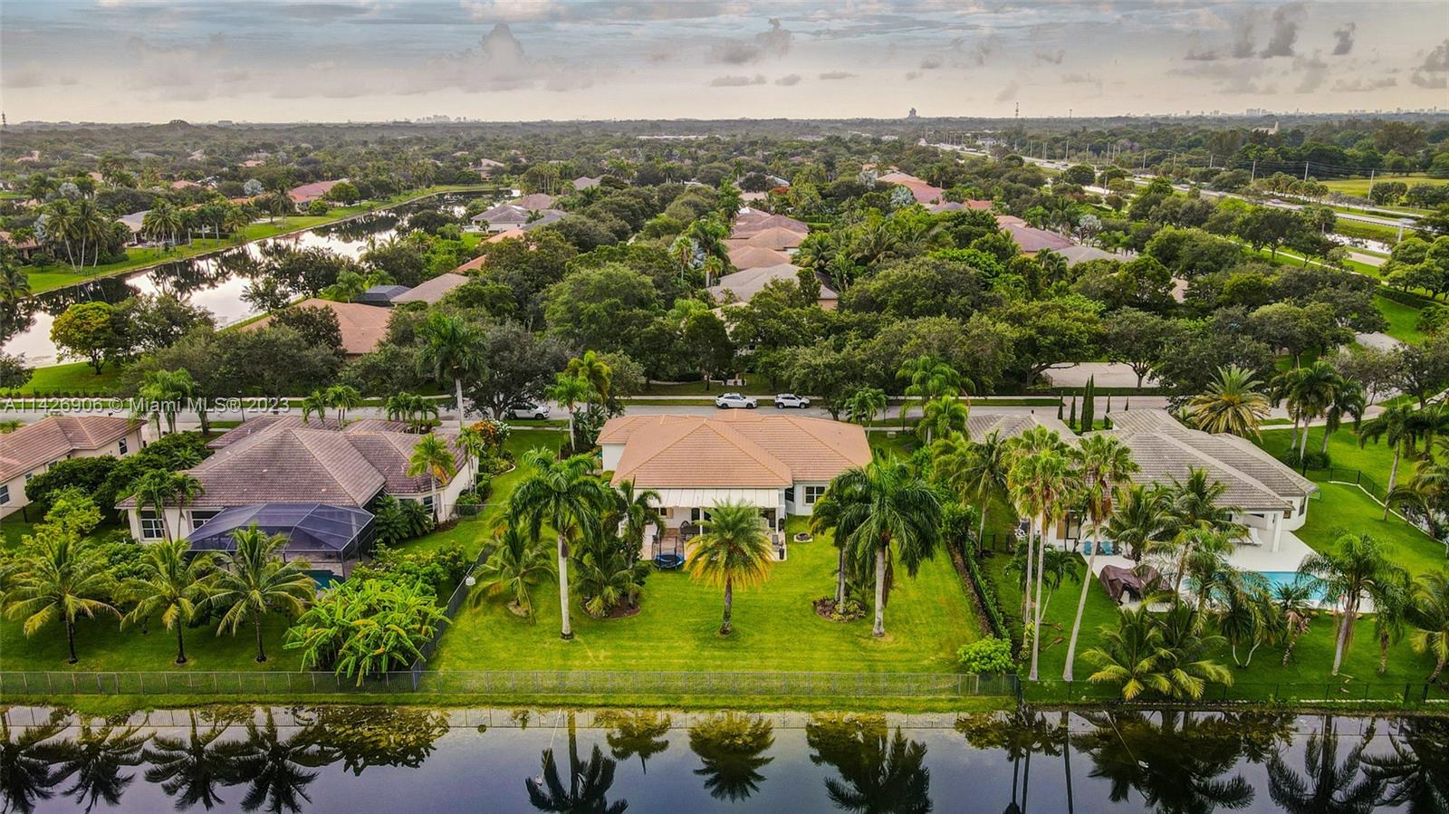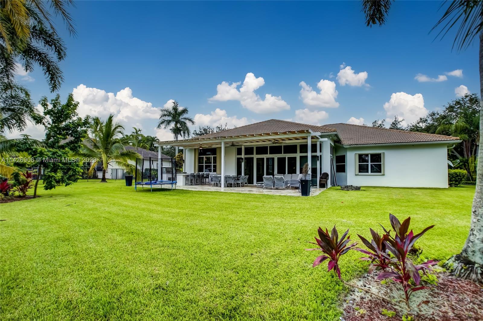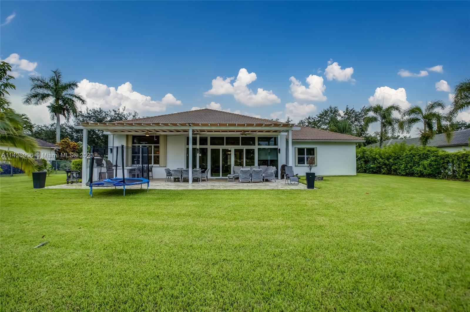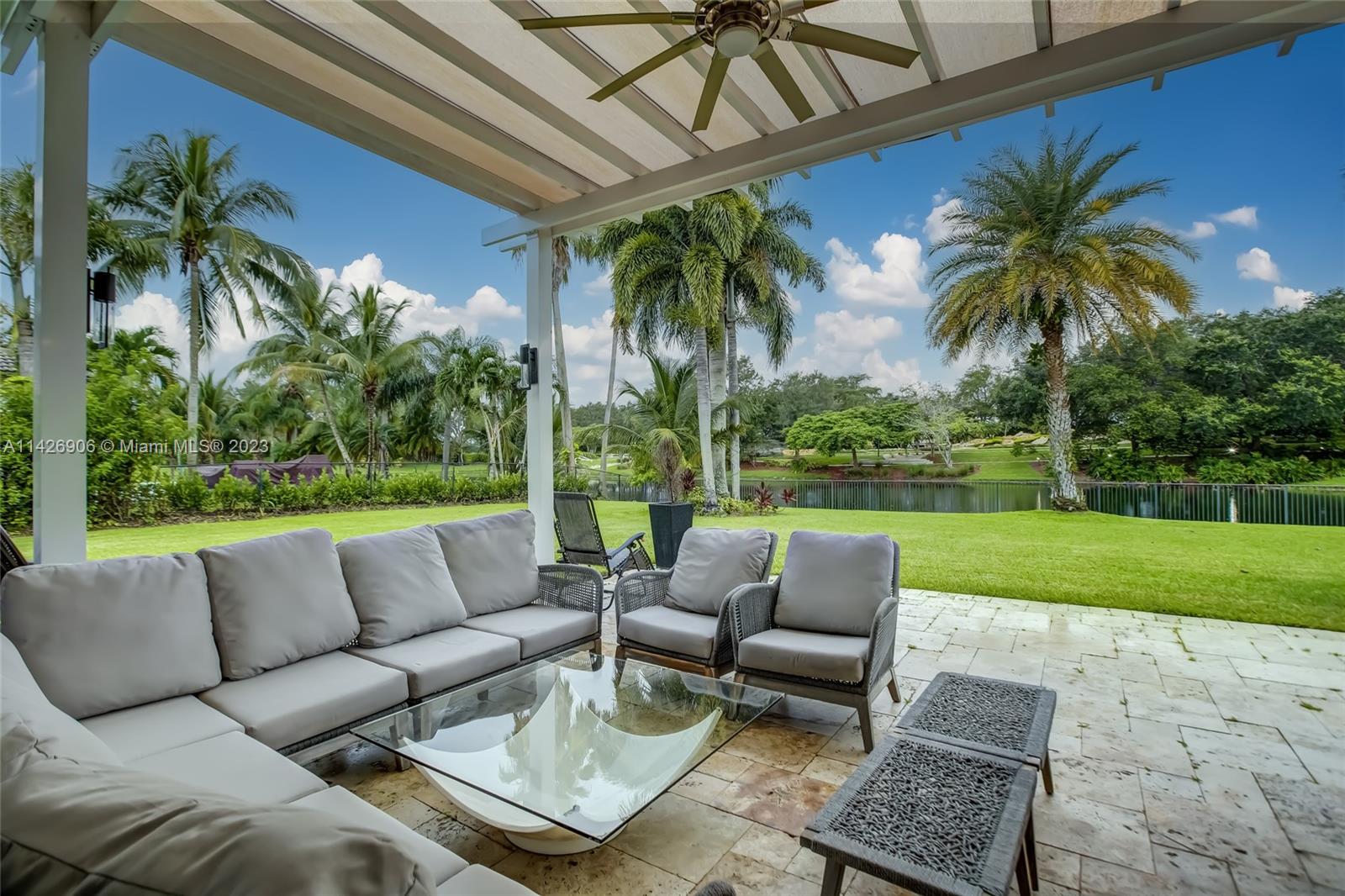JUST REDUCED TO SELL!! VERY MOTIVATED SELLER, THIS SPECTACULAR! 1 STORY HOME at The Exclusive IMAGINATION FARMS Guard GATED Community, this AMAZING High Ceiling Waterfront 4 Bed, 3 full baths, Updated Kitchen with Stone & Quarz Counter Top, Premium Brands Appliances with a Steamer Oven, Custom Wine Cellar with Cooling System, Icemaker & Wet Bar, UNIQUE A/C enclosed Patio with IMPACT GLASS & IMPACT Sliding Doors, ALSO IMPACT MAIN DOOR ENTRANCE 3 Car Garage with a/c, outdoor Cover Terrace with a Full Kitchen, Pizza Oven & Premium appliances, the Single Garage is set up as a Gym, Gym equipment included, Furniture & decorations & Art Pictures, except for Master Bedroom bed with 2 night stands, 1 Art Picture & part of Wine & Spirits inventory), accordion shutters throughout, LOW HOA.