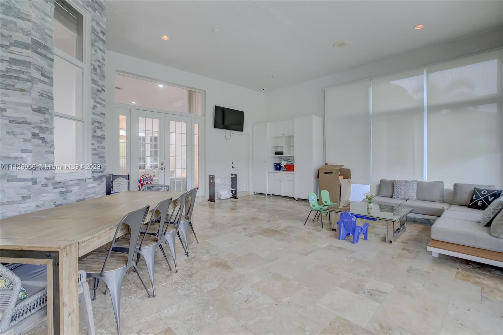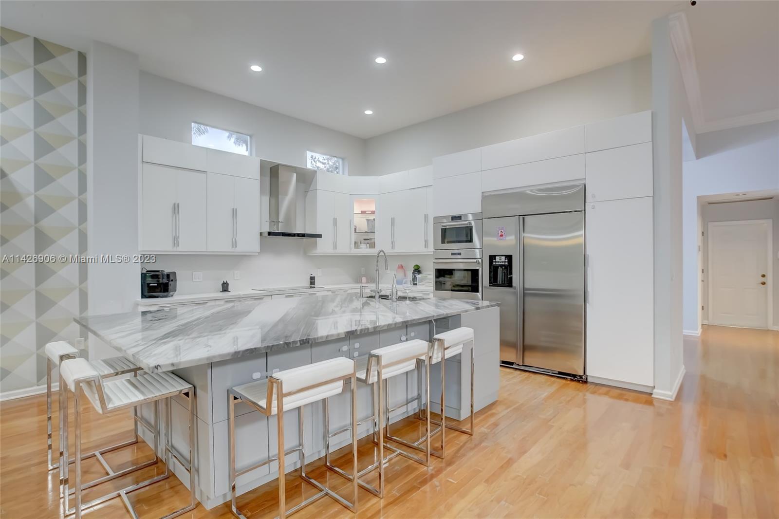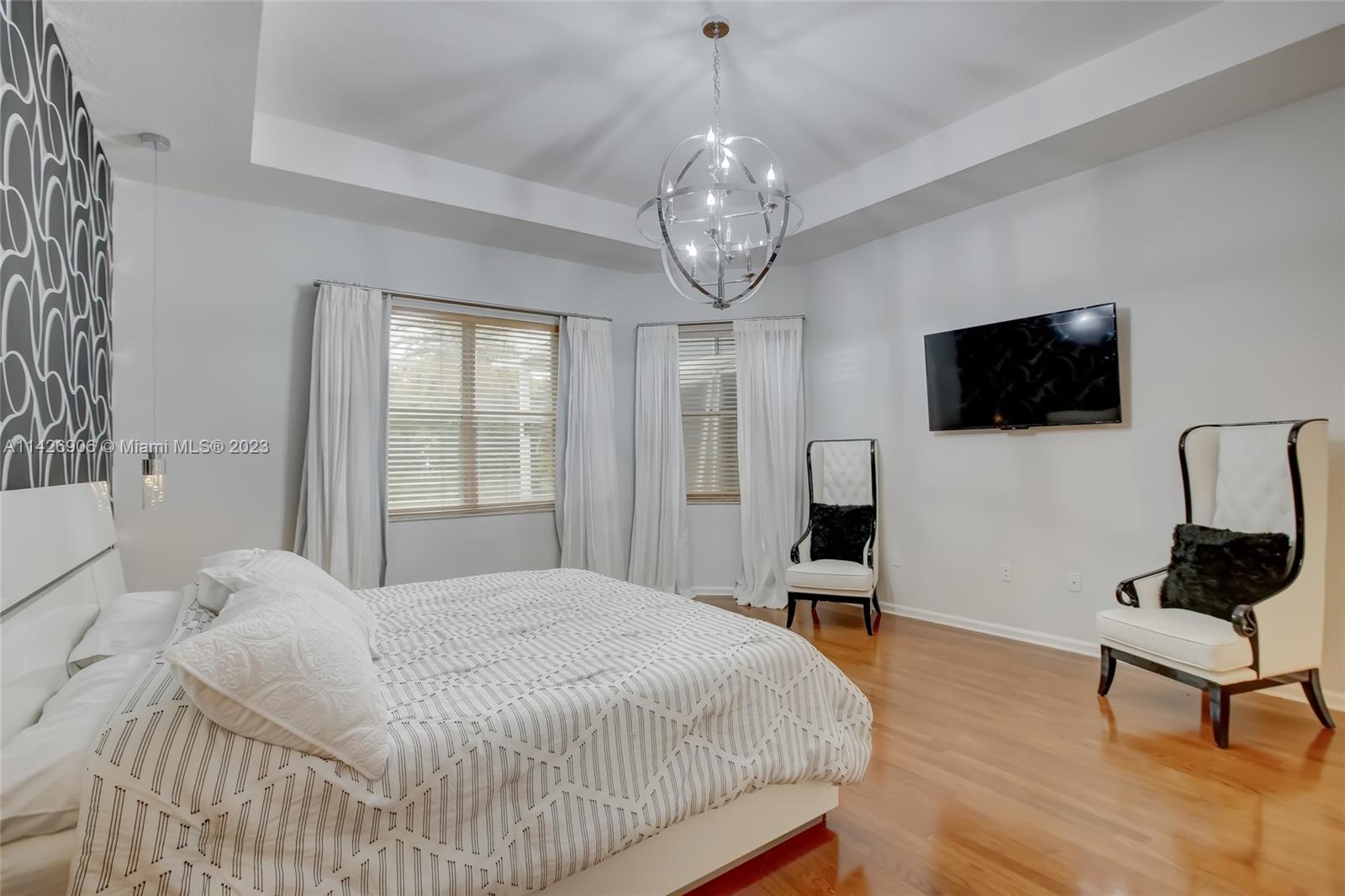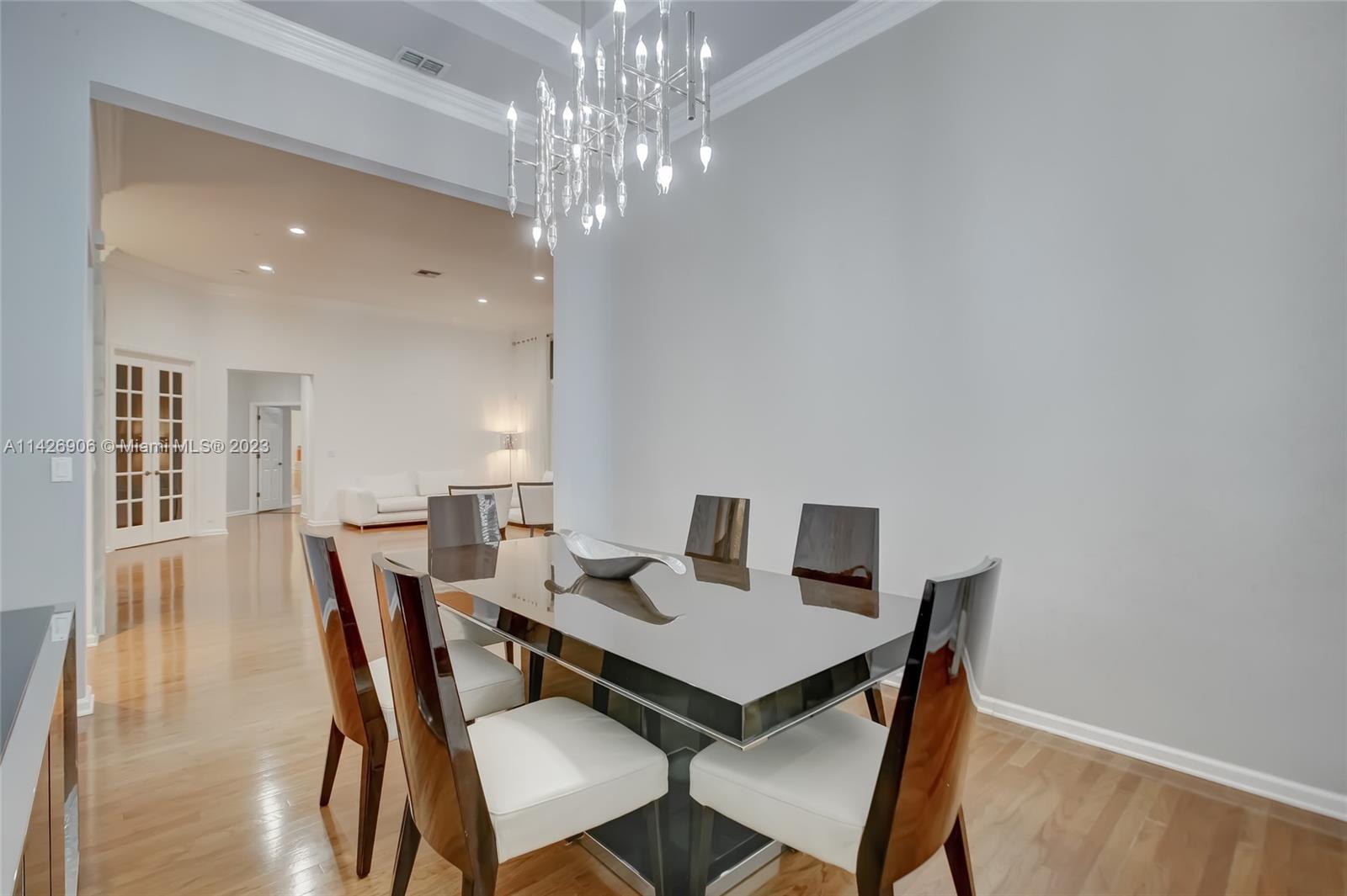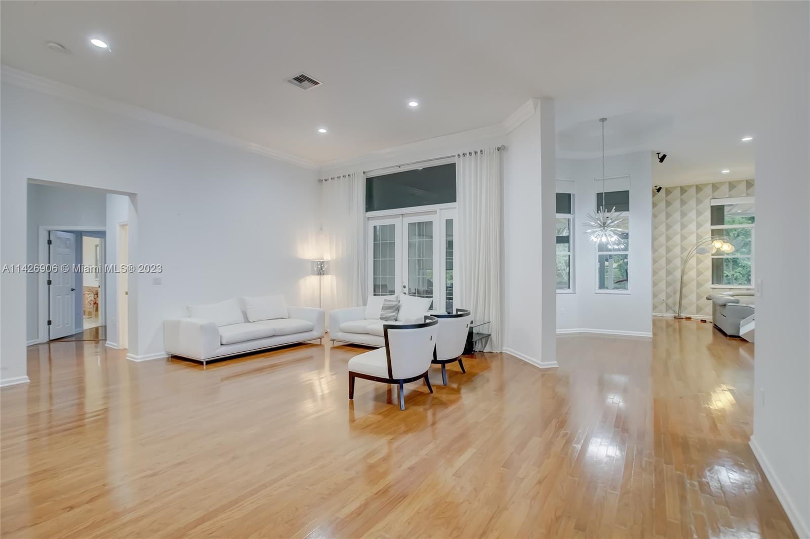 JUST REDUCED TO SELL!! VERY MOTIVATED SELLER, THIS SPECTACULAR! 1 STORY HOME at The Exclusive IMAGINATION FARMS Guard GATED Community, this AMAZING High Ceiling Waterfront 4 Bed, 3 full baths, Updated Kitchen with Stone & Quarz Counter Top, Premium Brands Appliances with a Steamer Oven, Custom Wine Cellar with Cooling System, Icemaker & Wet Bar, UNIQUE A/C enclosed Patio with IMPACT GLASS & IMPACT Sliding Doors, ALSO IMPACT MAIN DOOR ENTRANCE 3 Car Garage with a/c, outdoor Cover Terrace with a Full Kitchen, Pizza Oven & Premium appliances, the Single Garage is set up as a Gym, Gym equipment included, Furniture & decorations & Art Pictures, except for Master Bedroom bed with 2 night stands, 1 Art Picture & part of Wine & Spirits inventory), accordion shutters throughout, LOW HOA.
