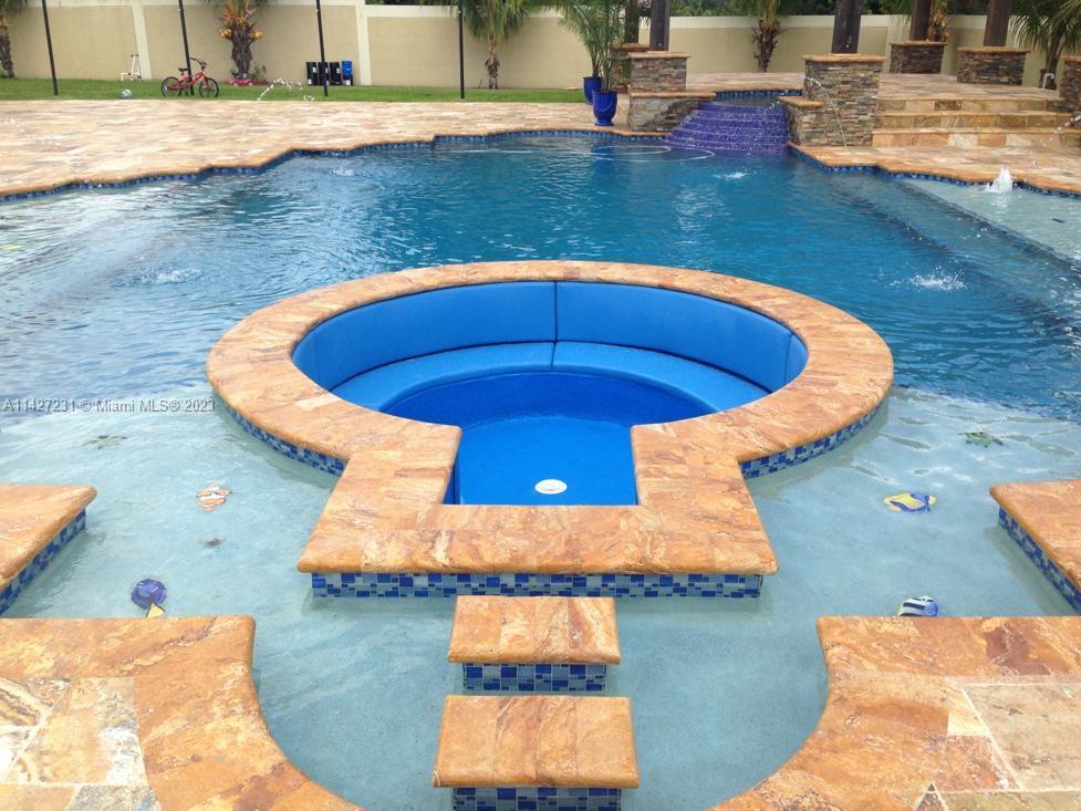 Welcome to this beautiful 7 bedroom custom built home with no expense spared, 12 Foot to 14 Ft High Ceilings throughout entire home, custom pool with waterfall and gazebo, 2 car garage, fireplace, 40k generator, sauna, large covered terrace, 1 acre lot with canal in the back, 500 sq. ft. game room, custom BBQ terrace, basketball court, batting cage, custom fence with electric door opener around the entire home, epoxy floors in the garage, centrally located in The Miramar Ranches, granite countertops, marble floors, security cameras, master bedroom is masterpiece with projector, so many details to mention, take a look at this beauty, LOCATION LOCATION, minutes from I75, shopping, 2 Publix, Pembroke Gardens Mall, Gym, Miramar Hospital within minutes