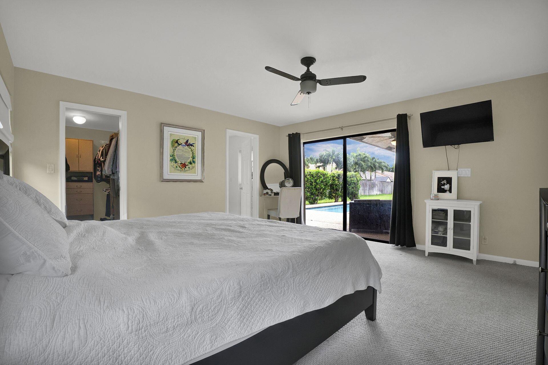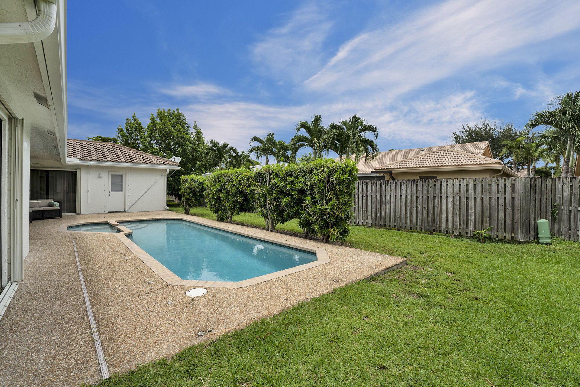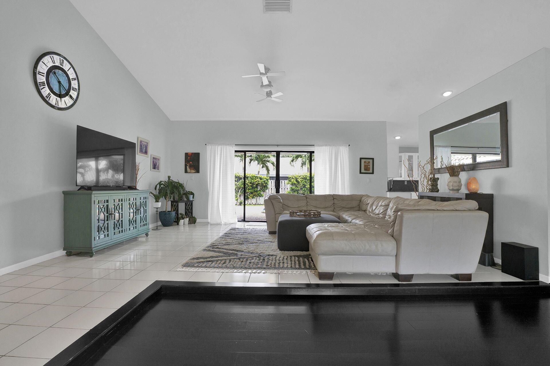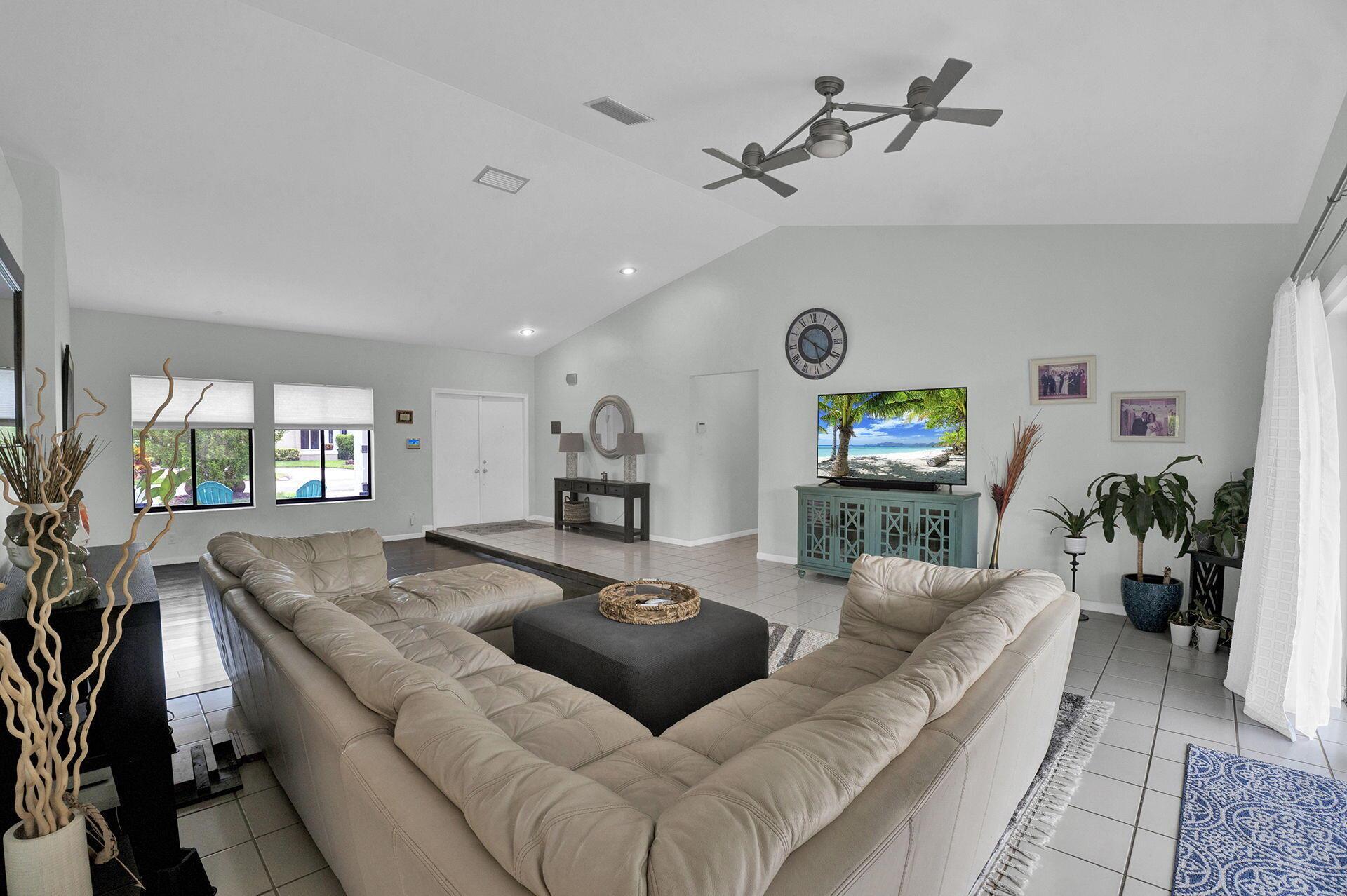 This contemporary-style home boasts four bedrooms and two updated cabana full bathrooms, Vaulted ceilings, open floor plan with hardwood floors.Bright natural light throughout the day. The modern, updated kitchen features plenty of counter space for the house chef and for family and friends to gather around. A desired circular driveway plus two car garage provides ample parking for you and your guests. Private backyard with pool, Brand new lawn sprinkler system 2023 ,Exterior of the home painted 2023, Burglar Alarm 2022,Air conditioner 2022 ,Roof 2014,Hurricane Protection shutters & Astroguard Hurricane Fabric, Baby gate included. Walking distance to A rated elementary school.Located in a great neighborhood, with shopping, restaurants, and major highways close by.