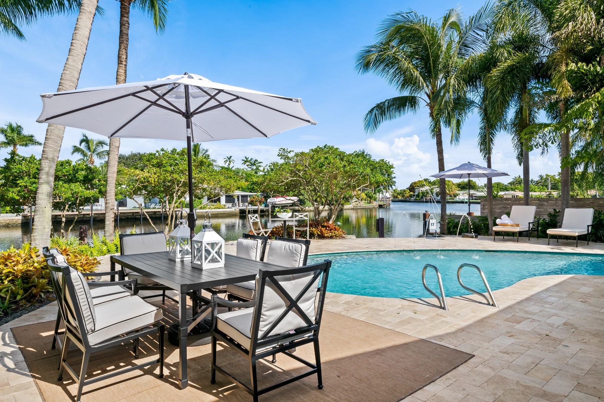 Within the charming/private Coral Shores neighborhood resides a beautifully renovated 3/3 + den, pool home w/67’ of canal frontage. Turnkey complete transformation joins modern elements w/iconic styling. 3 ensuite bdrms provide privacy; Primary suite enjoys water views overlooking heated pool/patio and long canal views. New entertainer's kitchen (!!) hosts a casual dining area & separate laundry rm. Spacious living area flows to formal dining & onto grand patio & waterfront terrace. The FAB water views glisten & sparkle! French doors open to office/den. Exterior patios/pathways resplendent w/lighting & tropical foliage evoke a European feel. Furniture avail for purchase. NEW: kitchen, baths, metal roof, impact windows/doors, flooring, paint, custom closets, plumbing, lighting, landscaping.
