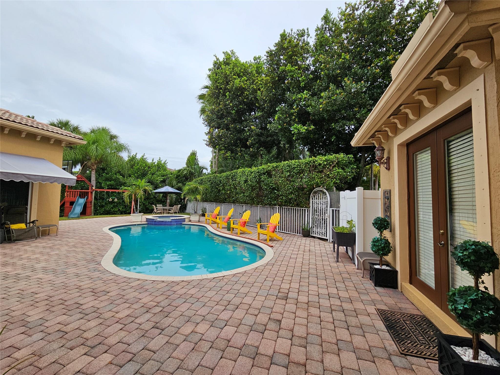 Rare opportunity to own a courtyard-style home in prestigious Heron Bay community! Situated on oversized lot with private backyard and large pool perfect for entertaining. Crown molding throughout, newer A/C units and water heater. Updated kitchen fully equipped with top-of-the-line stainless steel appliances and granite countertops. Separate 1/1 guest house, master bedroom and additional bedroom located on 1st floor. Community offers many resort style amenities. Zoned for top-rated Parkland schools. HOA fee includes landscaping and cable TV.