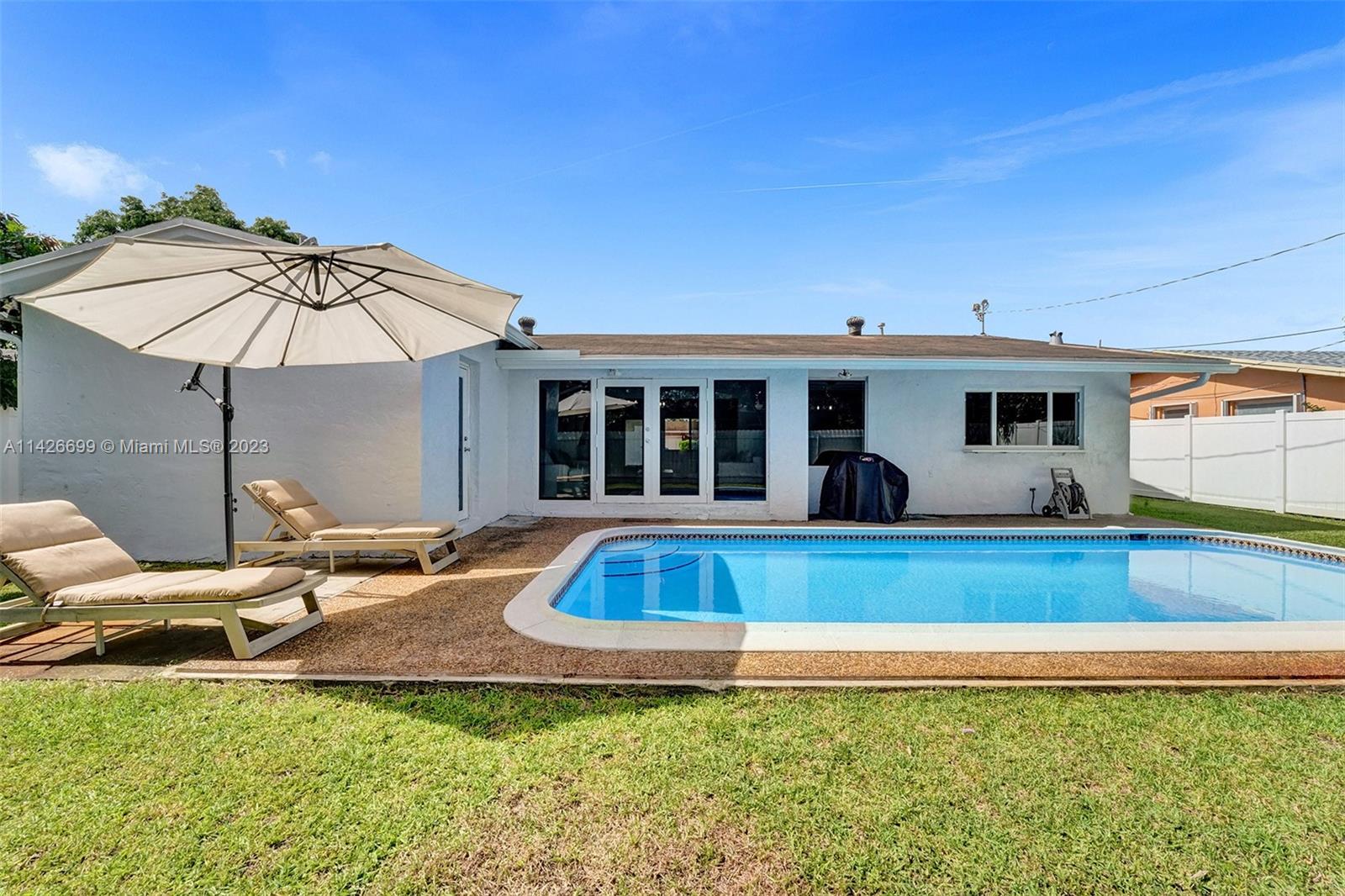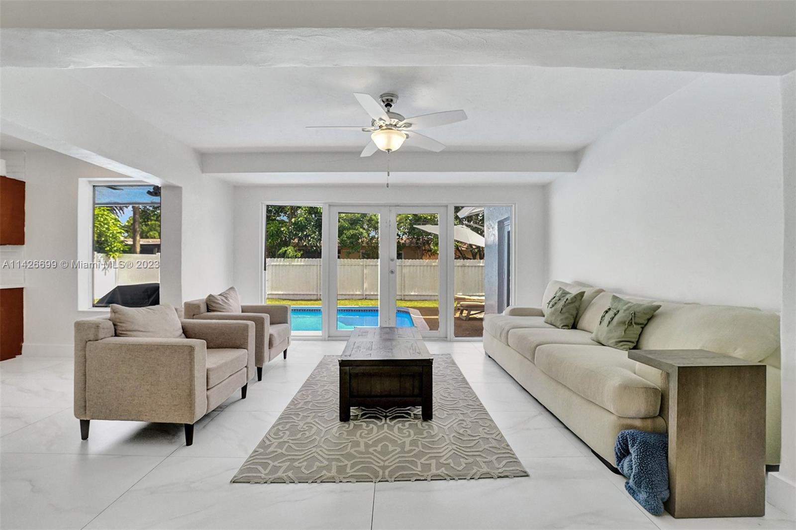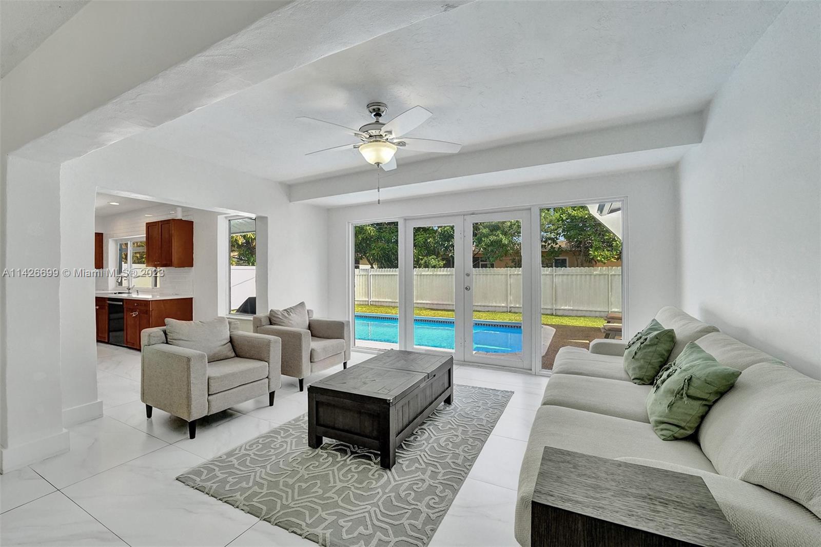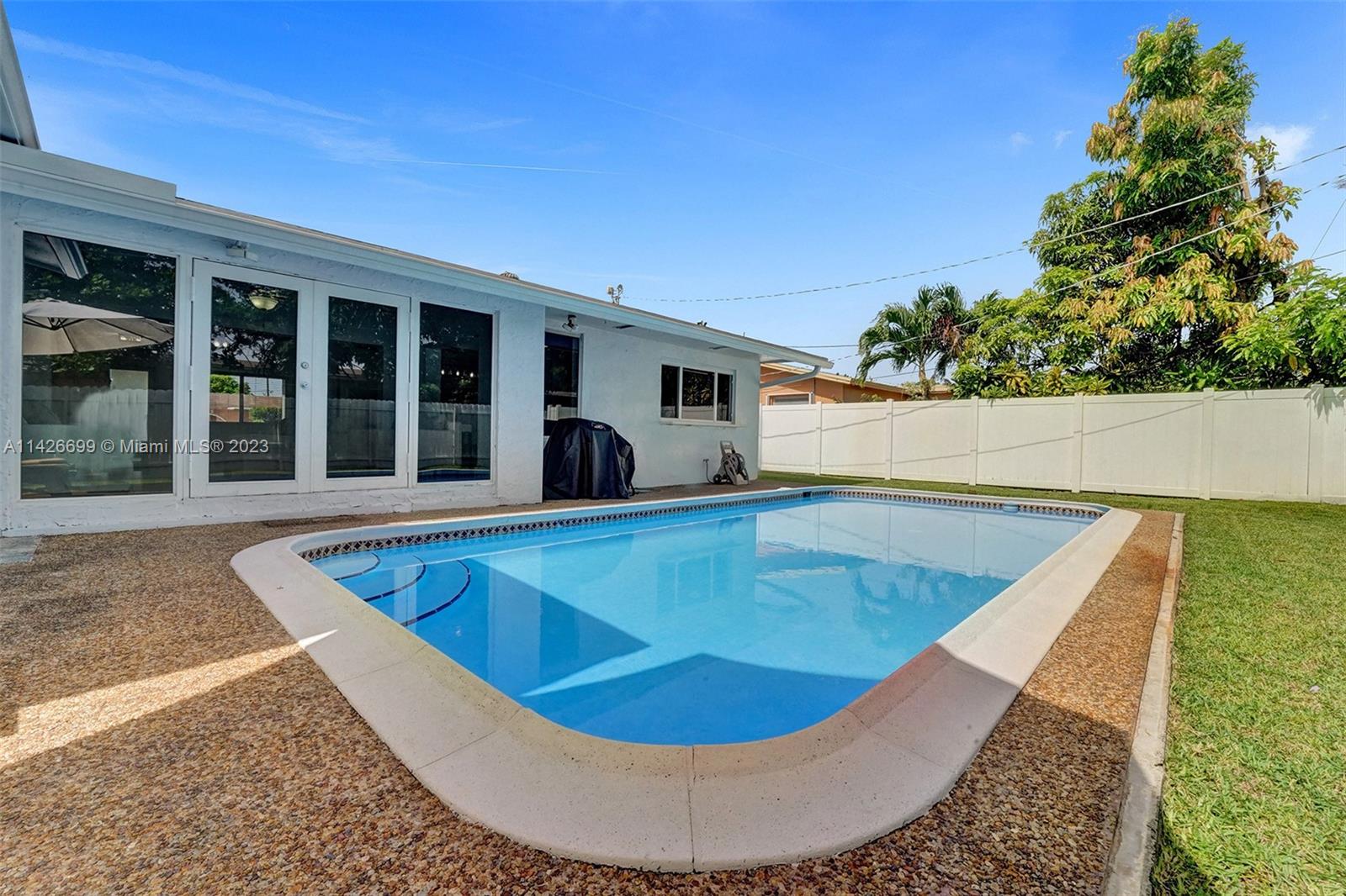 BEAUTIFUL UPDATED 3 BEDROOM 2 BATHROOM SINGLE-FAMILY HOME WITH LARGE POOL IN THE HEART OF THE CITY OF MIRAMAR! THIS CONTEMPORARY HOME FEATURES: A LARGE DRIVEWAY THAT CAN ACCOMMODATE SIX CARS, TWO CAR GARAGE, FRESHLY PAINTED EXTERIOR & INTERIOR WITH OUTSTADING CURB APPEAL. PROPERTY FEATURES: ALL IMPACT WINDOWS & DOORS, NEWER A/C UNIT, NEWER WATER HEATER, GUTTERS ALL AROUND, A HUGE KITCHEN WITH GRANITE COUNTER TOPS, STAINLESS STEAL APPLIANCES (WASHER & DRYER DO NOT CONVEY). ALL THREE BEDROOMS ARE SPACIOUS, THE PRIMARY BATHROOM FEATURES BEAUTIFUL TRAVERTINE MARBLE TILES, FRAMELESS SHOWER DOOR AND DUAL SINKS. VERY LARGE POOL IN THE BACK. SECURITY CAMARA SYSTEM INCLUDED! ACTUAL LIVING SQF IS 1,940...HURRY! THIS ONE WON'T LAST.