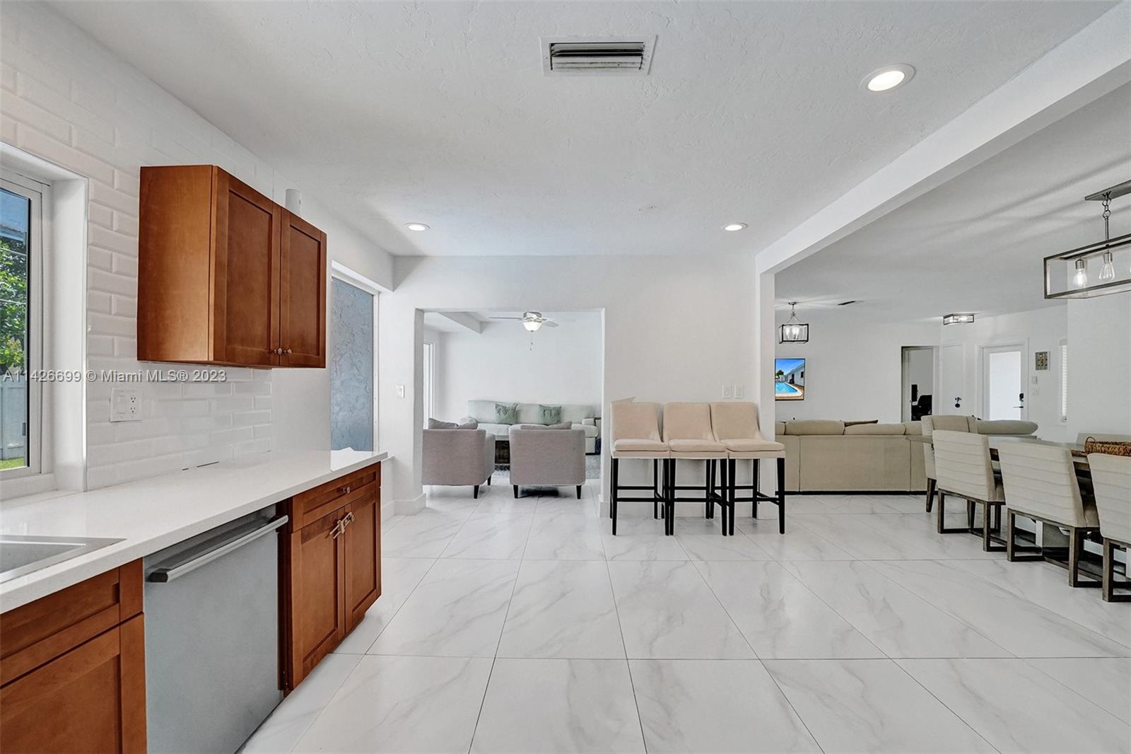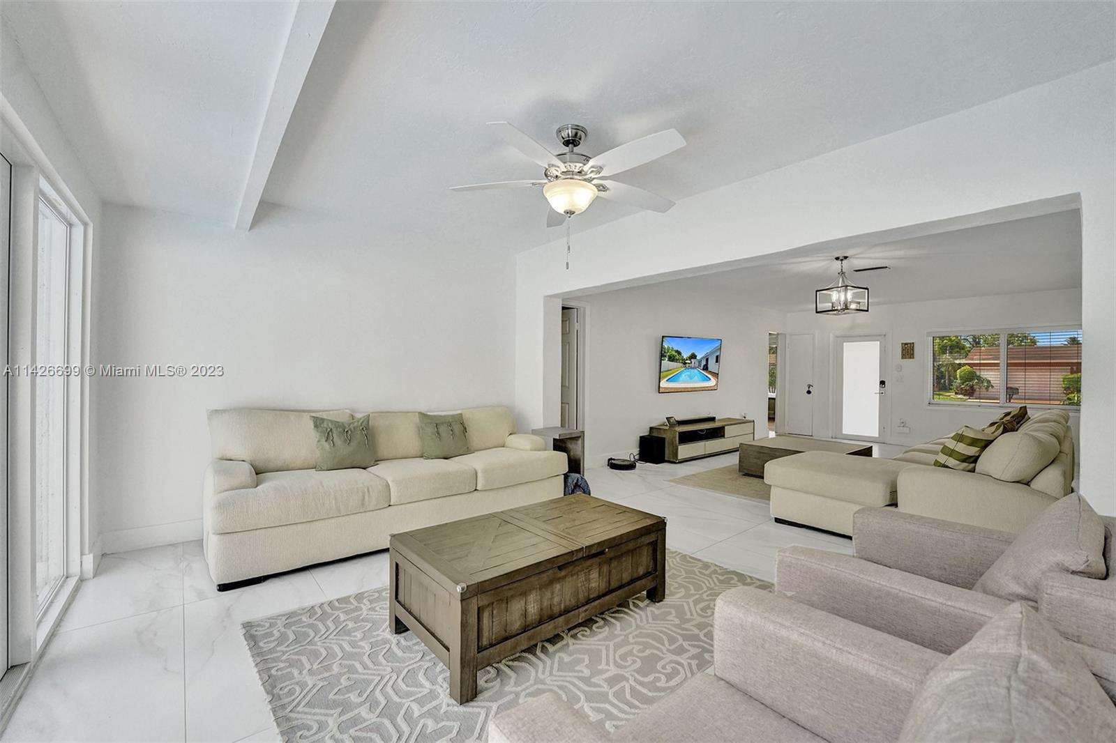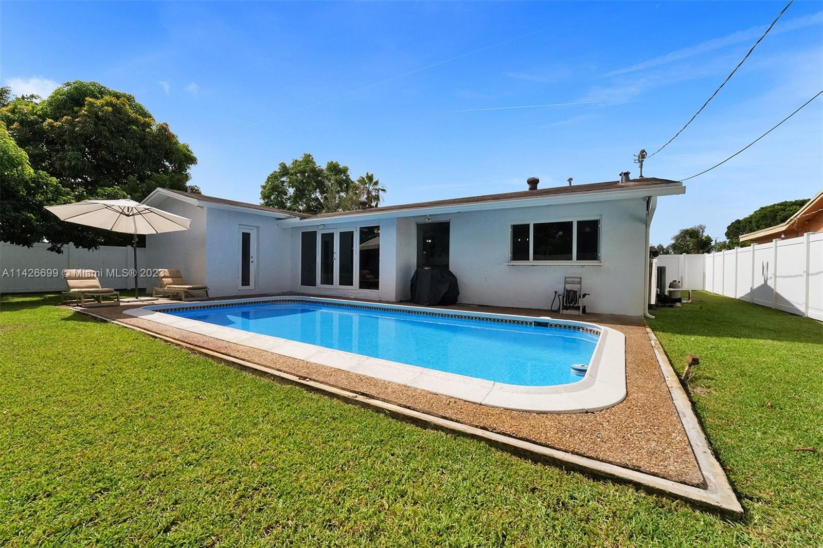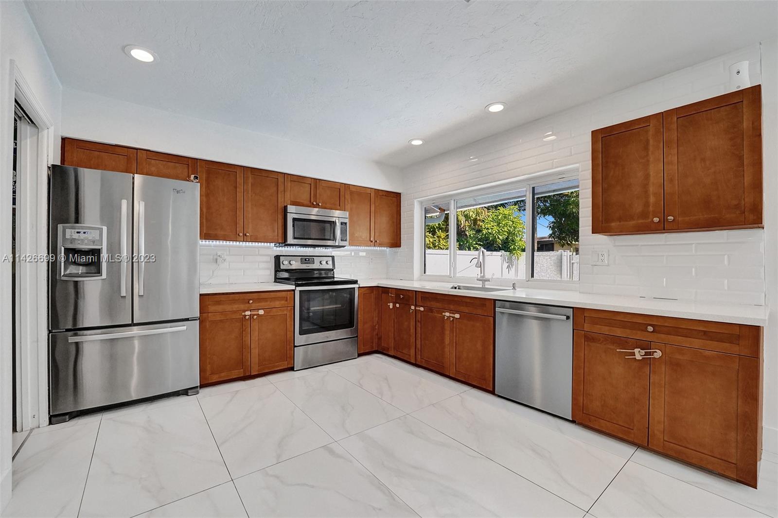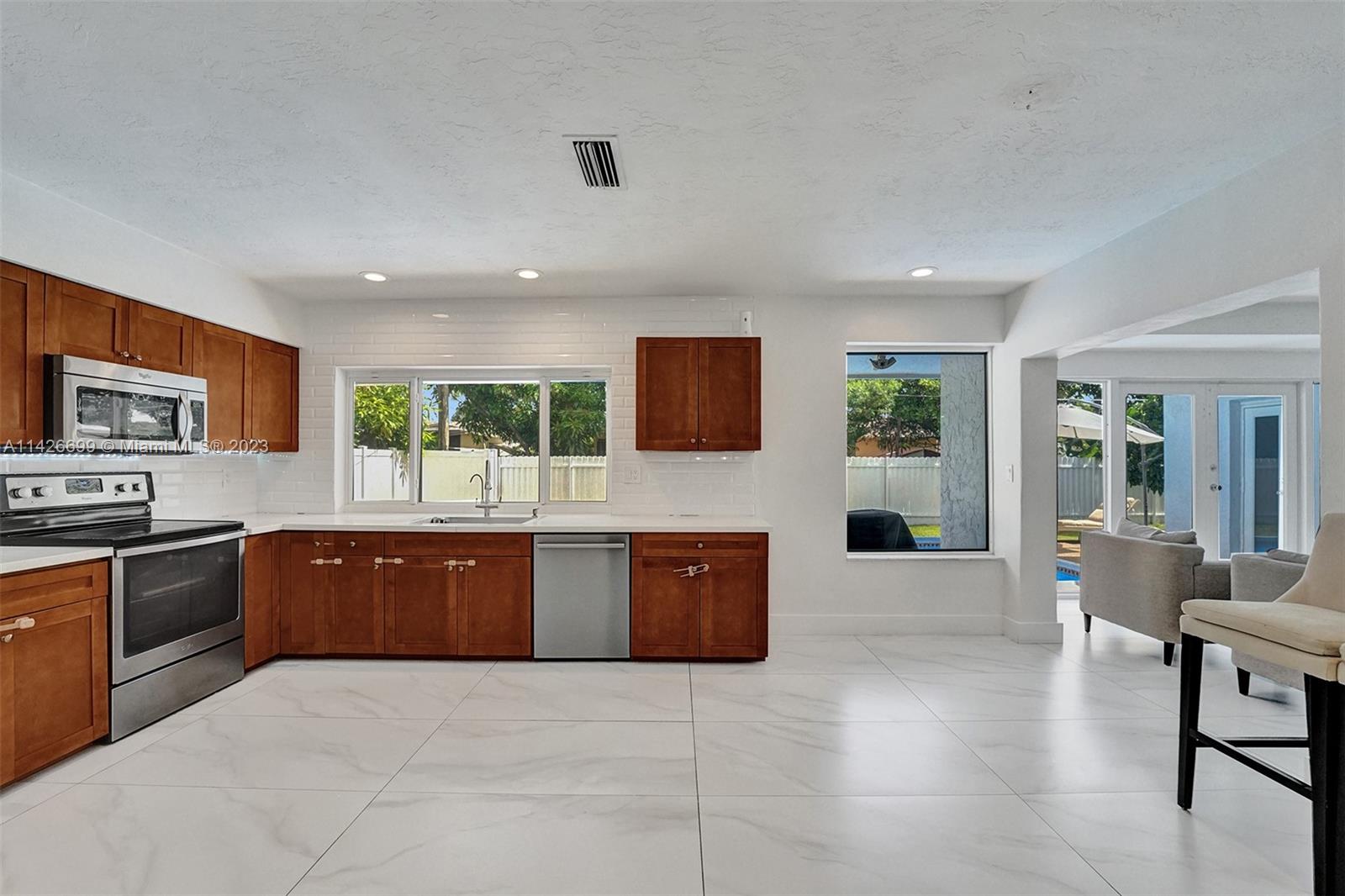 BEAUTIFUL UPDATED 3 BEDROOM 2 BATHROOM SINGLE-FAMILY HOME WITH LARGE POOL IN THE HEART OF THE CITY OF MIRAMAR! THIS CONTEMPORARY HOME FEATURES: A LARGE DRIVEWAY THAT CAN ACCOMMODATE SIX CARS, TWO CAR GARAGE, FRESHLY PAINTED EXTERIOR & INTERIOR WITH OUTSTADING CURB APPEAL. PROPERTY FEATURES: ALL IMPACT WINDOWS & DOORS, NEWER A/C UNIT, NEWER WATER HEATER, GUTTERS ALL AROUND, A HUGE KITCHEN WITH GRANITE COUNTER TOPS, STAINLESS STEAL APPLIANCES (WASHER & DRYER DO NOT CONVEY). ALL THREE BEDROOMS ARE SPACIOUS, THE PRIMARY BATHROOM FEATURES BEAUTIFUL TRAVERTINE MARBLE TILES, FRAMELESS SHOWER DOOR AND DUAL SINKS. VERY LARGE POOL IN THE BACK. SECURITY CAMARA SYSTEM INCLUDED! ACTUAL LIVING SQF IS 1,940...HURRY! THIS ONE WON'T LAST.