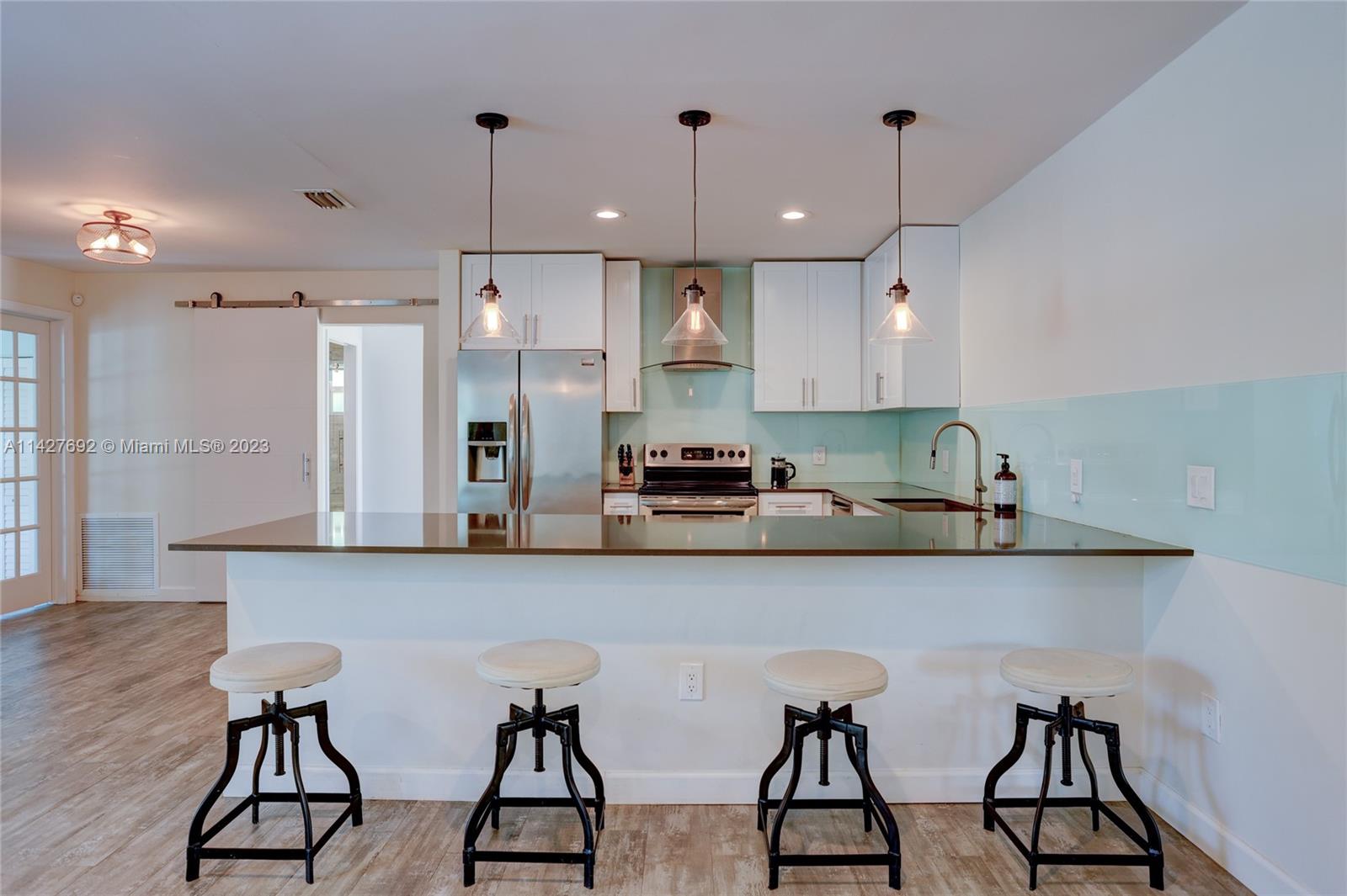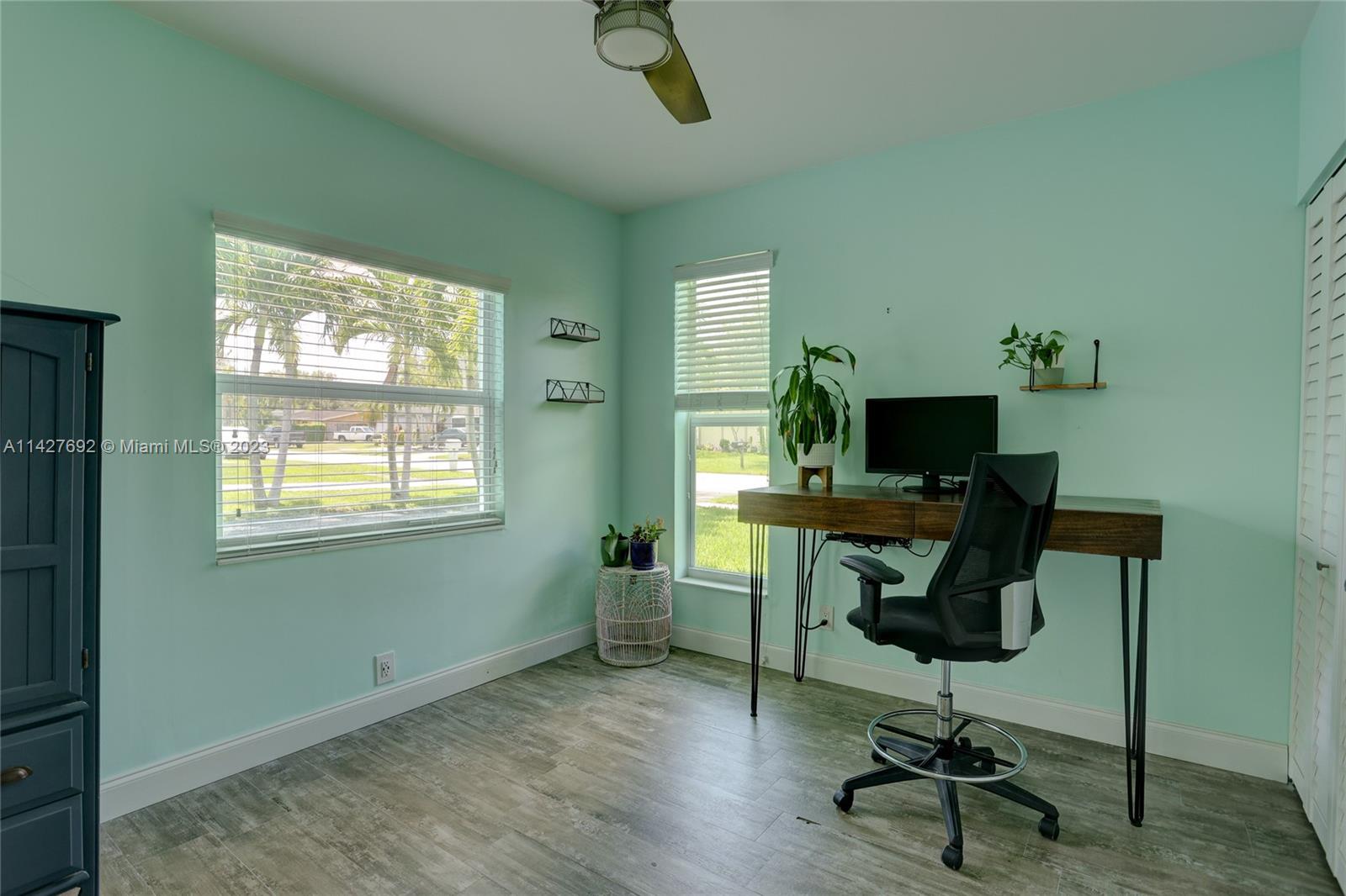 Beautifully remodeled 4/2 with a pool and office in the heart of Sunrise. Completely remodeled with stainless steel appliances, quartz countertops, “wood look” porcelain tile floors continuous throughout the house. Convenient indoor laundry. COMPLETE NEW ROOF BEING INSTALLED NOW ITH PERMITS New impact hurricane windows installed in 2021. Open concept design allows plenty of natural lights throughout the house. Primary bedroom has en-suite and beautiful doors to the outdoor patio. The Tiki bar outside is perfect for entertaining poolside. Minutes to Sawgrass Mills and FLA Live Stadium! No HOA, close to restaurants and major highways. Do not miss this opportunity! SELLER AGREES IN COOPERATING WITH $5,000 SELLER CREDIT FOR CLOSING COSTS OR ANY OTHER COST BUYER HAS.