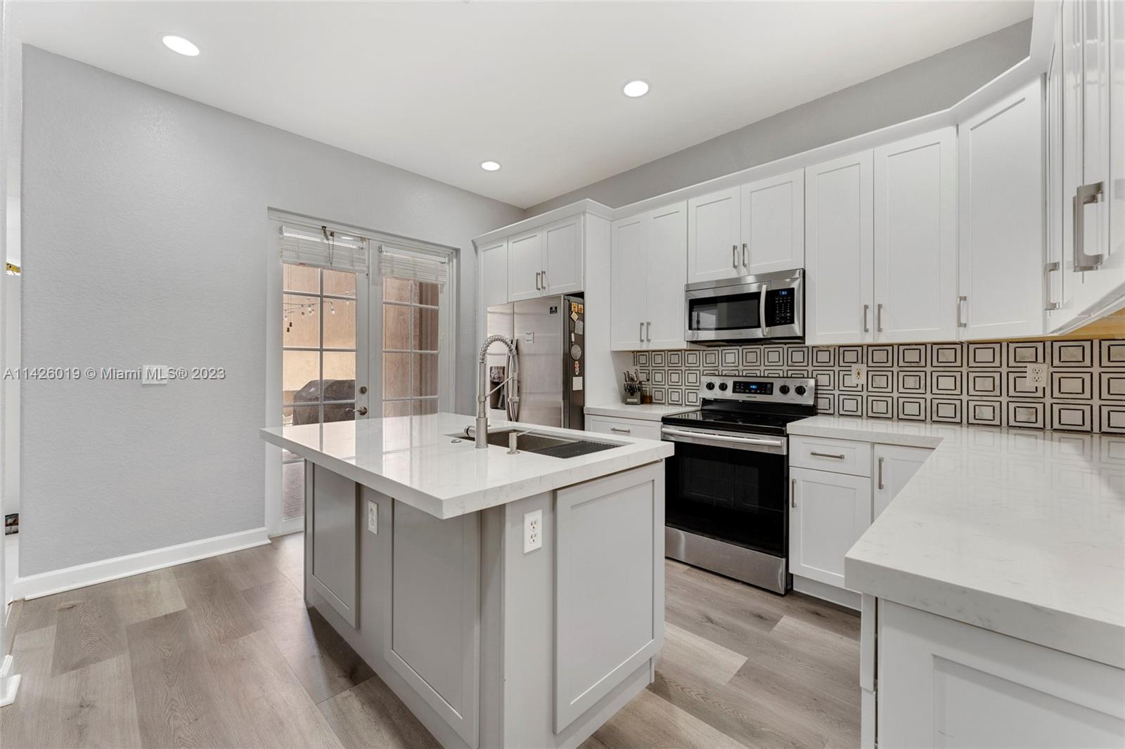 Stunningly renovated townhome in the prestigious Cobblestone community, boasting 3 bedrooms, 3 baths, and a 2-car garage. Enjoy the added convenience of having one bedroom and bathroom on the ground floor. The kitchen is a true gem, adorned with elegant quartz countertops and top-of-the-line stainless steel appliances. Retreat to the spacious Master Bedroom, featuring dual walk-in closets and a private balcony. The master bathroom is generously sized and luxurious. Additionally, there is a versatile loft area that can be utilized as an office. Community amenities include a clubhouse, gym, pool, and two playgrounds. Prepare to be captivated by the beauty of this home!