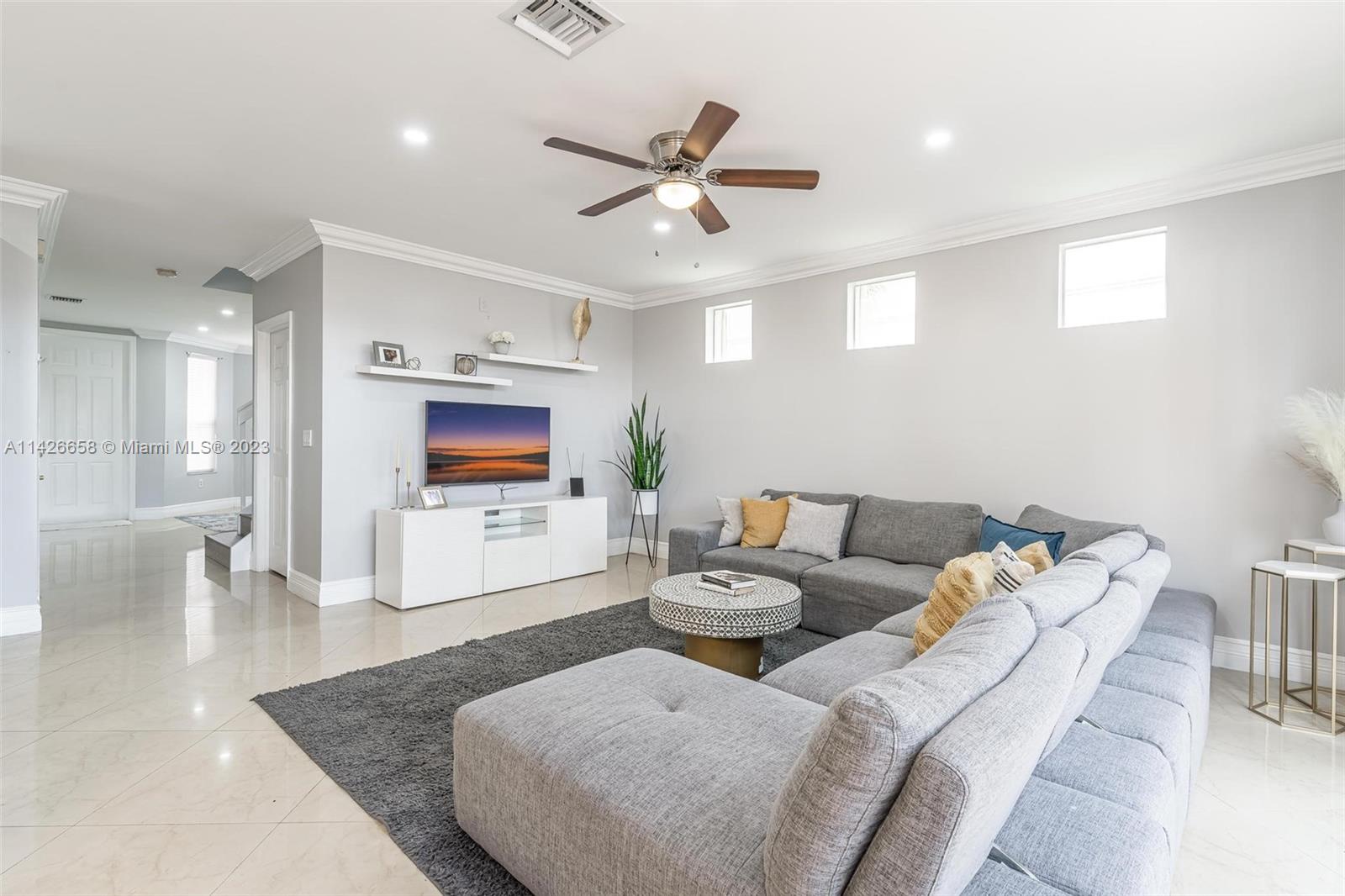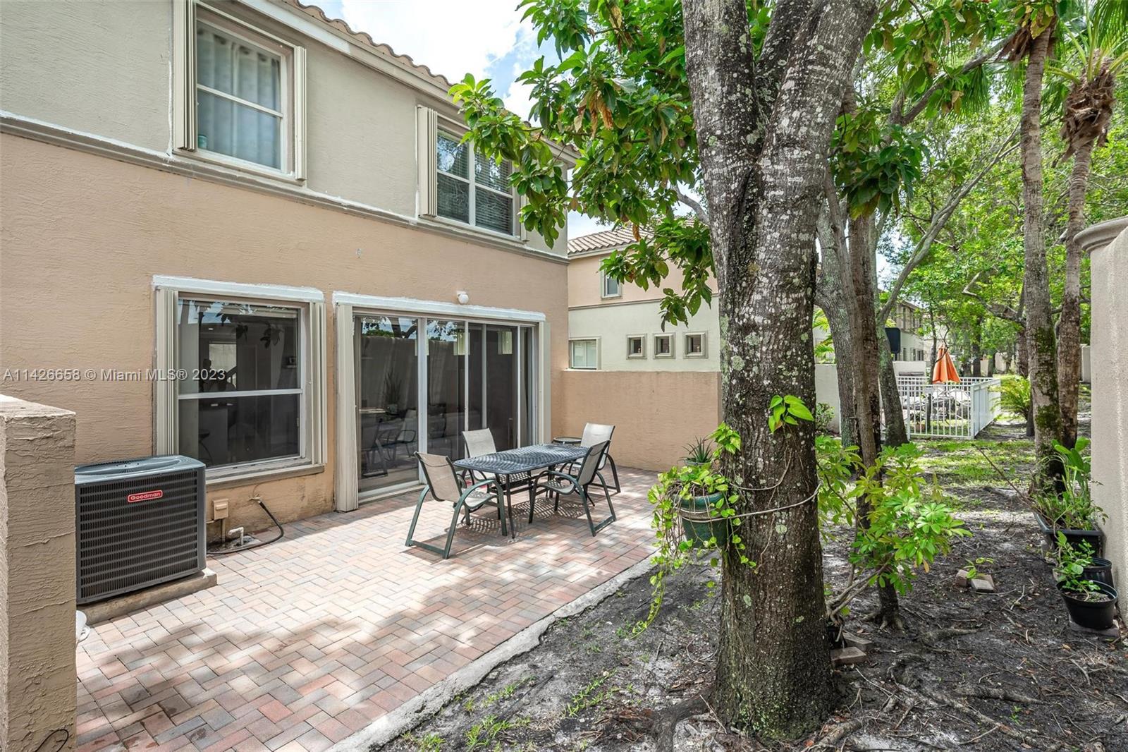 Come see this highly sought after end unit located in the charming Regalo community, 3/2.5 townhome, 1 car garage with tile flooring and LED lighting throughout the 1st floor and brand new laminate flooring upstairs. Newer AC & water heater, full-sized laundry room, spacious den/hallway and plenty of closet space. In addition, the lot offers a spacious brick patio perfect to relax and enjoy the outdoors and the convenience of accordion shutters. Walking distance to pool and playground. Minutes from I-75, Turnpike, shopping and restaurants.