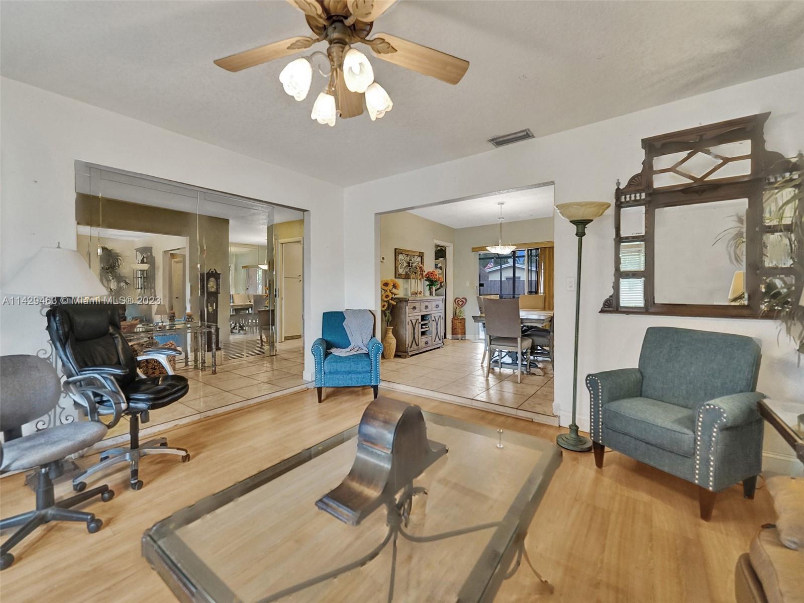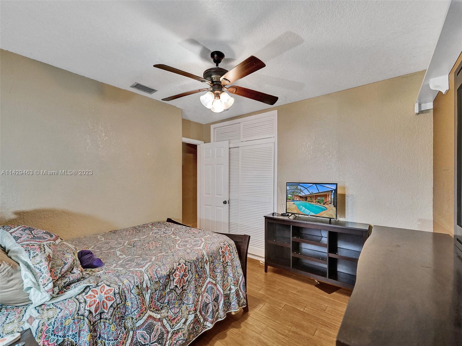 Large Single Family House located in the Pasadena Lakes community of Pembroke Pines on a corner lot. 2,021 SqFt Under Air. This is a true 4-bedroom 2-bathroom with a big 2.5 Car Garage (621SqFt). 3 Bedrooms are stacked on one side of the house and the 4th is located on the opposite side. Perfect for an in-law or office. Beautiful screened-in pool area with a stamped concrete deck. Great area for birthday parties and family gatherings. A large circular driveway that can fit multiple cars. The side of the house can fit a large boat or trailer. Great Neighborhood. No HOA. Roof 2010 A/C 2012.