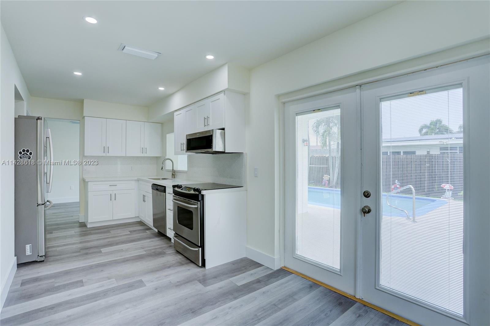 Completely and newly renovated pool home in the sought after community of Sunrise Golf Village. This beautiful home features an open and split floor plan with 3 ample bedrooms, 2 remodeled bathrooms, an inviting modern kitchen with white cabinetry, quartz countertops and stainless steel appliances, neutral vinyl flooring throughout, partial impact windows, freshly painted, the features just go on. Outside, enjoy the pristine pool and large yard fully enclosed with a privacy fence. Excellent location near Sawgrass Mills, shopping, dining and major highways. NO HOA! Easy to show!