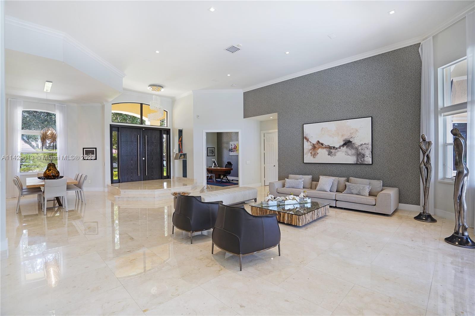 Welcome to this completely renovated modern lakeside home in the exceptional IMAGINATION FARM community, nearly an acre, spacious open concept family living, dining room, abundant light, crema marfil marble floors 48x24.15ft vaulted ceilings, kitchen that is with modern two-color cabinets and multi-level countertops with modern porcelain backsplash, full complement of top-of-the-line JEAN-AIR appliances,3 car garages the master suite is oversized, walk in his/her closets .Private patio with summer kitchen. 4 bedrooms plus an office with 4 modern full bathrooms with porcelain tile finishes. The pool redesigned with a Beach, salt generator & heater. Oversized whirlpool jacuzzi and modern blue tiles. Sonos sound system for inside social area and patio. Security cameras through the property.