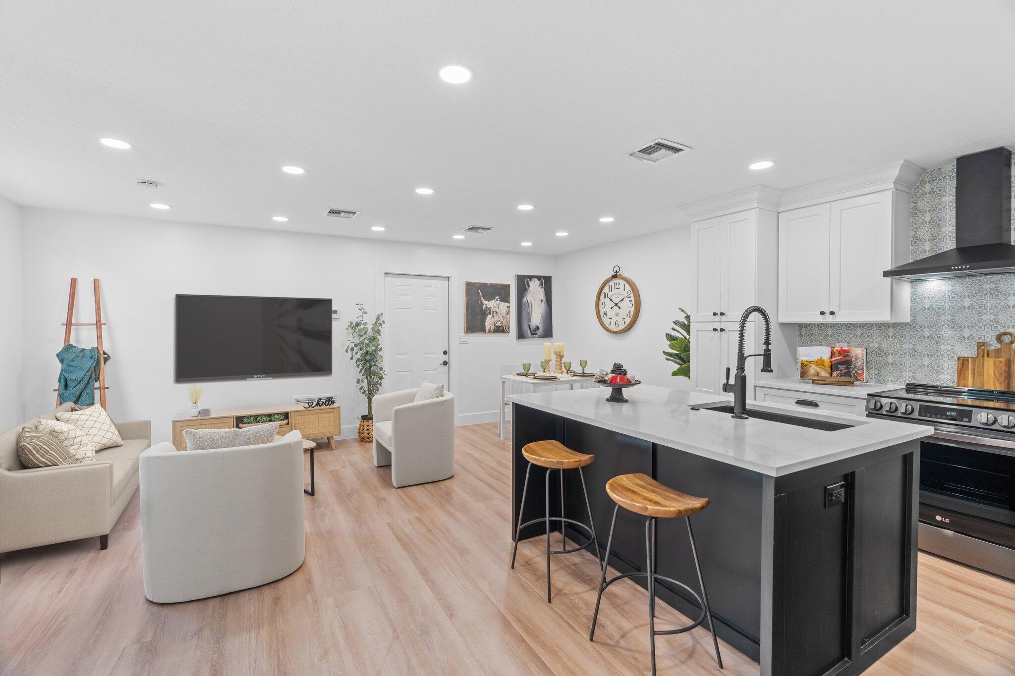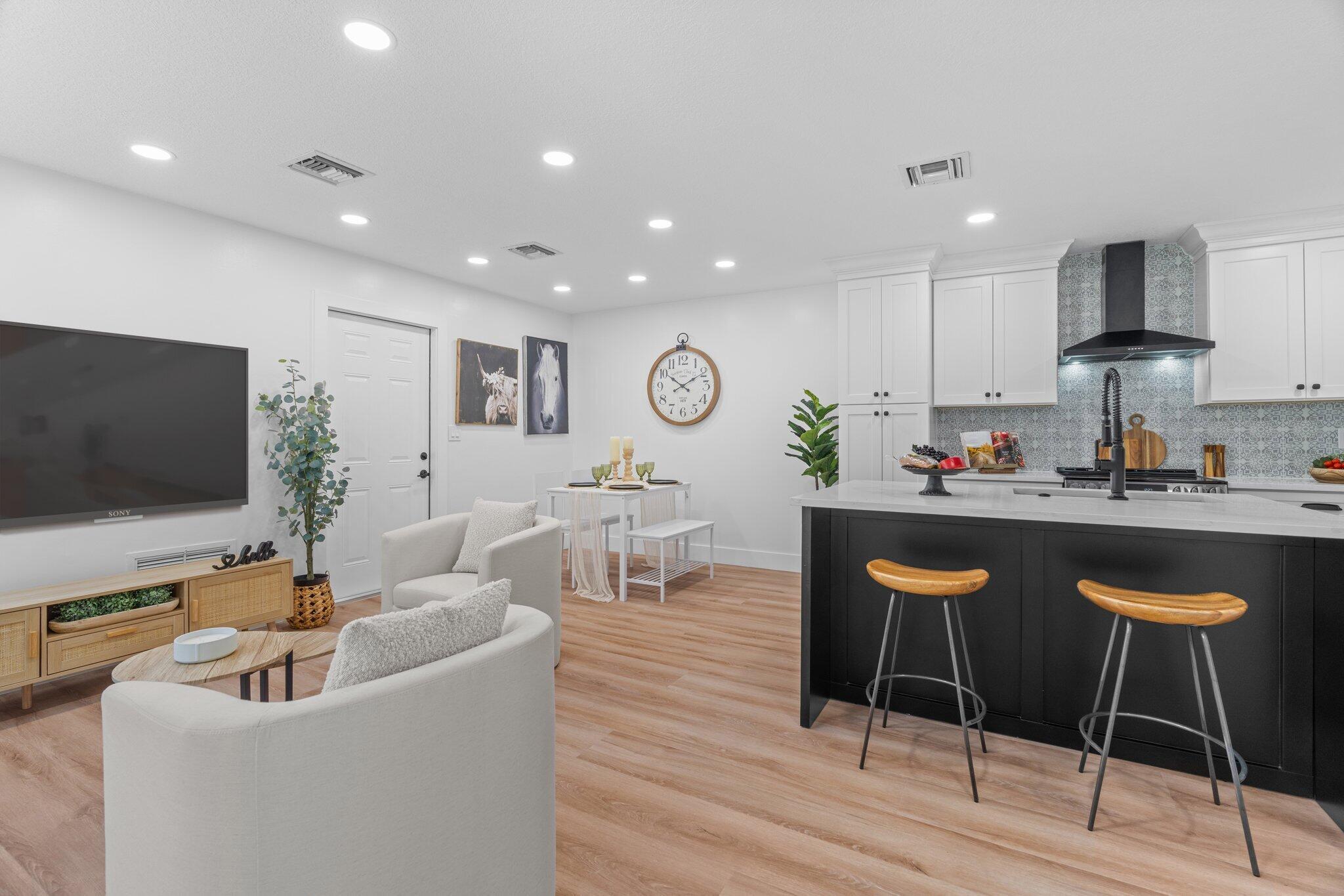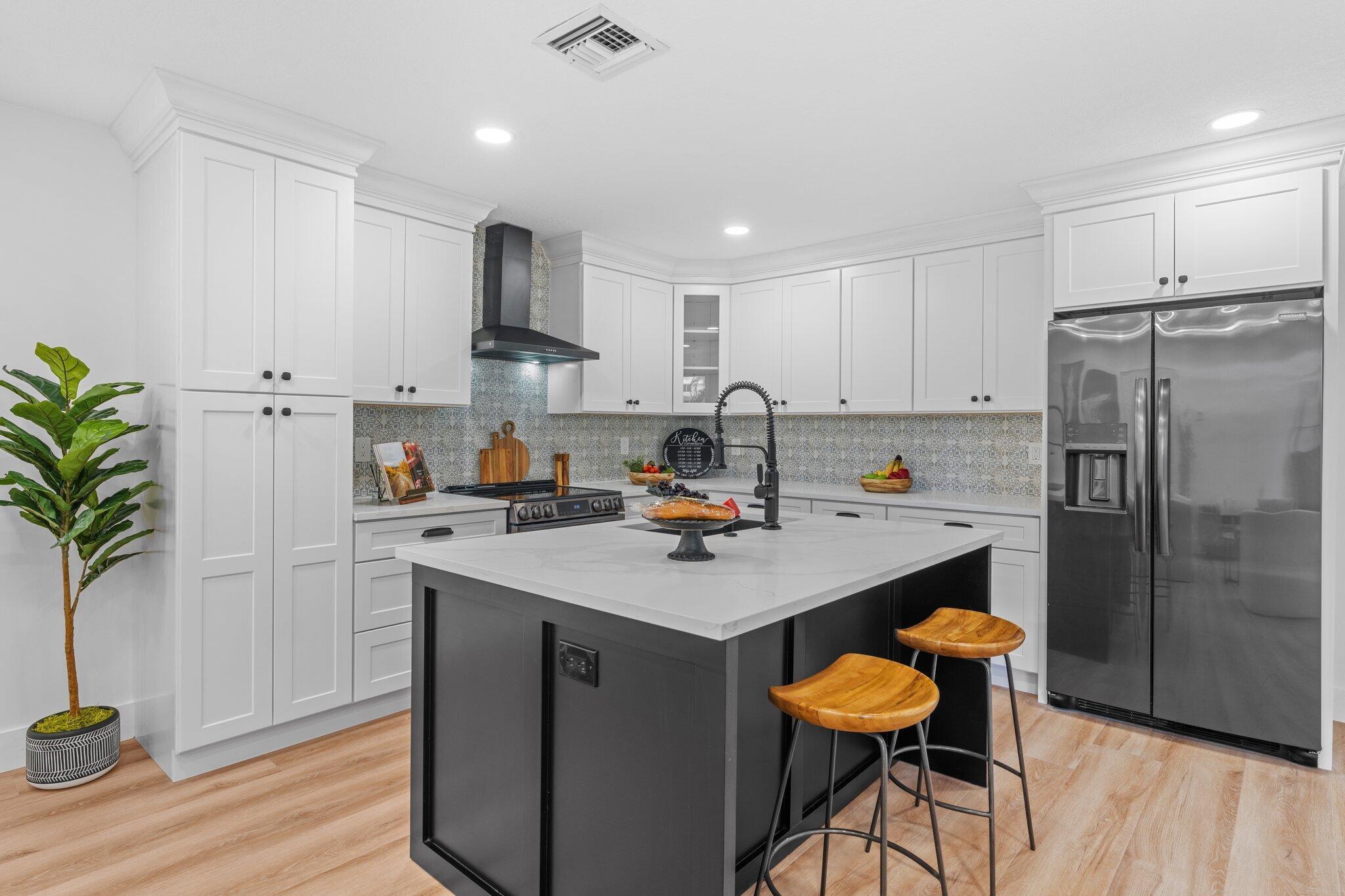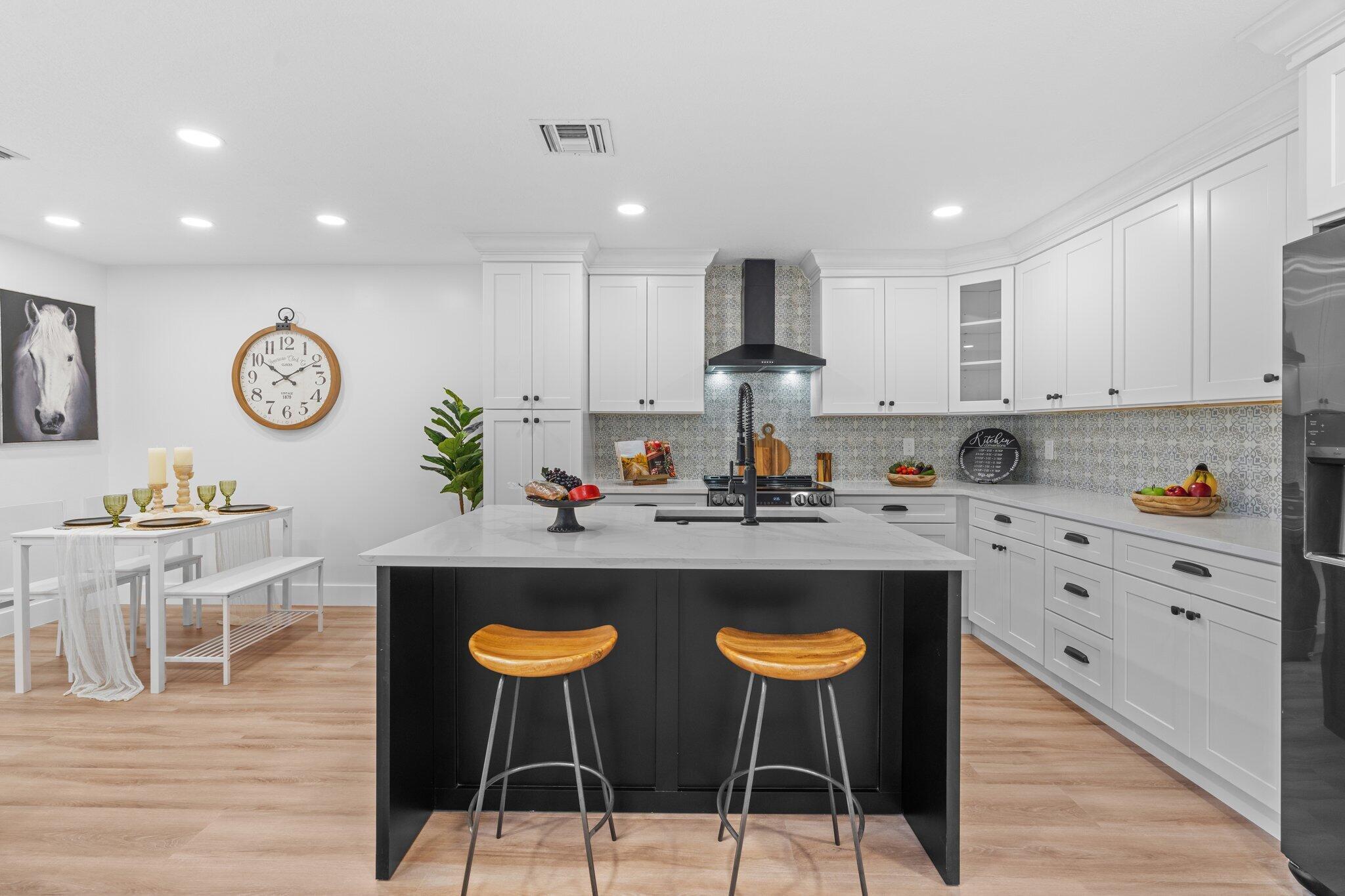 This single family 3BR, 2BA has been FULLY UPDATED, VERY LOW HOA! This is practically a BRAND-NEW home. This designer home has been updated with brand new COMPLETE HURRICANE IMPACT WINDOWS and DOORS, new cement Hardie board siding, waterproof laminate flooring, custom white shaker kitchen cabinets, Carrara quartz countertops and brand-new appliances. The luxurious bathrooms are fully updated with high end vanities, porcelain tile, and custom glass shower doors. The master bedroom has a HUGE walk-in closet, large stand-up shower and nice view of the cozy fenced in backyard. The AC, water heater, hurricane proof garage door were all installed in 2023. House also has a brand-new sprinkler system and electrical panel. Come see this warm, elegant home for yourself!