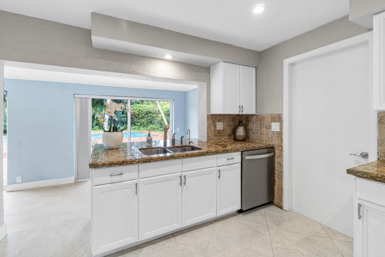 Gorgeous 3 bdrm/2bath/2cg pool home, located in sought after Plantation Gardens. Situated on a large, fenced in corner lot, with a stunning oversized pool surrounded by brick pavers, makes this the perfect home for fun family get togethers. The inside has been beautifully updated from top to bottom! All IMPACT WINDOWS and DOORS (with the exception of the back sliders),stunning 24x24 porcelain tile flooring throughout! NEW ROOF (2021), NEW AC (2018), NEW MINI split AC in back bedroom (2022), NEW POOL fence (2023), SALTWATER pool conversion (2020), both bathrooms renovated in (2018), NEW interior and exterior paint (2021), upgraded lighting and window treatments (2020). Kitchen has wood cabinets, granite countertops and stainless appliances. Garage has an EV charging station! NO HOA!!