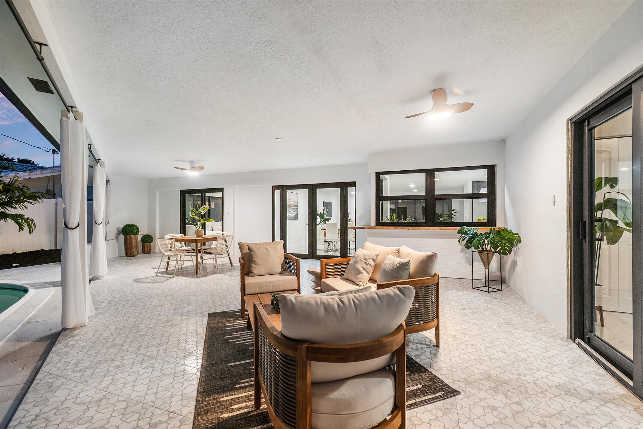 WELCOME HOME to the perfect blend of luxury & comfort! This impressively renovated 4-bedroom, 3-bath Pool Home in the highly sought-after neighborhood of Boca Square boasts a range of fantastic upgrades. Step inside to discover a thoughtfully designed interior that effortlessly combines functionality and elegance. The main living areas feature an open-concept layout, creating a seamless flow between the living room, dining area, and kitchen. Natural light pours in through large impact windows and doors, enhancing the spaciousness and creating a warm atmosphere. The kitchen has been tastefully updated with modern appliances, quartz countertops, and ample cabinet space. A large central island provides both additional workspace and a casual dining area, perfect for quick meals or